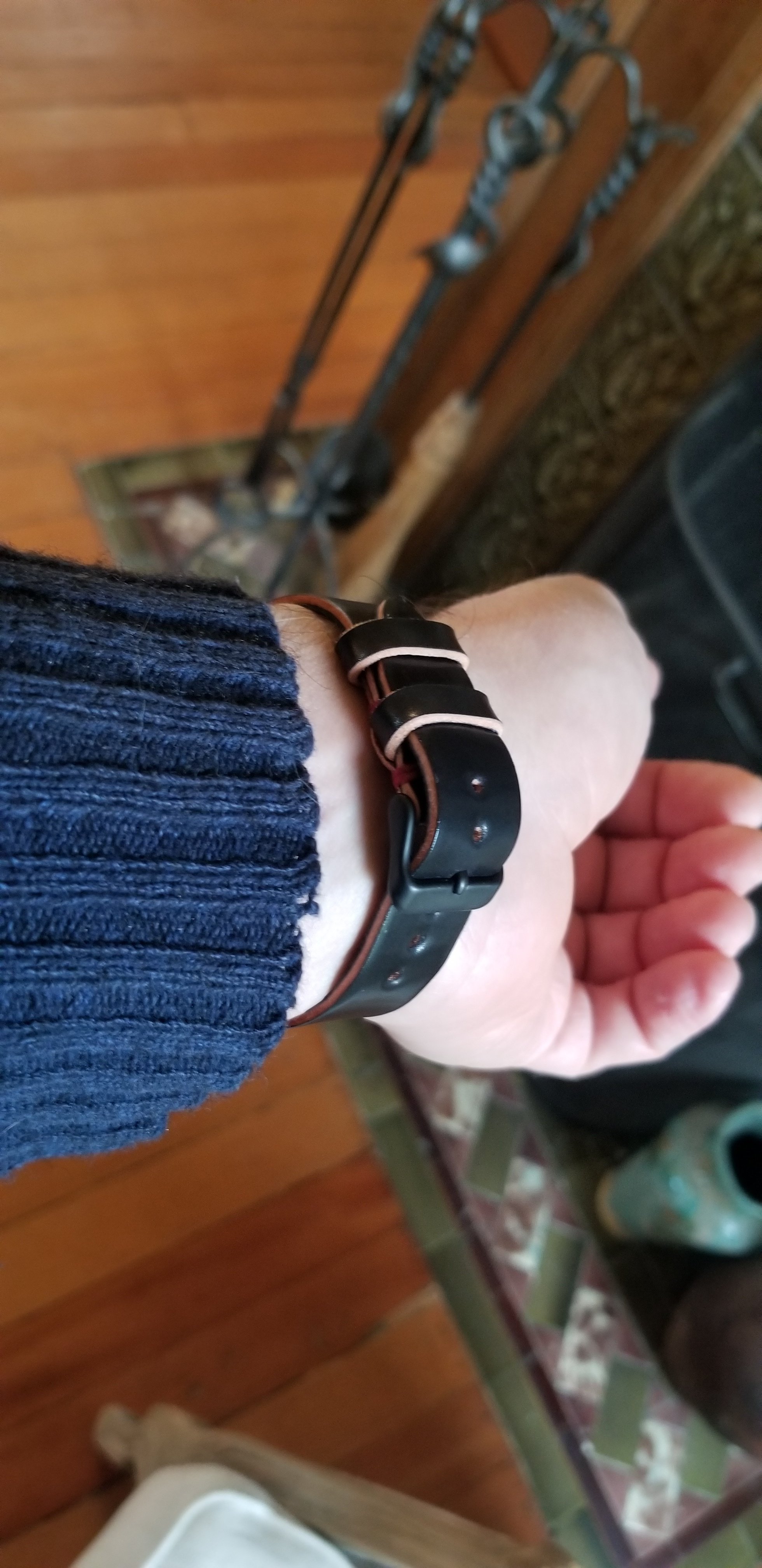 How I choose straps is another matter. It's easy to just go with quality of leather--personally, I'm a fan of Horween, Crazy Horse, and Thoroughbred. I'm slowly but surely learning a bit more about stitching and burnishing, which makes a huge difference.