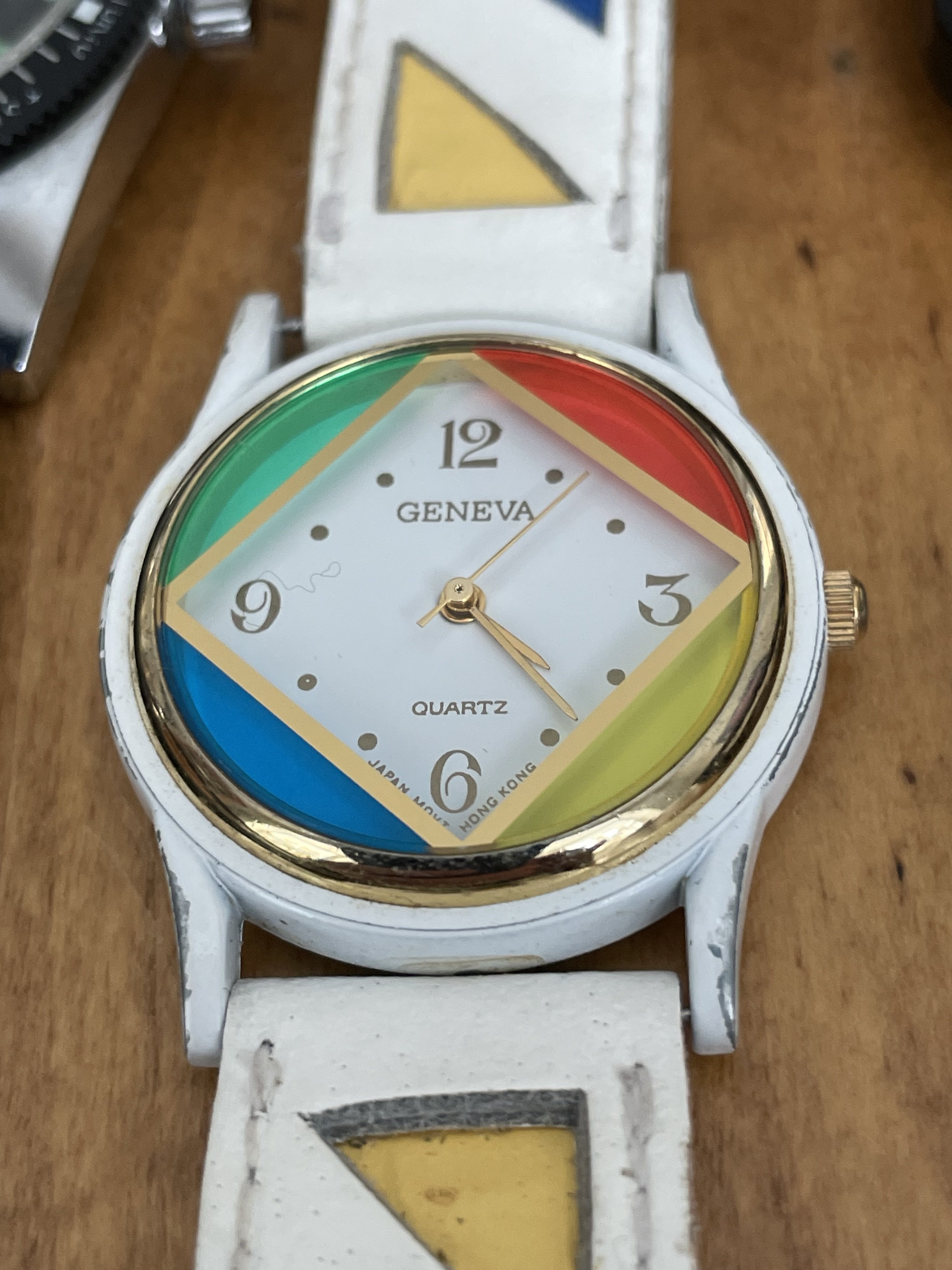 And finally, the one with the multicolour strap because if it works, my wife will like it.