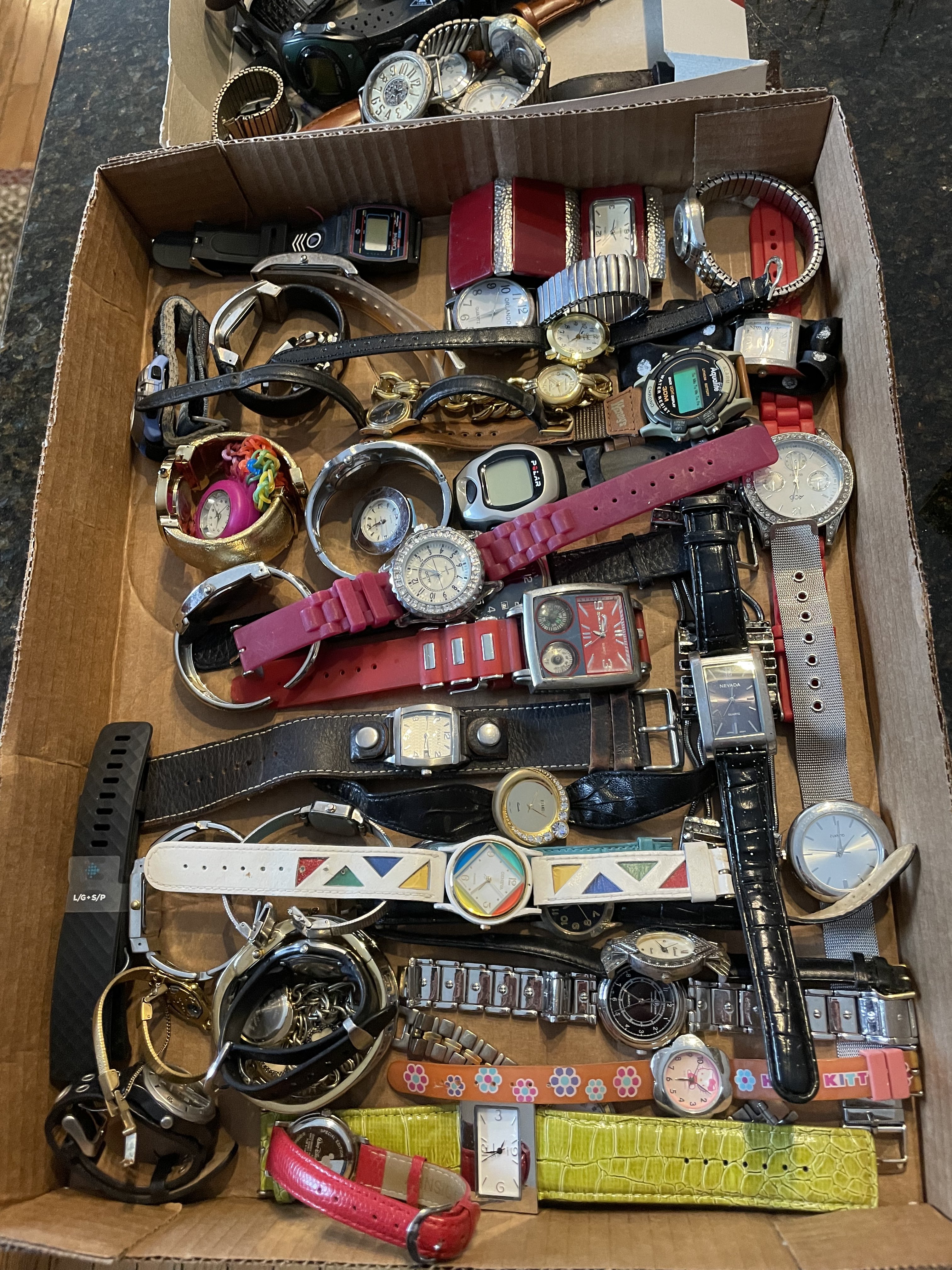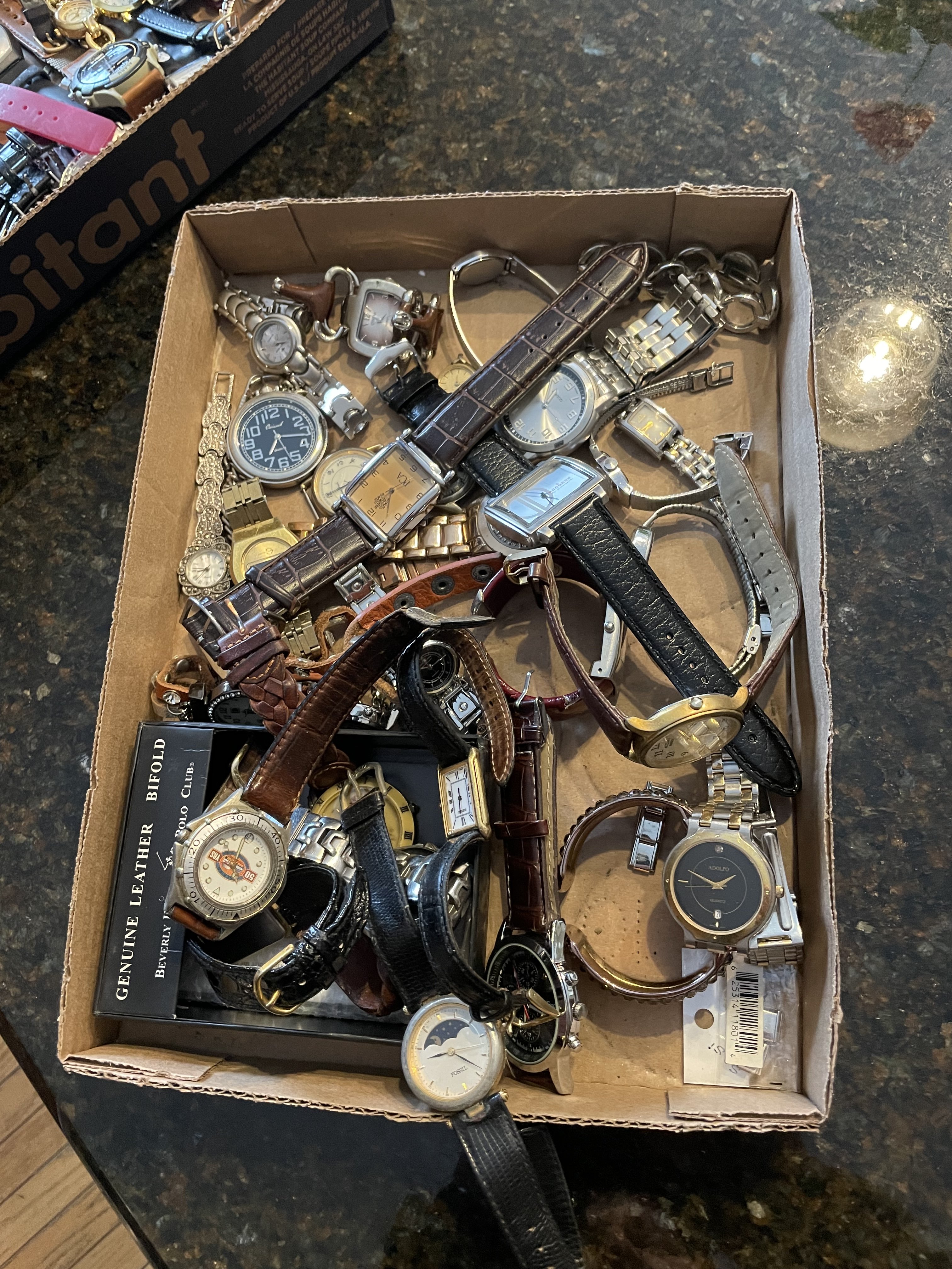 I went through the lot. It took me about 90 minutes. I made him some auction piles of decent Timex Expeditions, mechanicals, Guccis and Mickey Mouse.