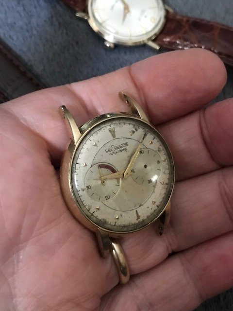 Now for some stuff I ran across and did manage to buy. First is this package deal of 4 charming cheapies I got from a small watch shop. The TV dialed Seamaster and Hamilton are in surprisingly pristine condition as the proprietor said they were from the same family and not worn much. The deville shows some age to the dial but overall is presentable, and the Lecoultre needs a cleaning and a second hand but the watch repair shop guy was true to his word as the movement is clean as a whistle with nothing apparently broken. He serviced all but the Lecoutre as he just got it a few days ago and hadn't had the chance to get to it. I bought everything as the price was right and if I cherry-pick that rubs most guys the wrong way and leaves some left for my competition (like Walrus). 😁