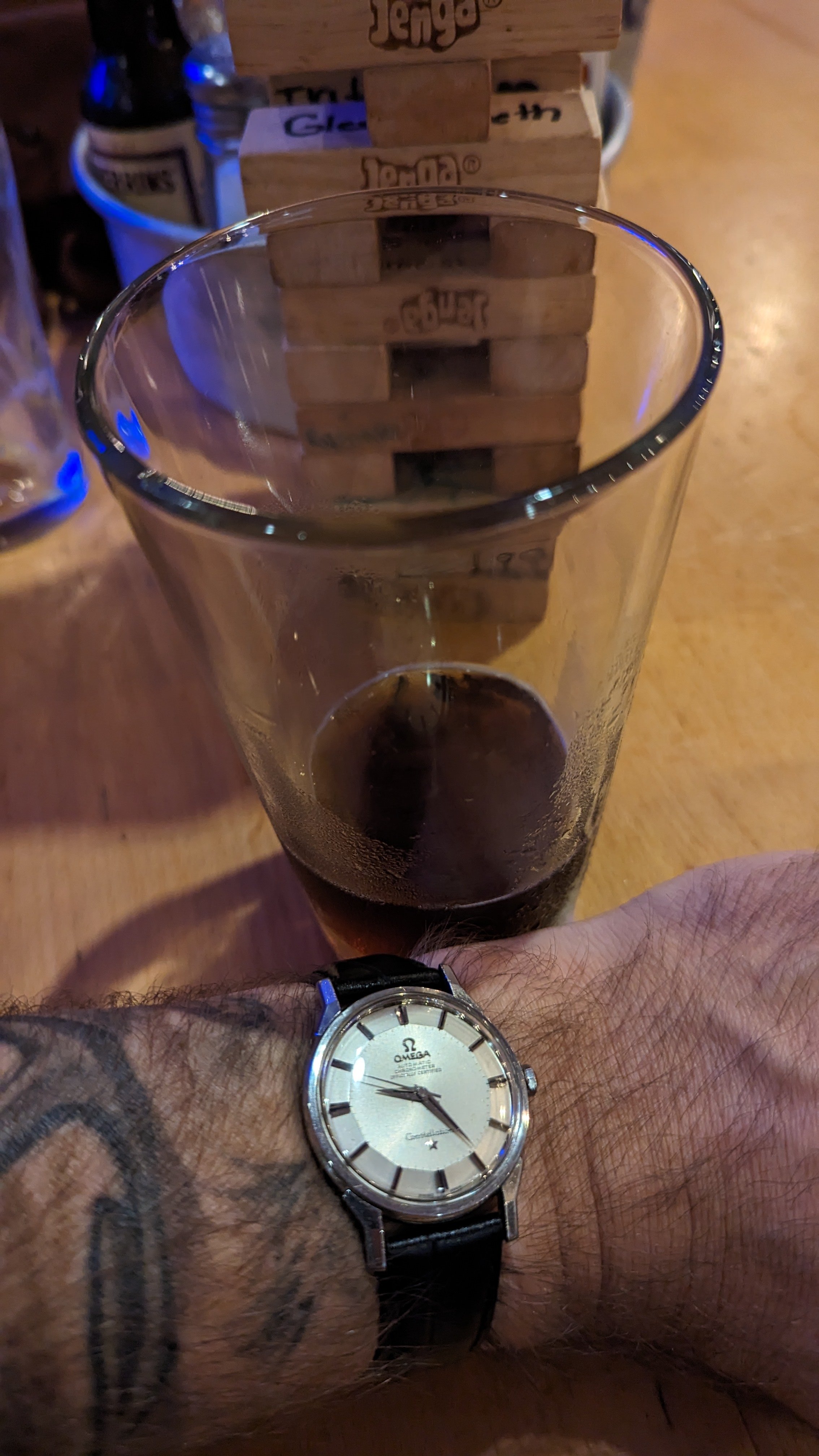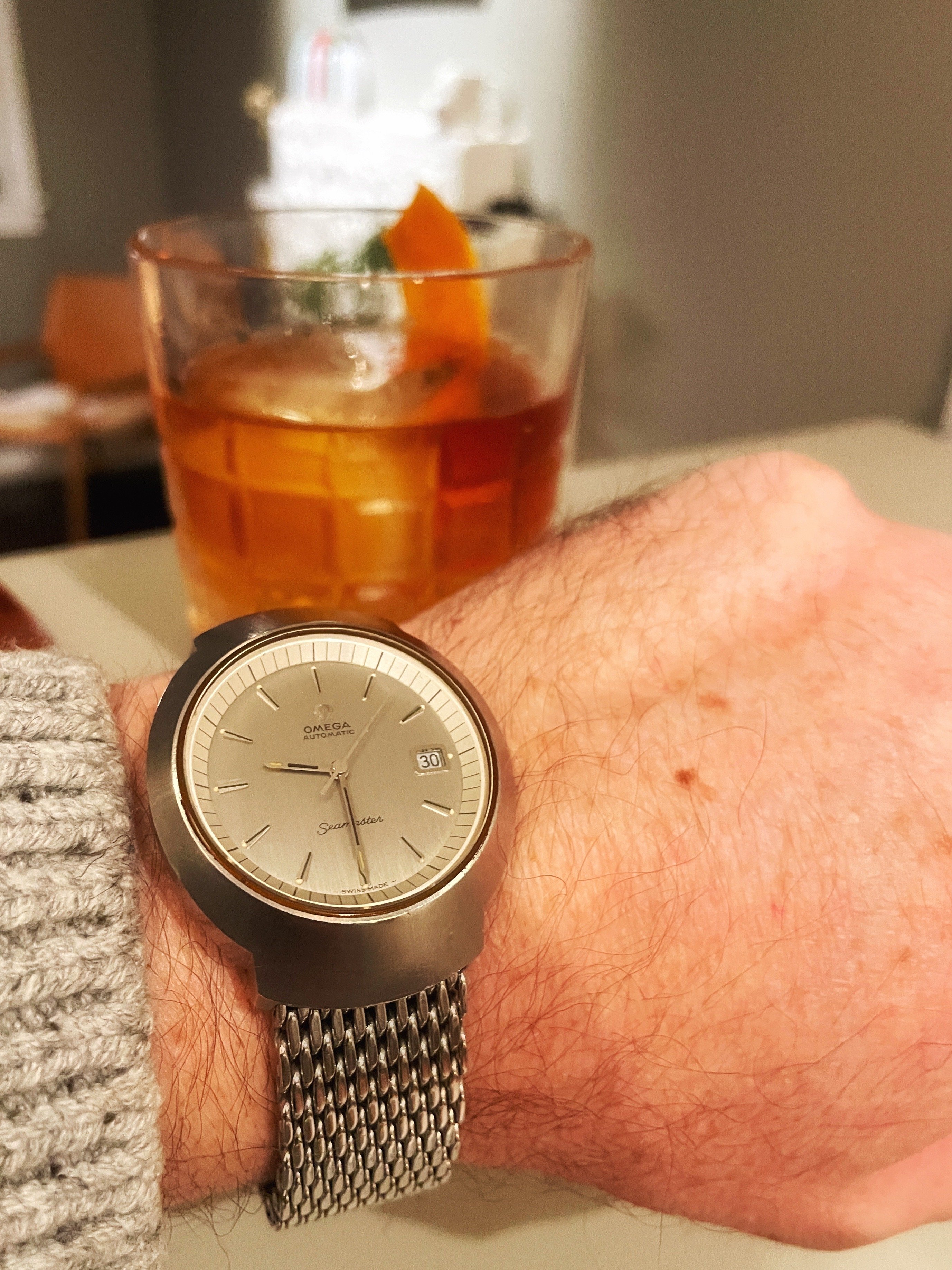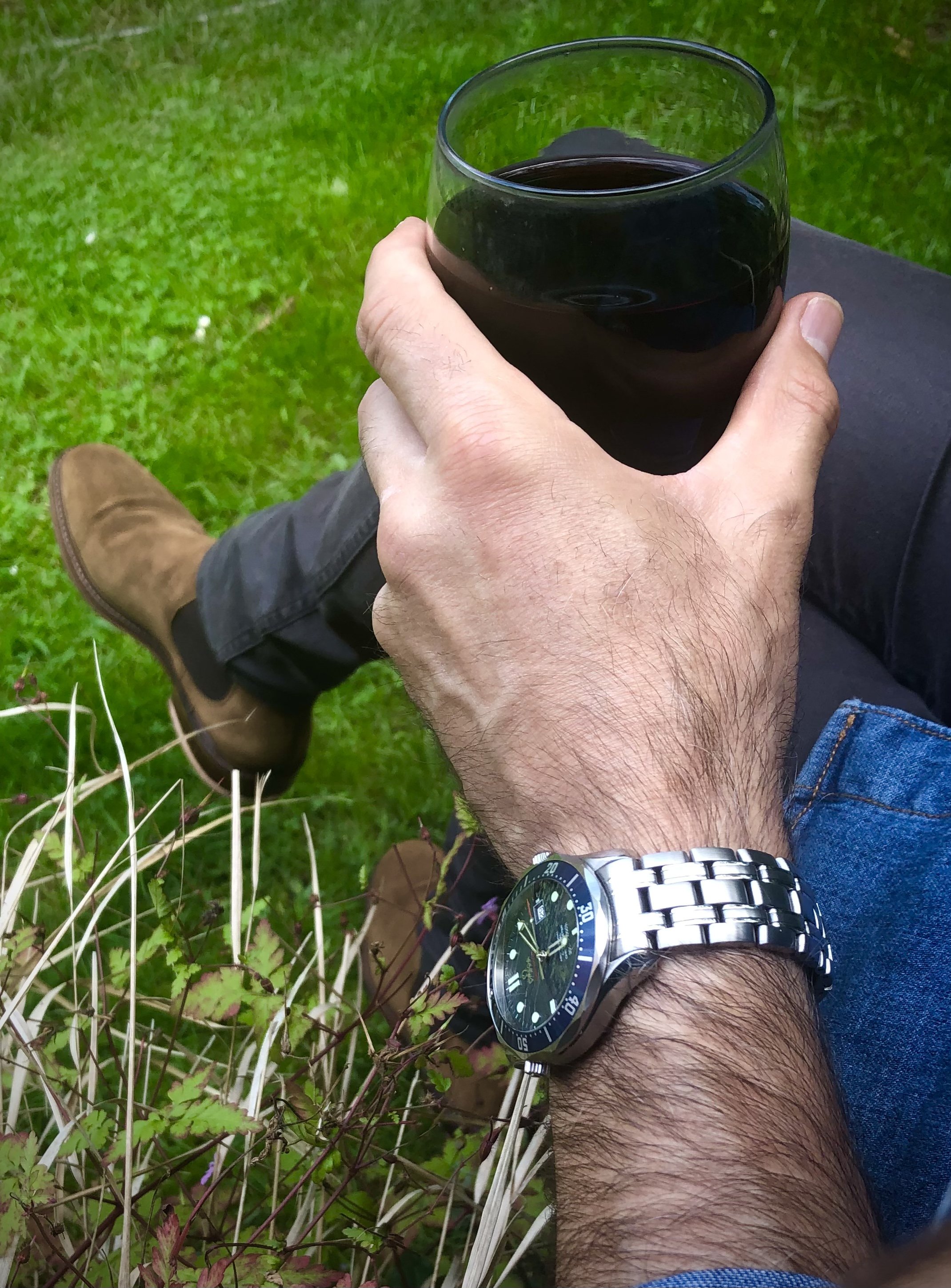 Although it’s not my favorite, I’ve been enjoying Negronis recently. My wife snapped this photo on our recent trip to Berlin. Me, my Seamaster 300 heritage, and a nice Negroni. She was enjoying a Kir Royale.