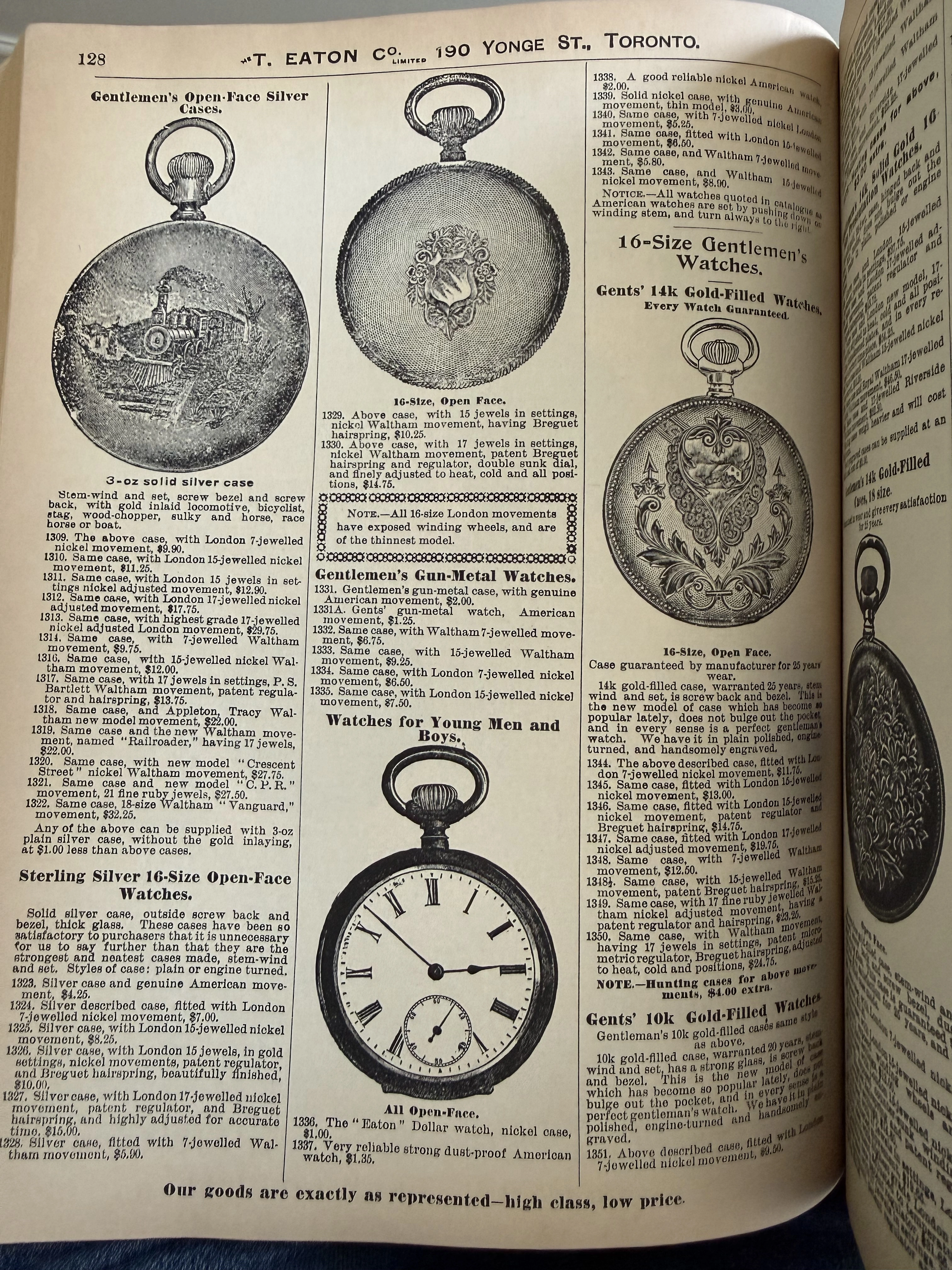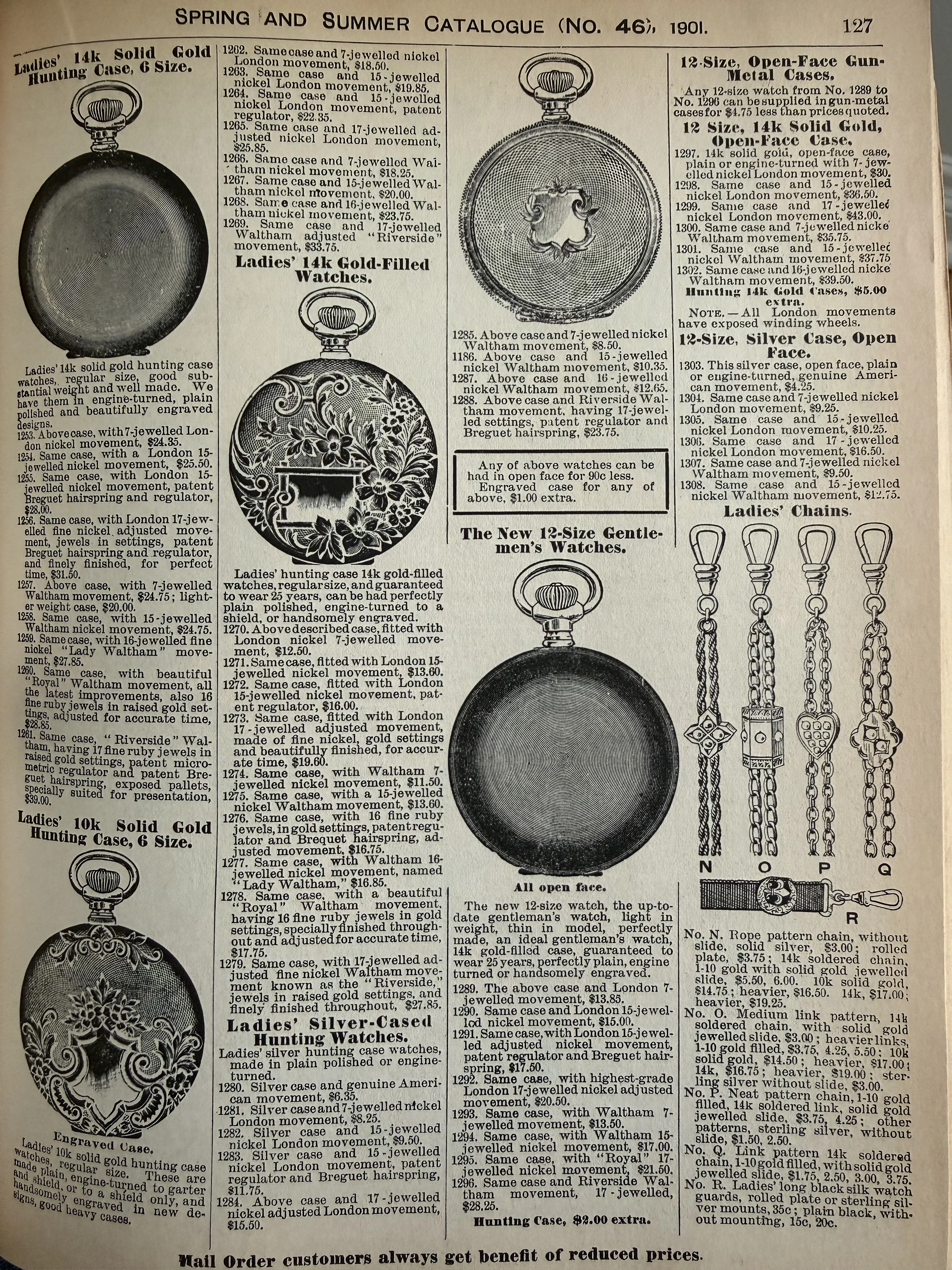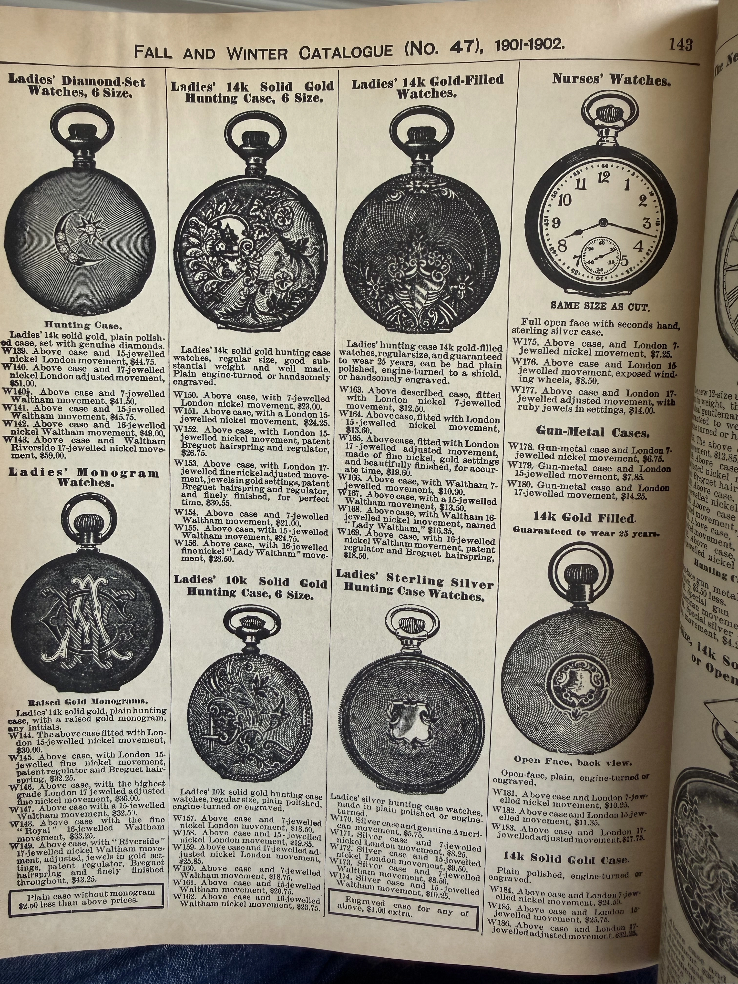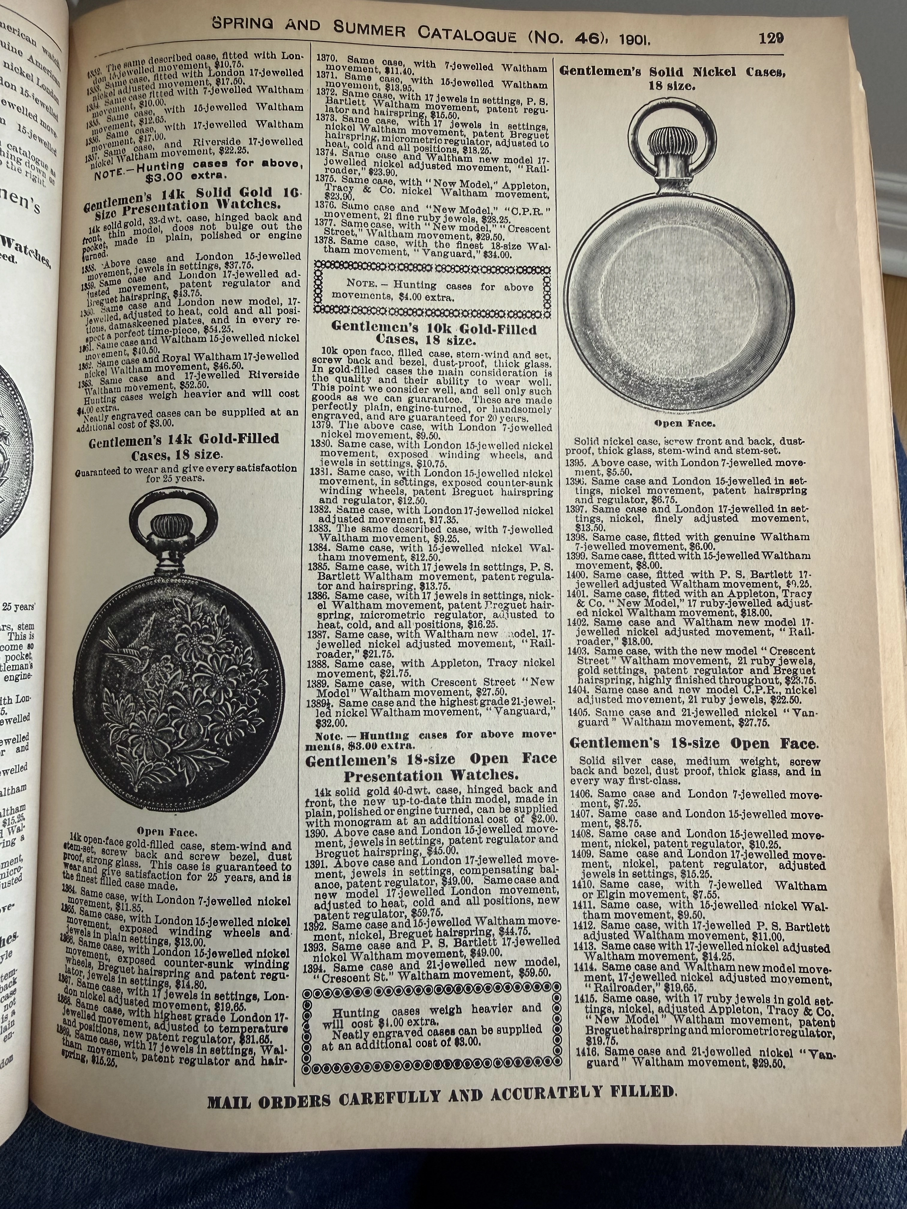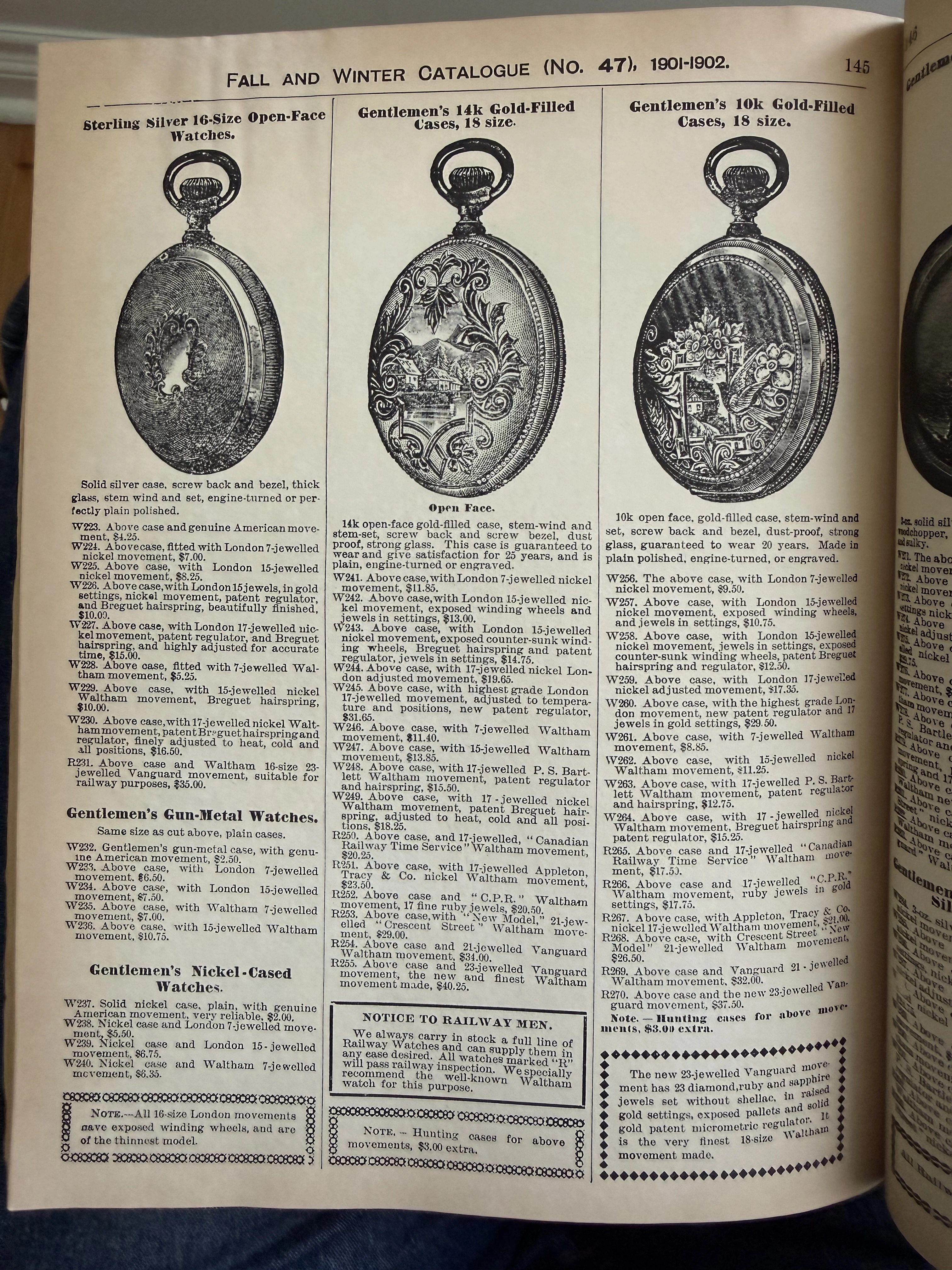 I have the 1970 reprint of the 1901 Catalogue. It’s not a rare book, but my search of OF does not show a thread to show the watches.