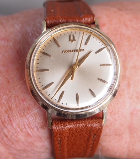 One owner (me) Accutron 214. Case back dated 1964. Wore it on our wedding day in 1966, wore at Expo ‘67 in Montreal and got caught in a cloud burst while in the line-up for the Czech pavilion, wore in 1971 when our son was christened, wore it at our 50th wedding anniversary party in 2016. Still looks and runs like new.