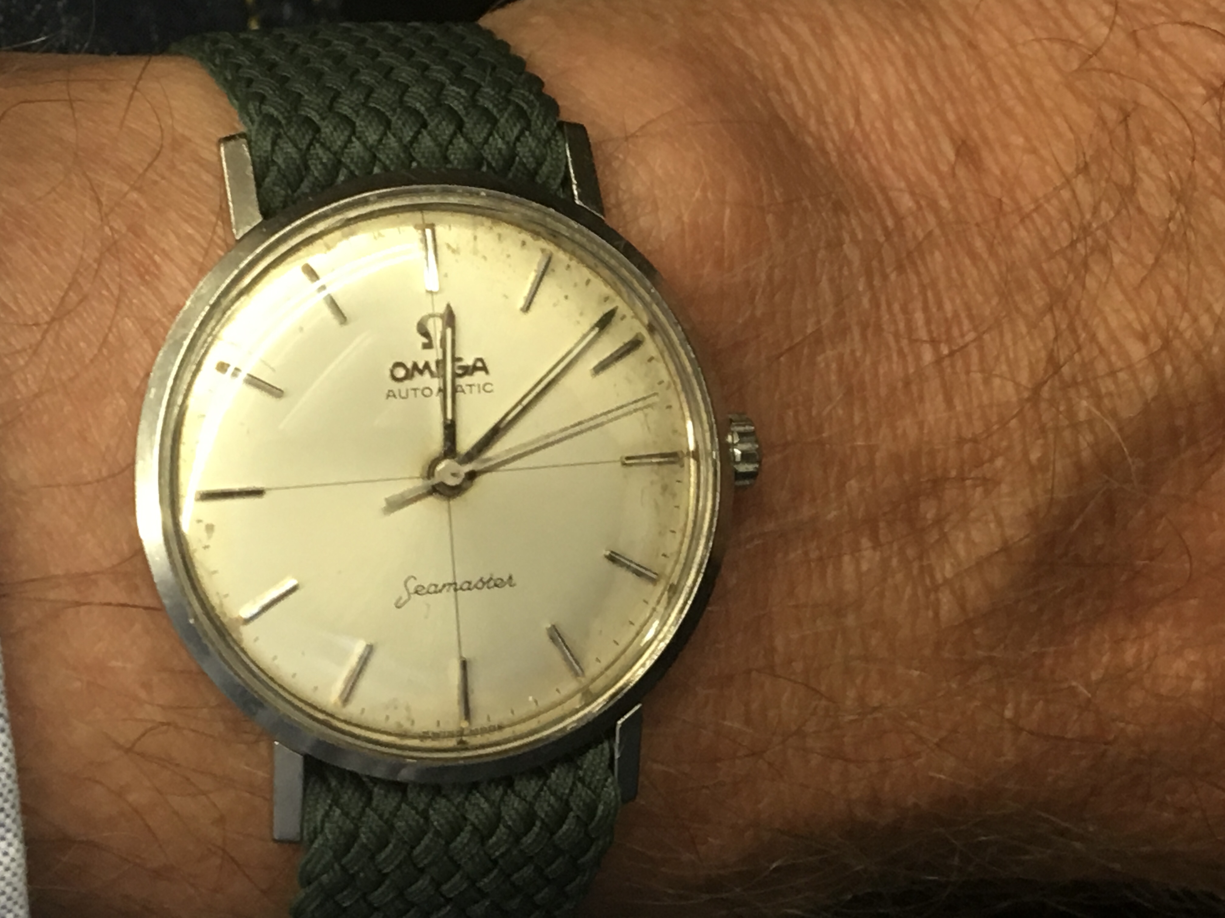 1962 Omega Seamaster (believed to be, any other info very welcomed). Inheritance from my late father, used by him for at least 15 years, in which he was a master in the Norwegian merchant fleet. So this watch have been around, in all sorts of conditions. Had it serviced some years ago, however kept all patina on case, hands and dial. The case back is truly marked by all those years on a perlon strap.