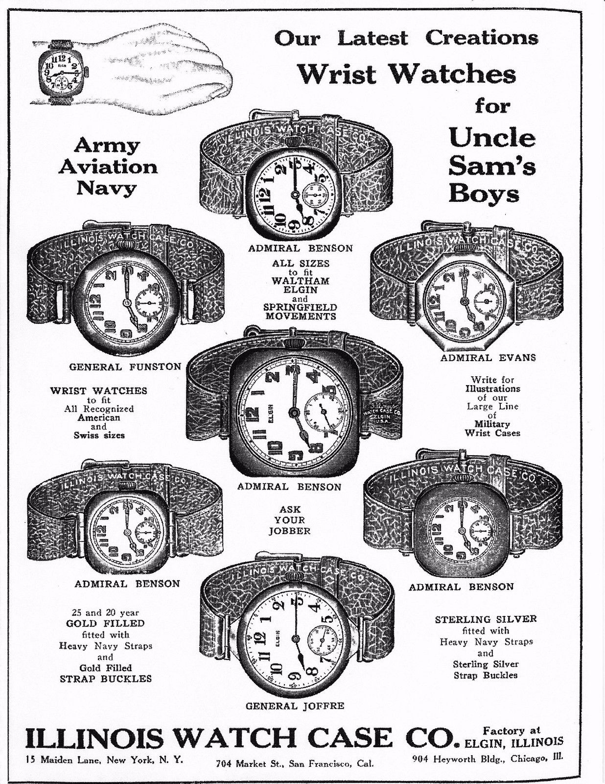 ·Early wire-lugged wrist watches were often made with sterling (0.925 fine) or coin (0.800 fine) cases. For watches produced for and during WWI, I would expect that they would have gone black, and this actually makes sense, because the black would be less reflective.