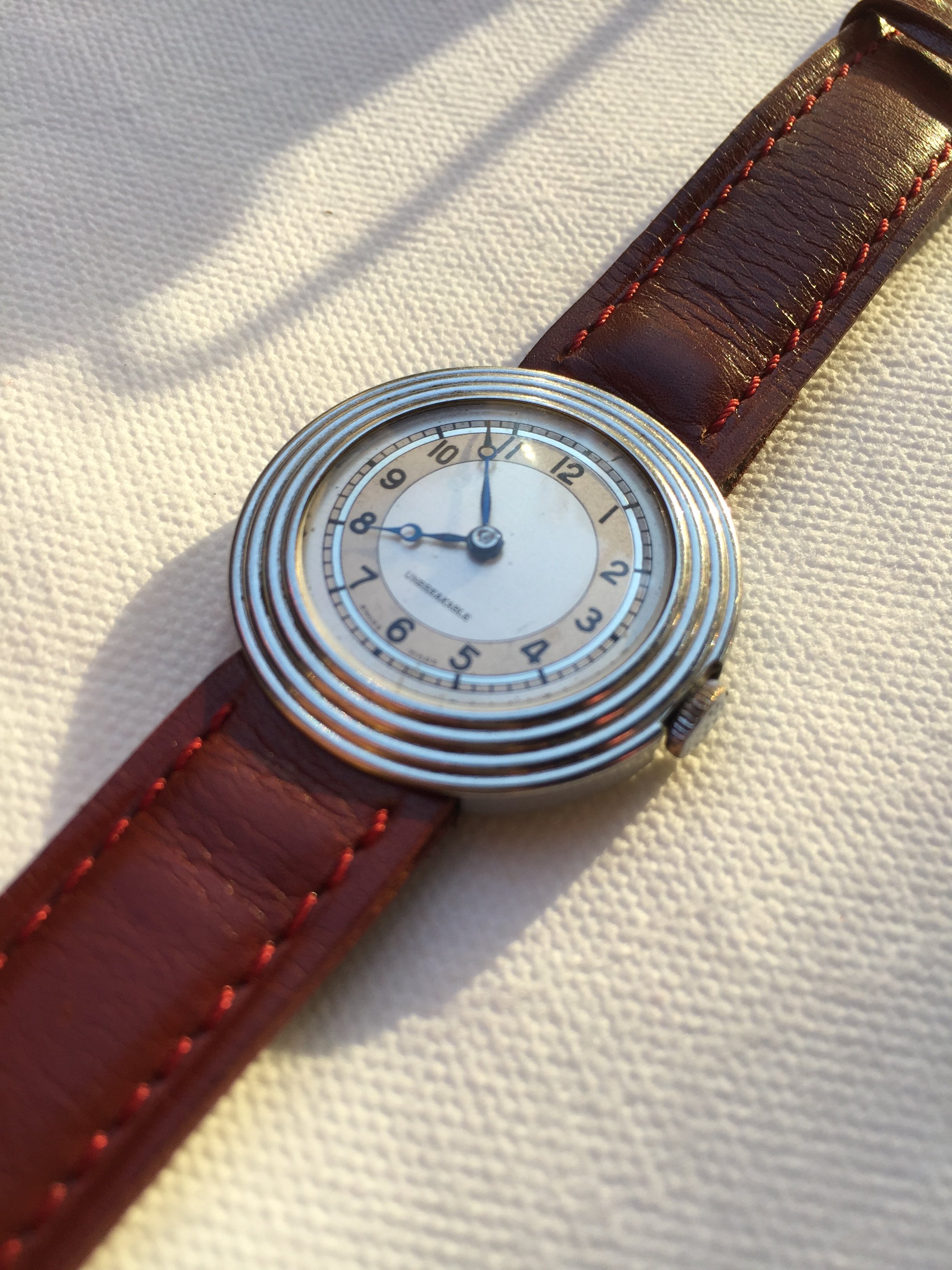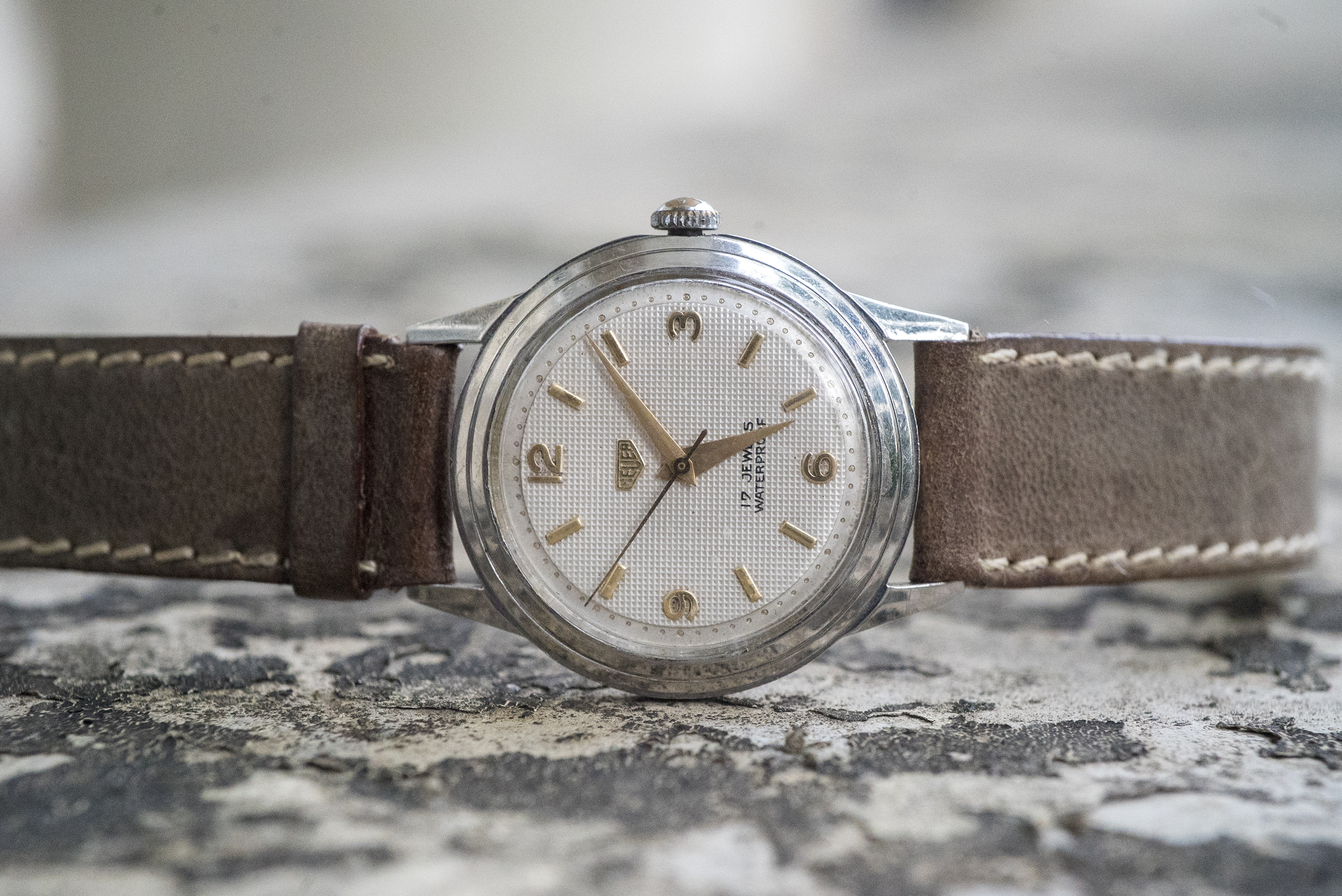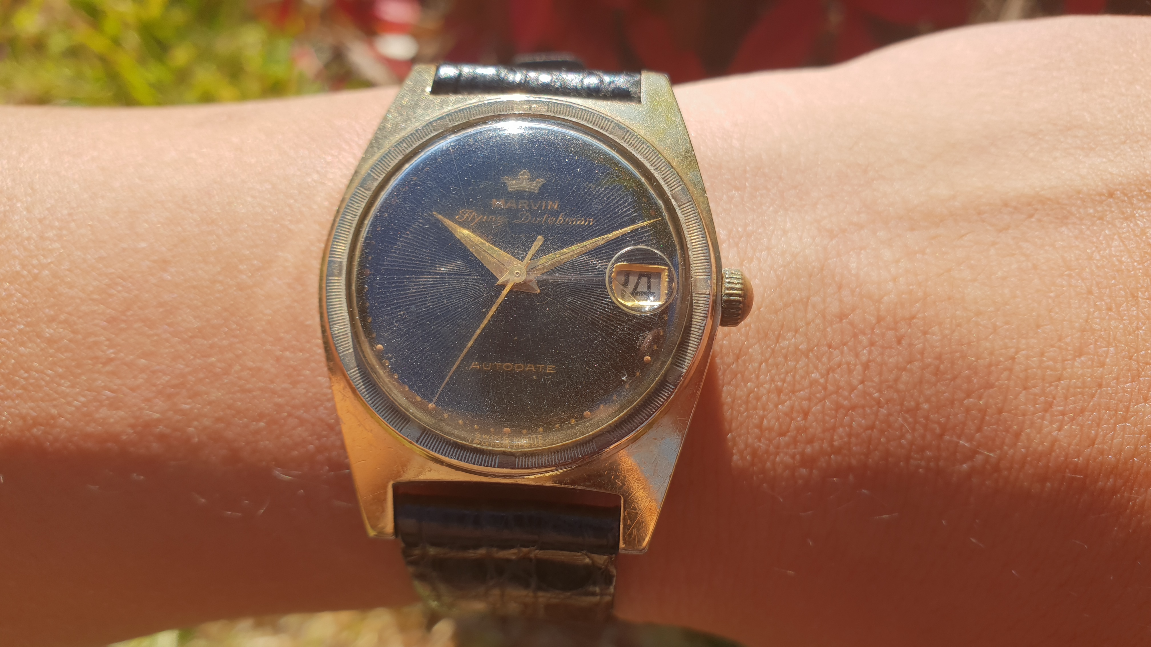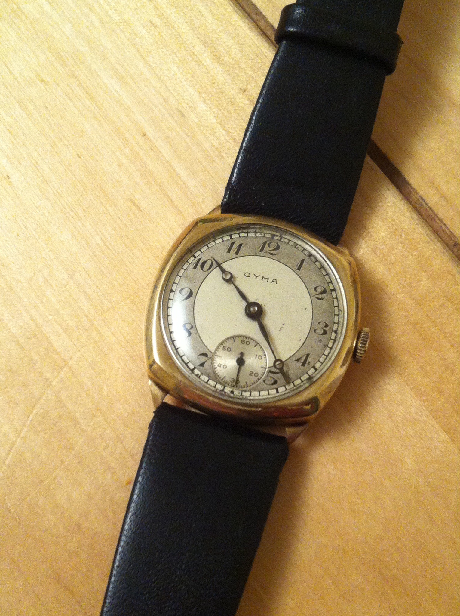 30's Zais (Breitling..Venus movement) bubble back Chronograph..allegedly used by the Italian airforce. I don't wear it at all much as the dial is painted slate and the watchmaker really couldn't fix the slight rattle of the movement inside the casing. I bust it last time by clapping my hands in front of the class too hard!!