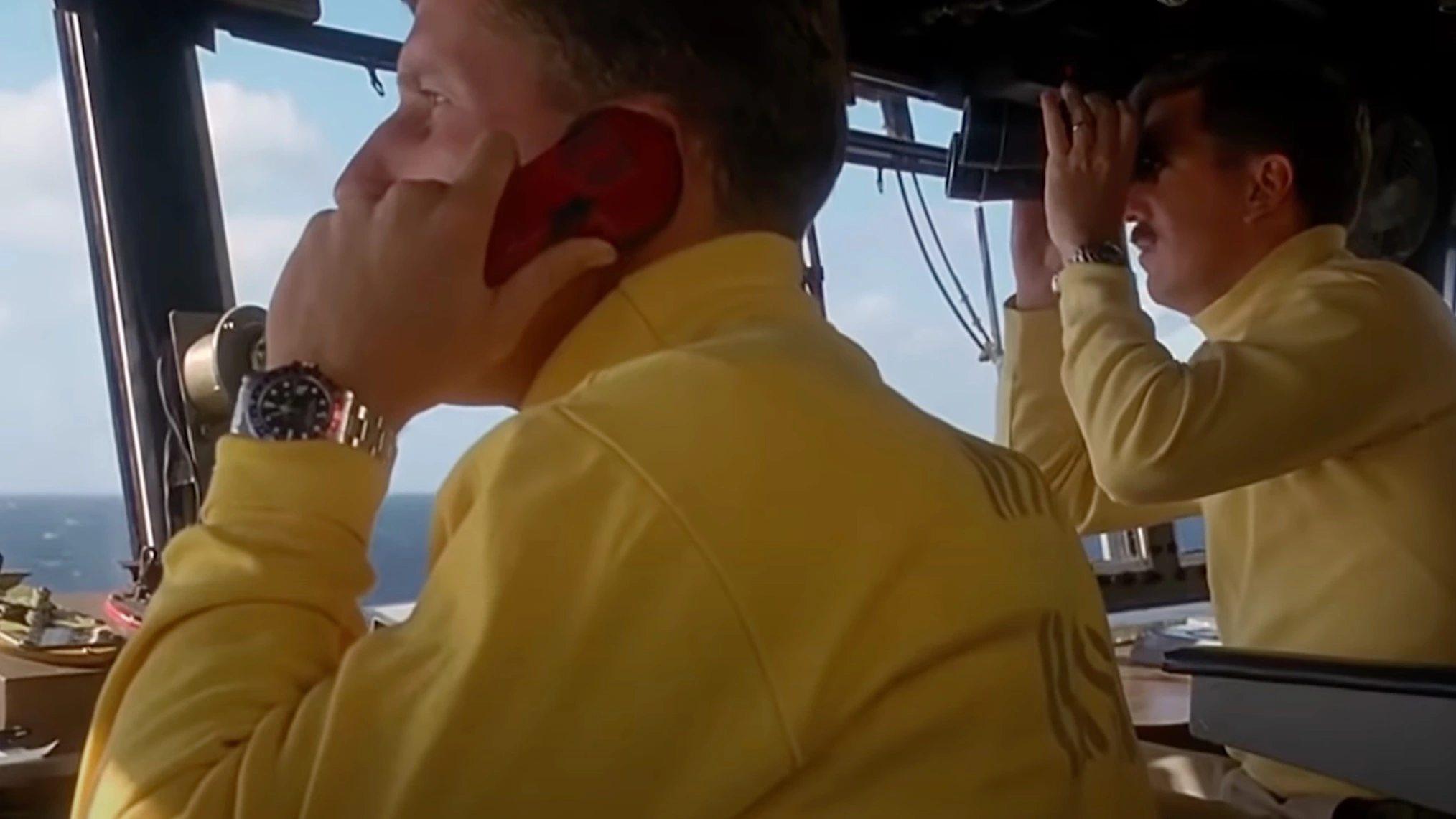 ·From Tomorrow Never Dies, one of the crew of the stealth ship clearly wearing an Omega Speedmaster.