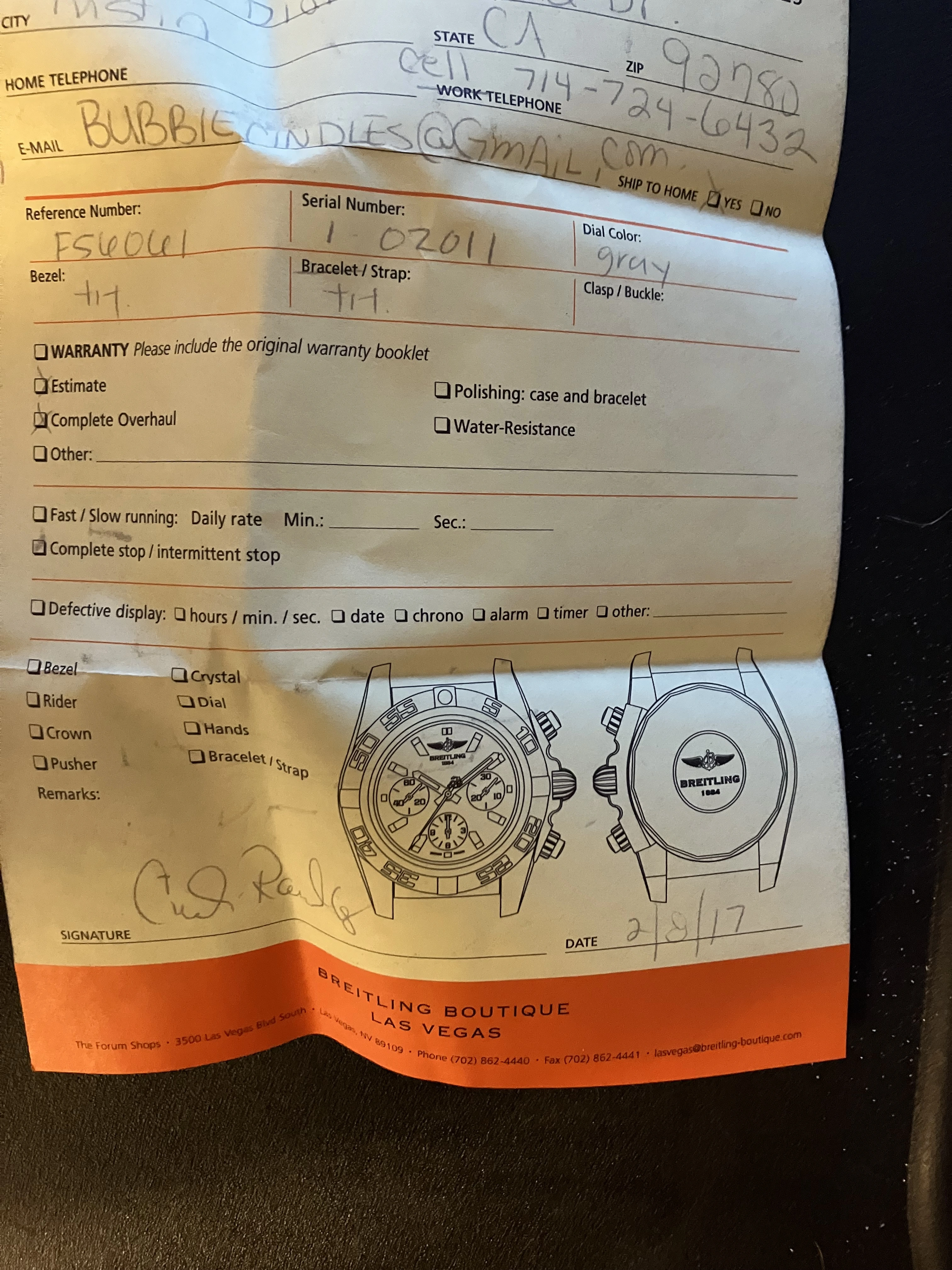·Hello! I was given my late grandfather’s non-working Breitling Aerospace, F56061. my mom got it serviced in 2017 by Breitling, but she said it stopped working relatively soon after she got it back and after the bezel popped off.
