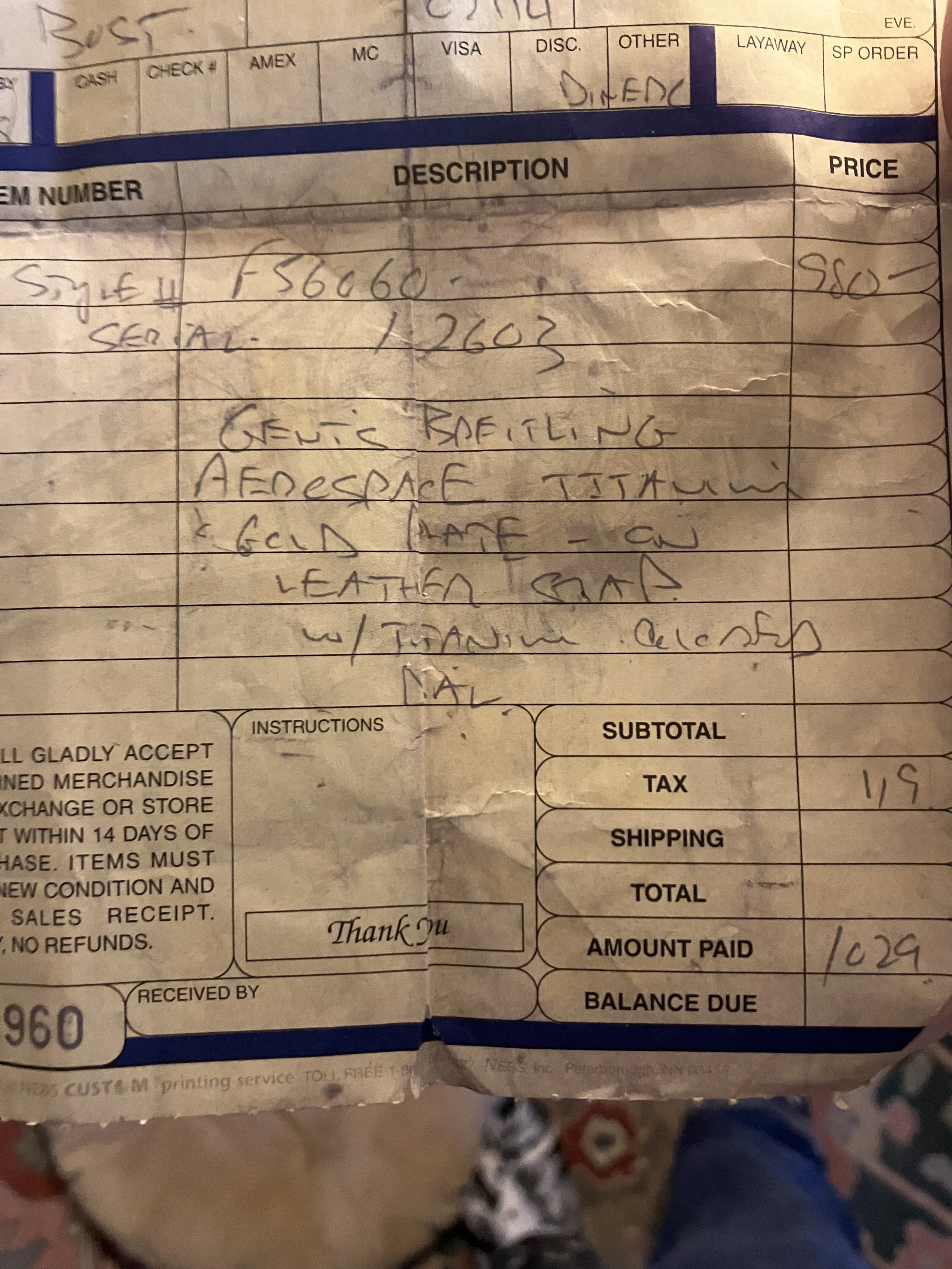 Was wondering if anybody had any suggestions or advice. I’d prefer getting this running again (if that’s possible) rather than buying the same reference, since it was my grandfathers. We even have the original receipt from 12/31/1994, so I’m assuming it was a Christmas gift to himself.