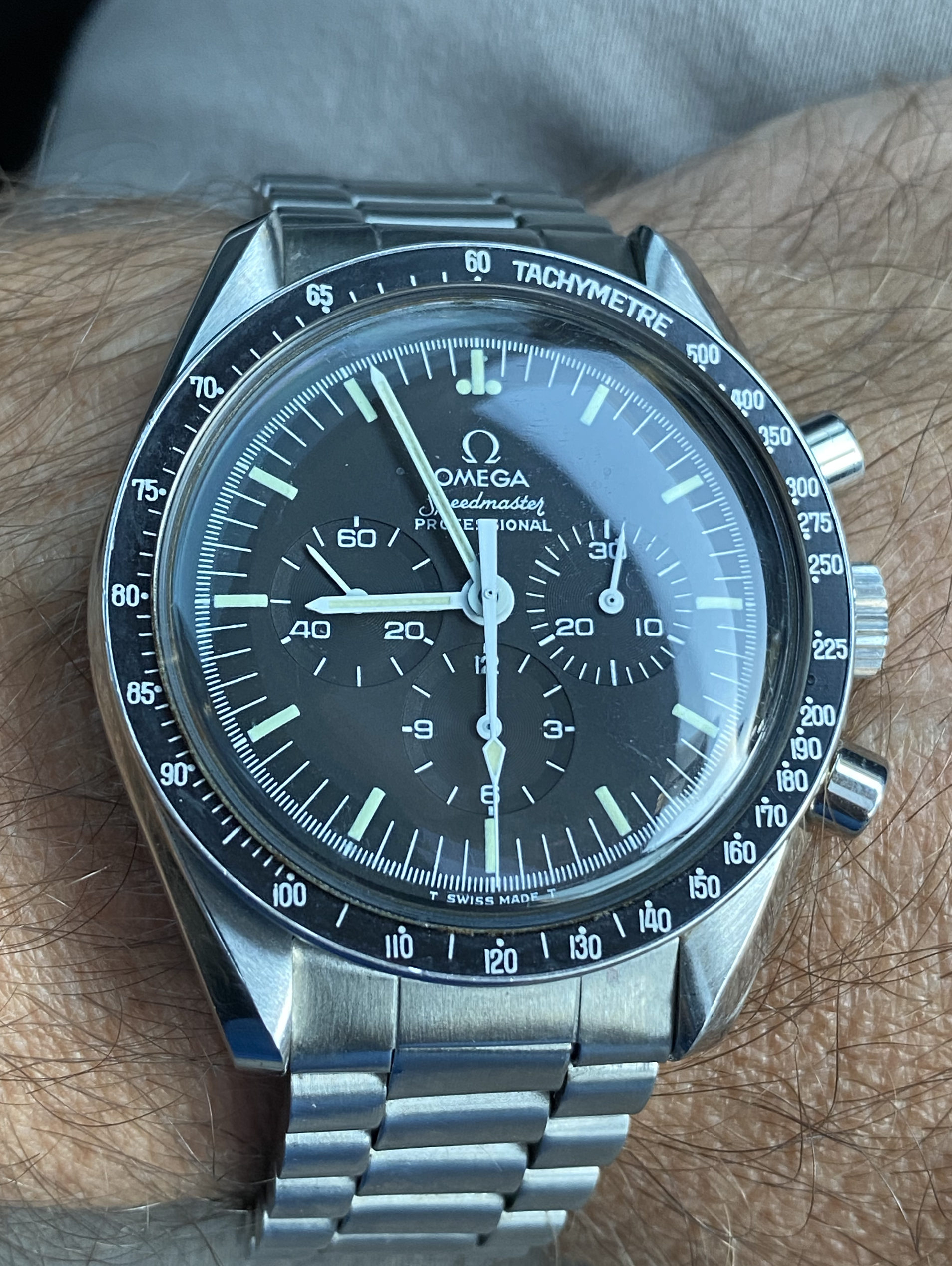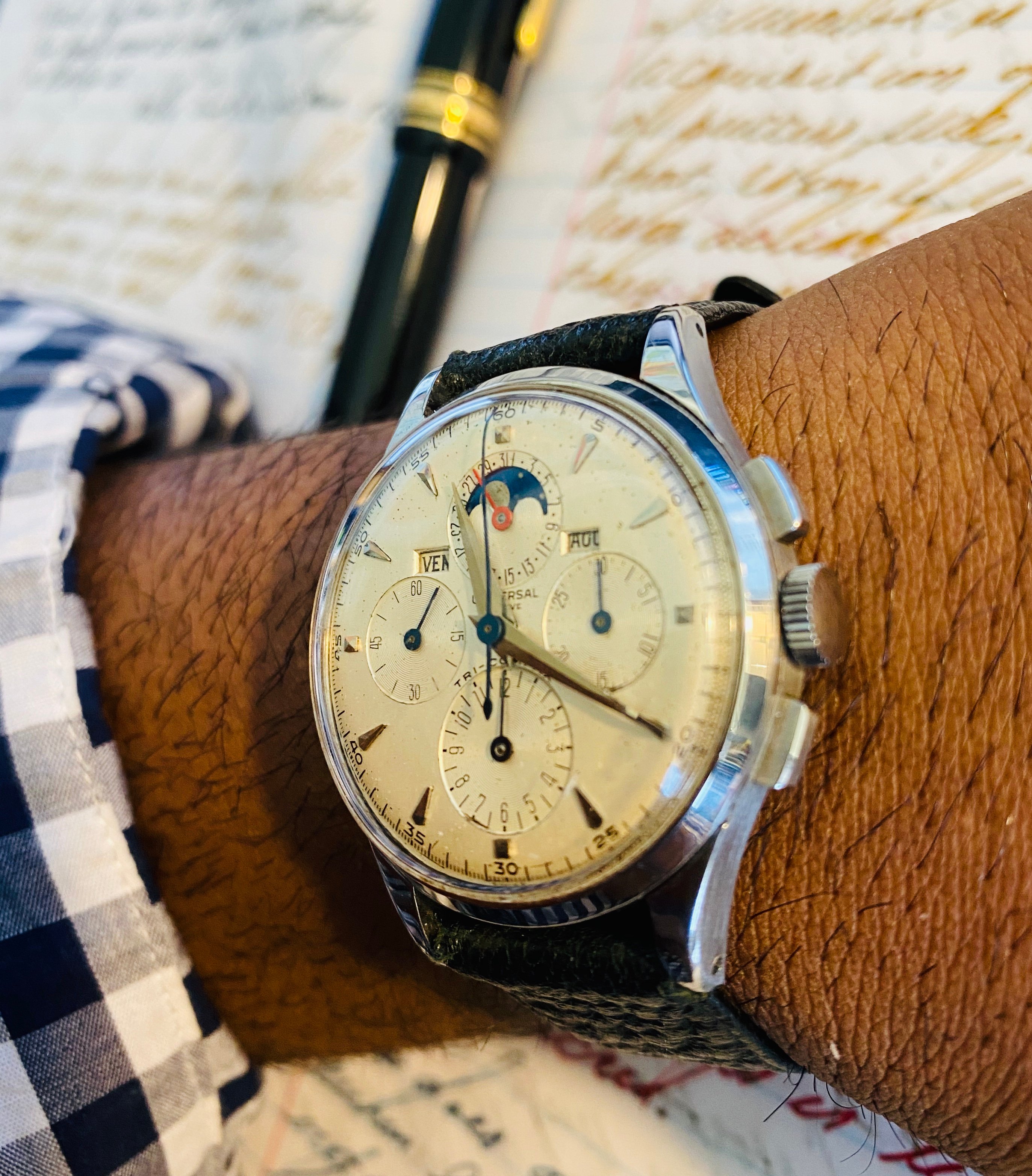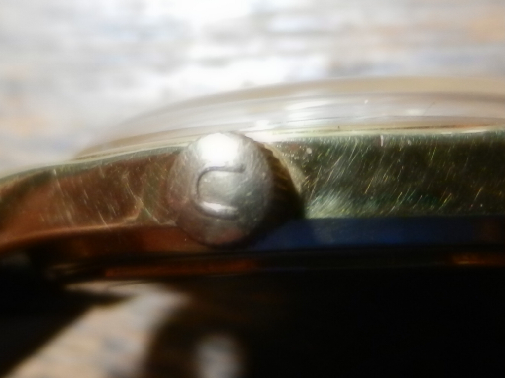 This is the crown on my 10357-1 which I believe is the correct one. It measures 4.5mm in diameter. The later style of "U" on yours would lead me to also believe that it is probably a replacement one.