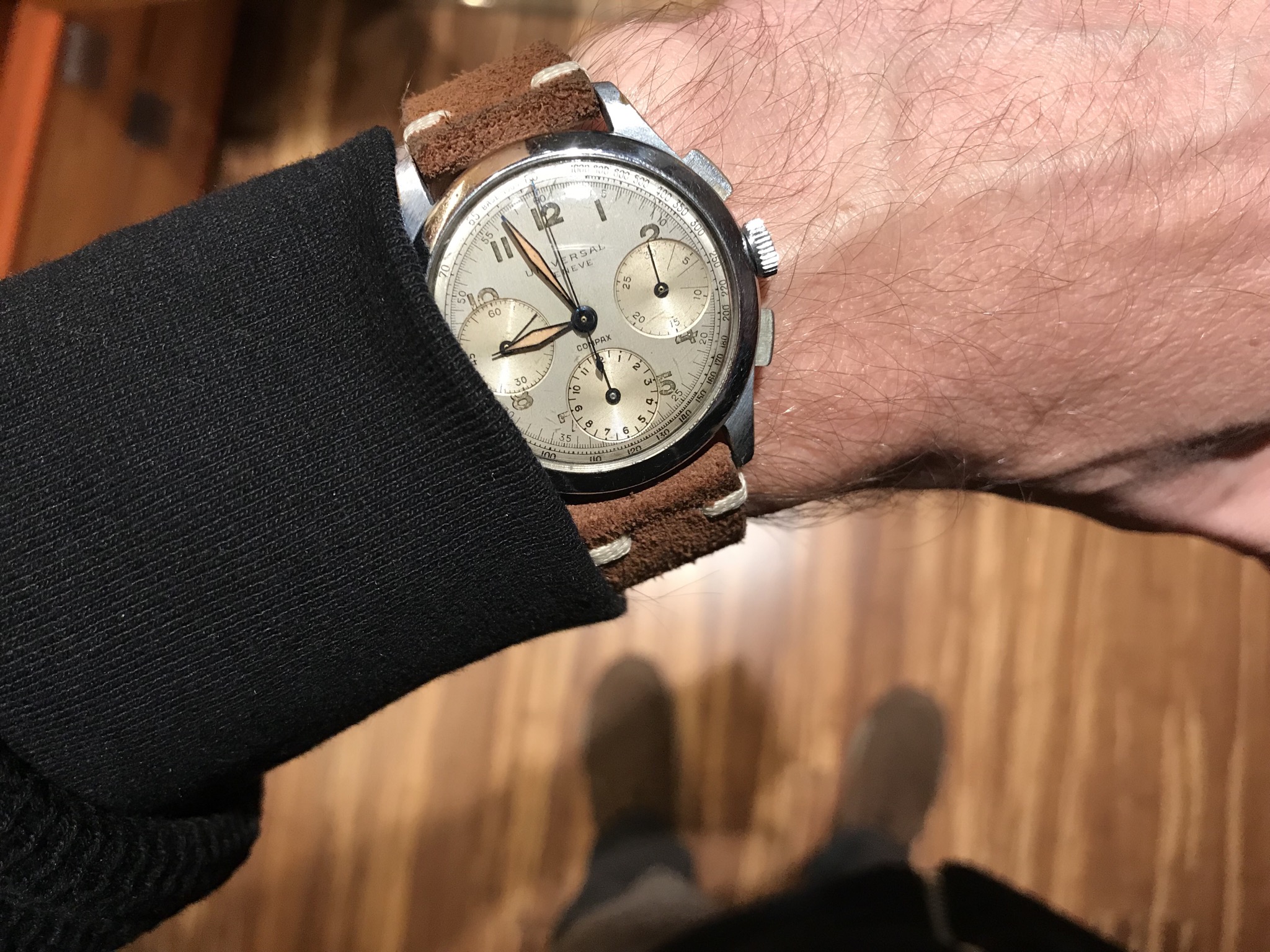 ·Interesting browner-chocolate patina on that one. I've seen a few of these Super speckled dials listed over time, all have patinated a bit differently, which is just cool.