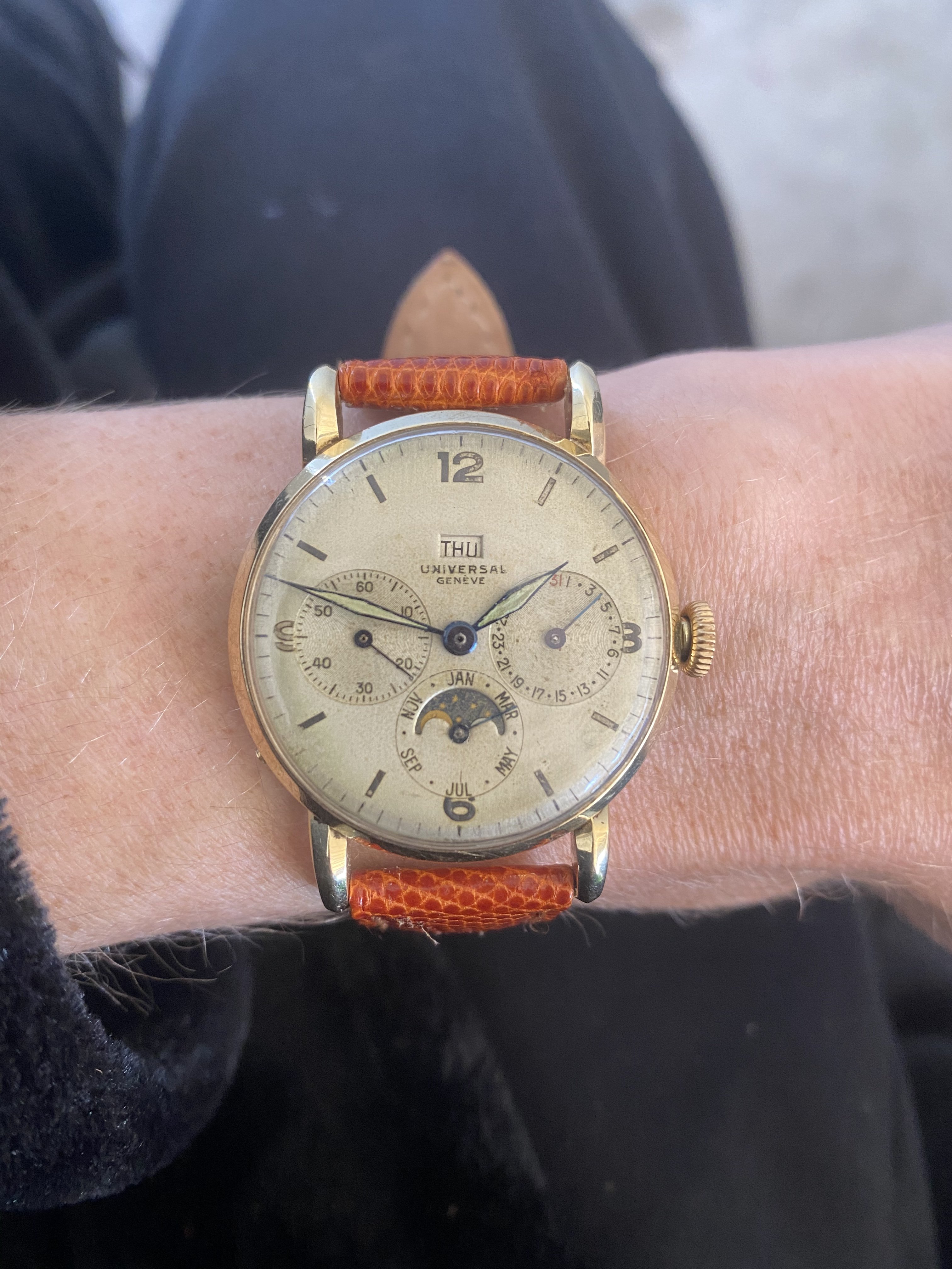 Posts 13,461 Likes 52,950 Larry S ·Mar 5, 2021·Color Commentator for the Hyperbole. Back from a month in the spa getting the moon mechanism redone and chrono reset sorted. Works great.