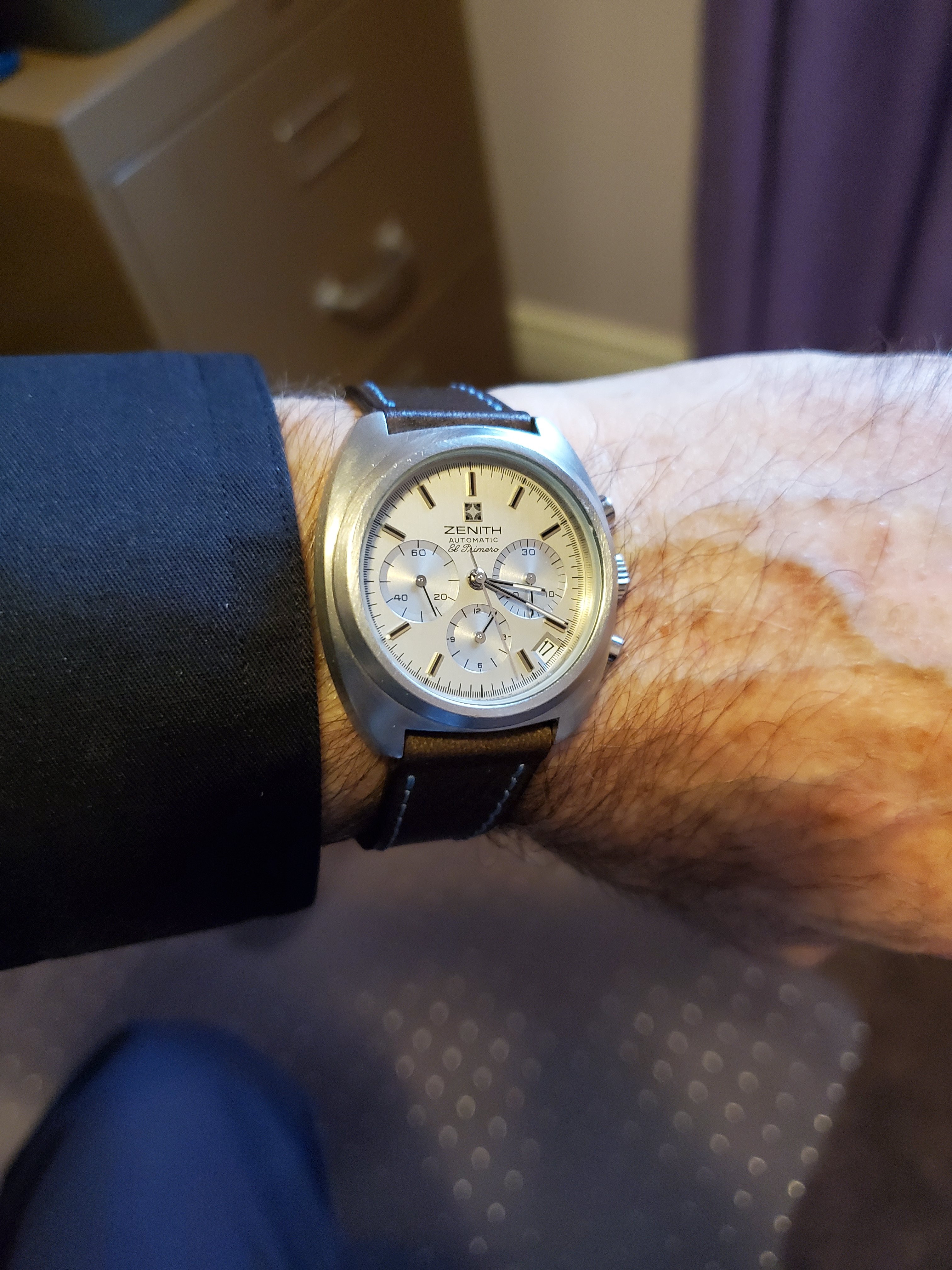 Posts 13,461 Likes 52,949 Larry S ·Oct 15, 2021·Color Commentator for the Hyperbole. My birth year watch today. RG Oversized UNI. Distressed gator strap.