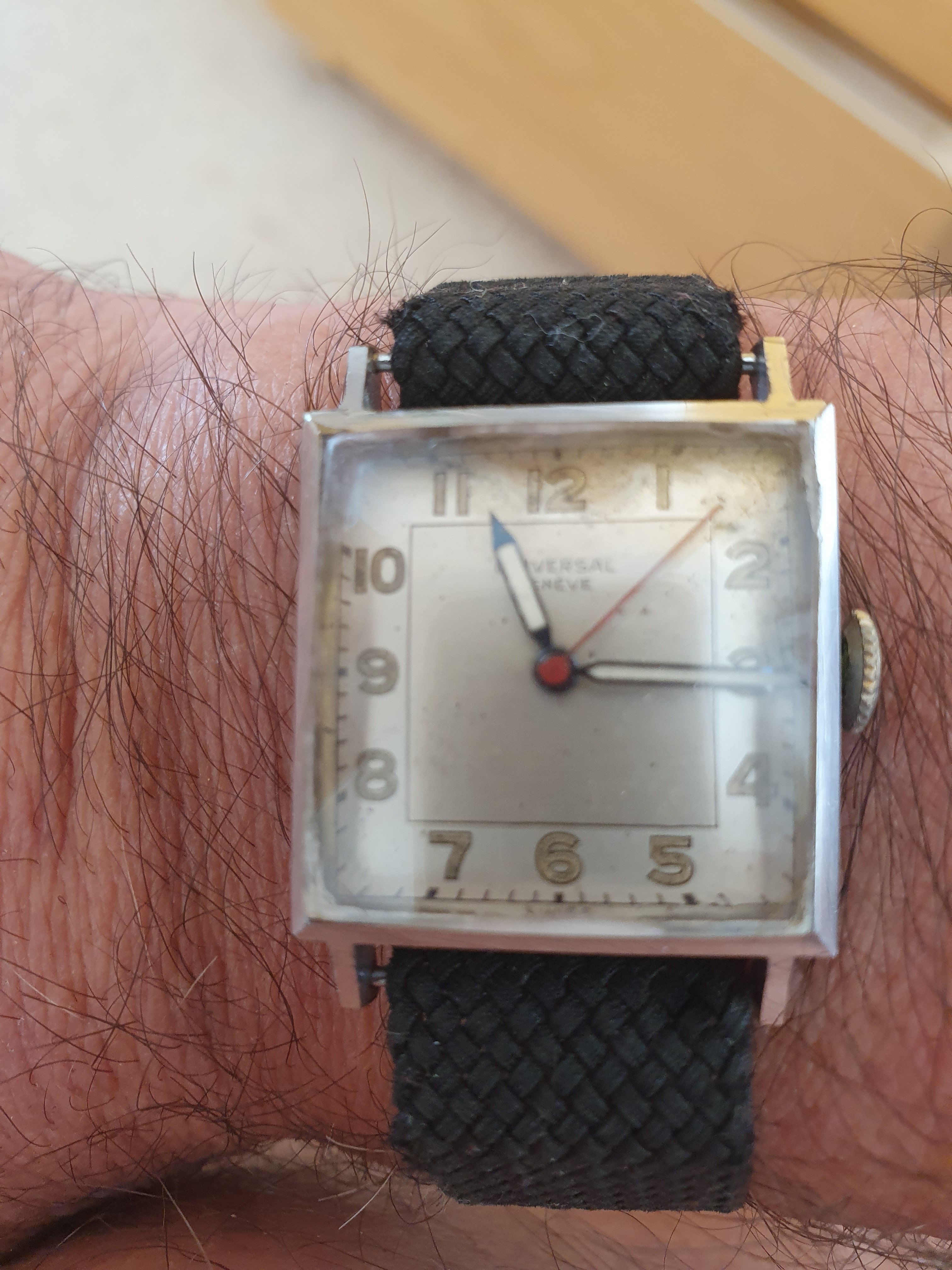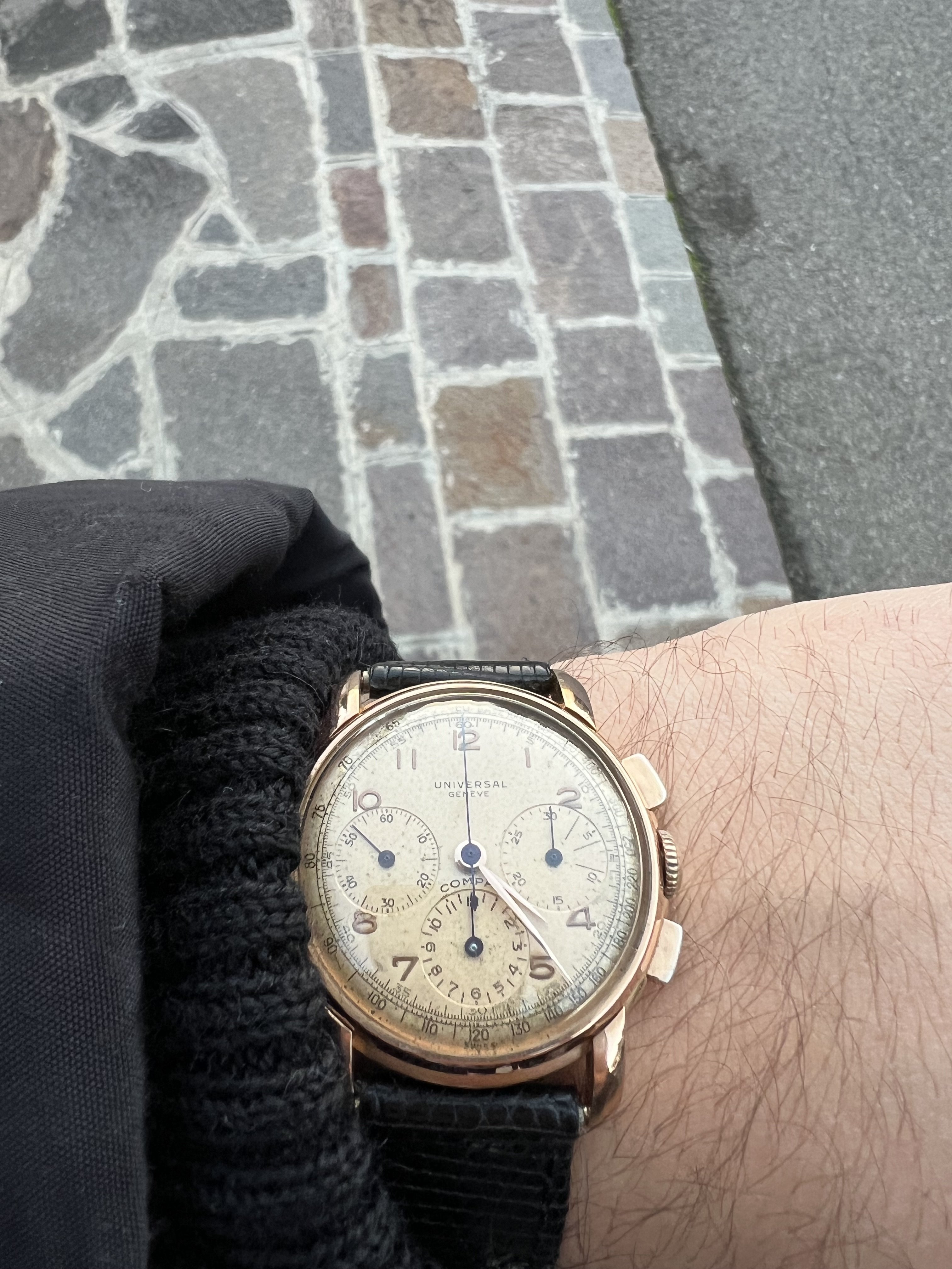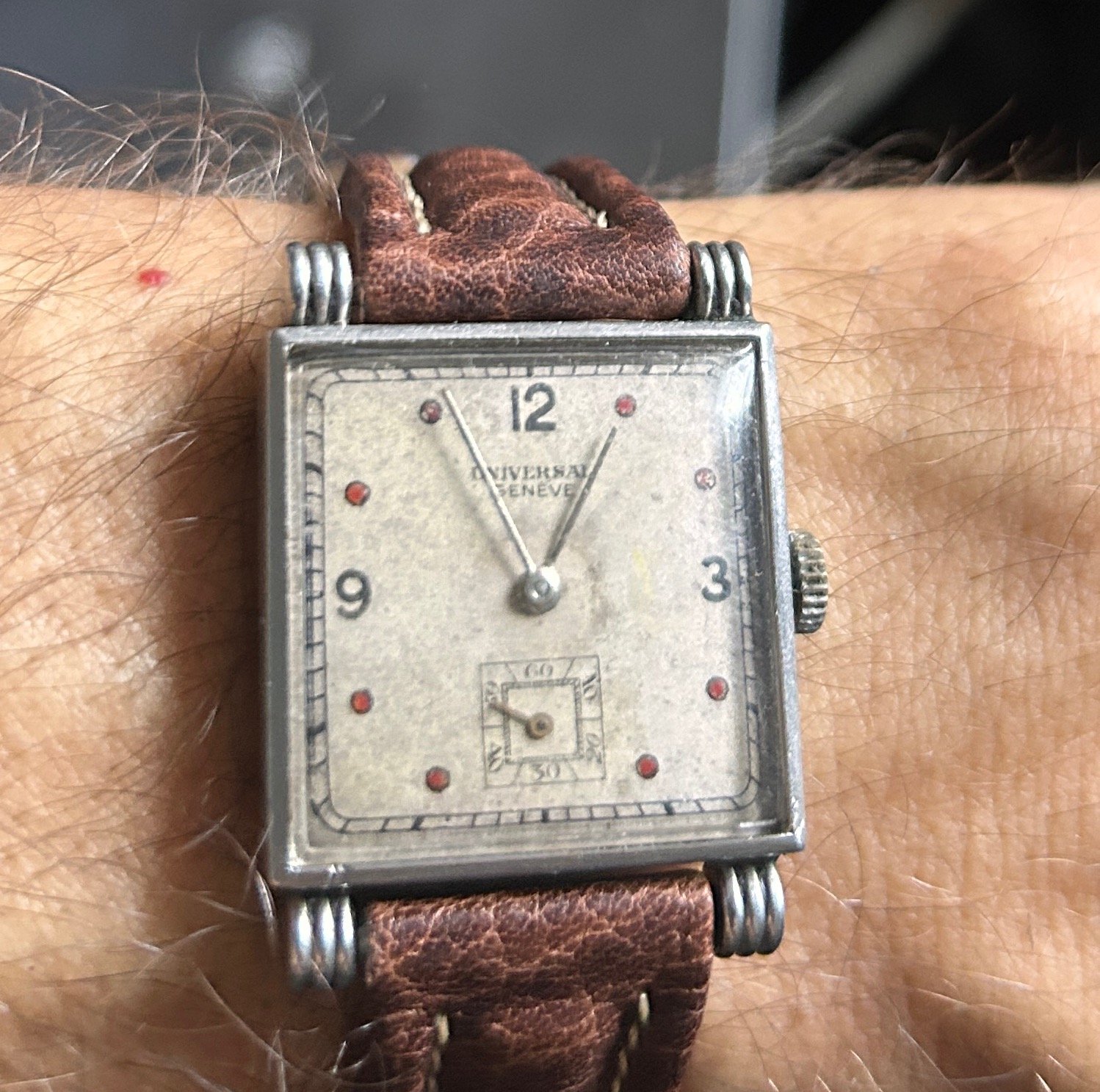 Ha pls don't mistake that for confidence.. it's more the idiot savant bravado with heavy emphasis on idiot. I've just seen so many ug dials. Not a legit one with the "UNIVERSAL" printed with such flair though. The red dot hour indices on the dial- seen it with silver or gold foil but never a painted red. Lot you can unpack with that dial but why incriminate it. I like it. Dials were often redone in this era. This one is classy and has character.