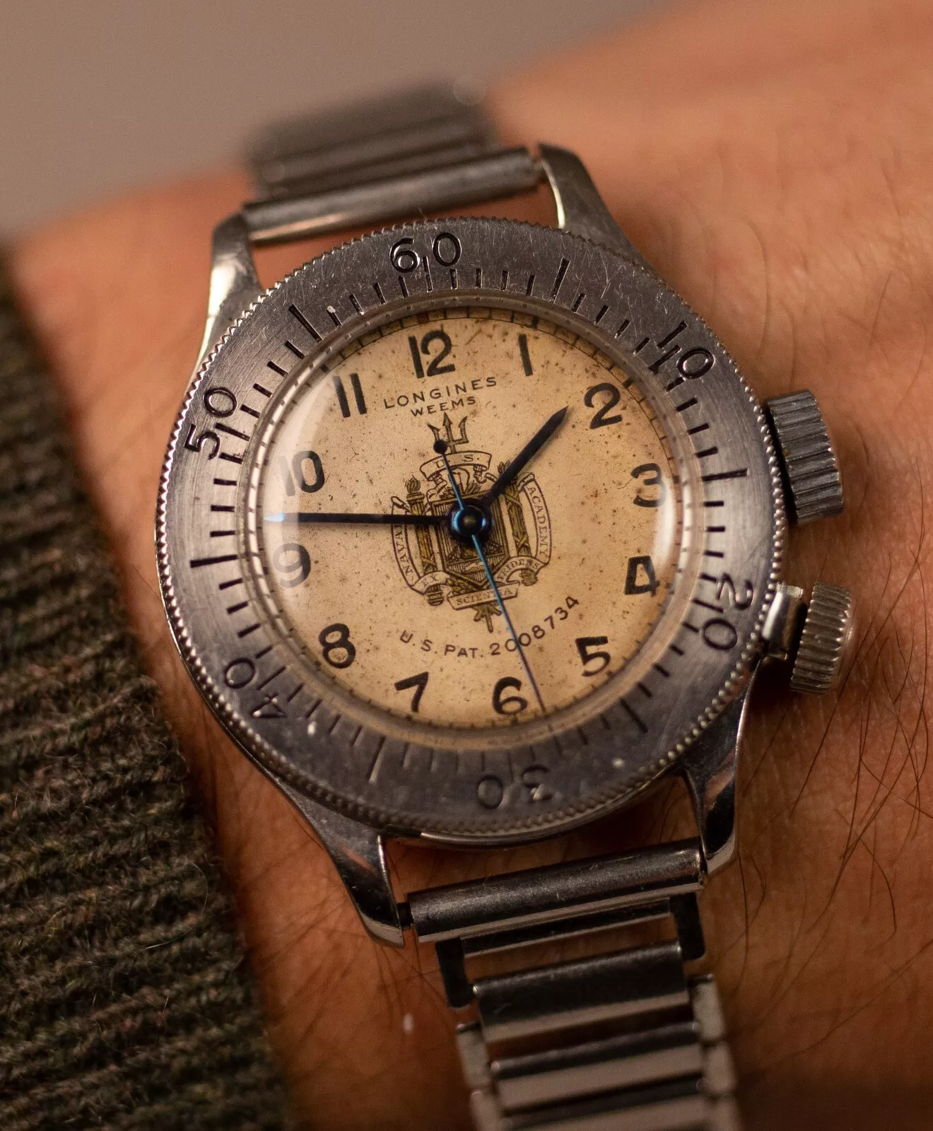 ·A reminder for Weems aficionados that we're still trying to identify the specific Weems big crown aviator watch worn by Neil Armstrong during Gemini VIII. It belonged to Armstrong's childhood aviator hero James Mattern (1905-1988), who was also a testpilot for Lockheed and supported the space program. Mattern's record breaking attemps took place in the early 1930s...