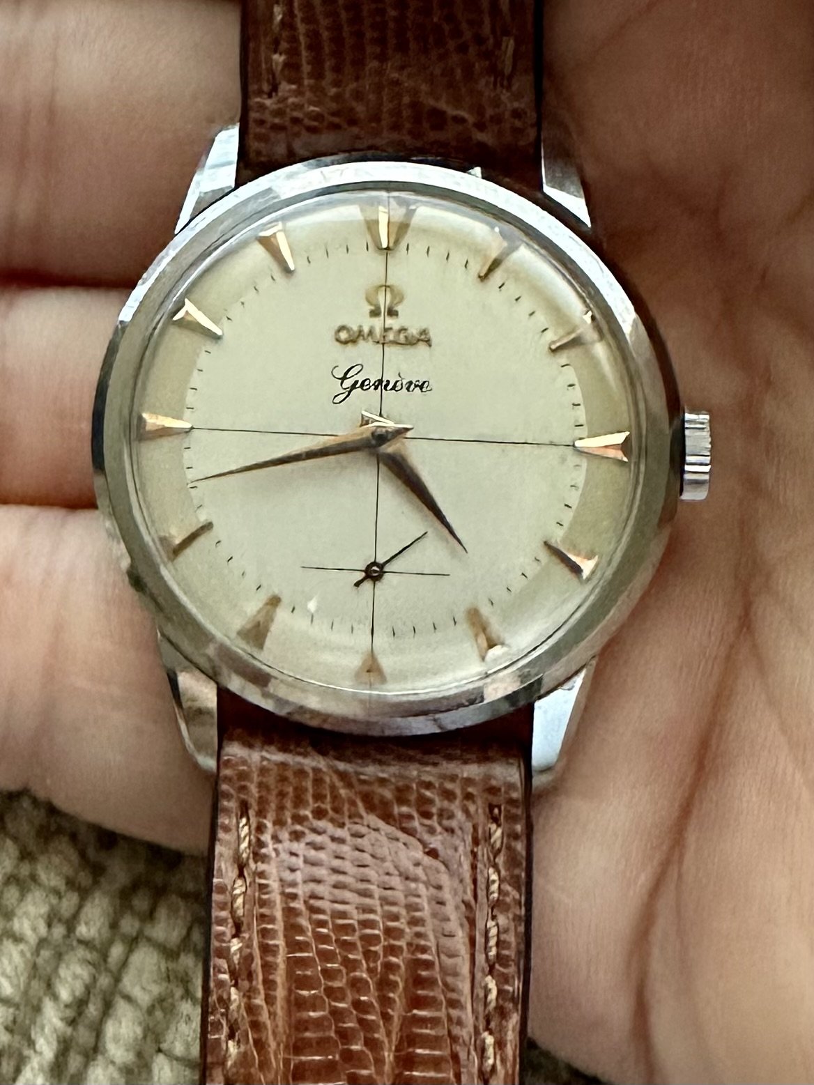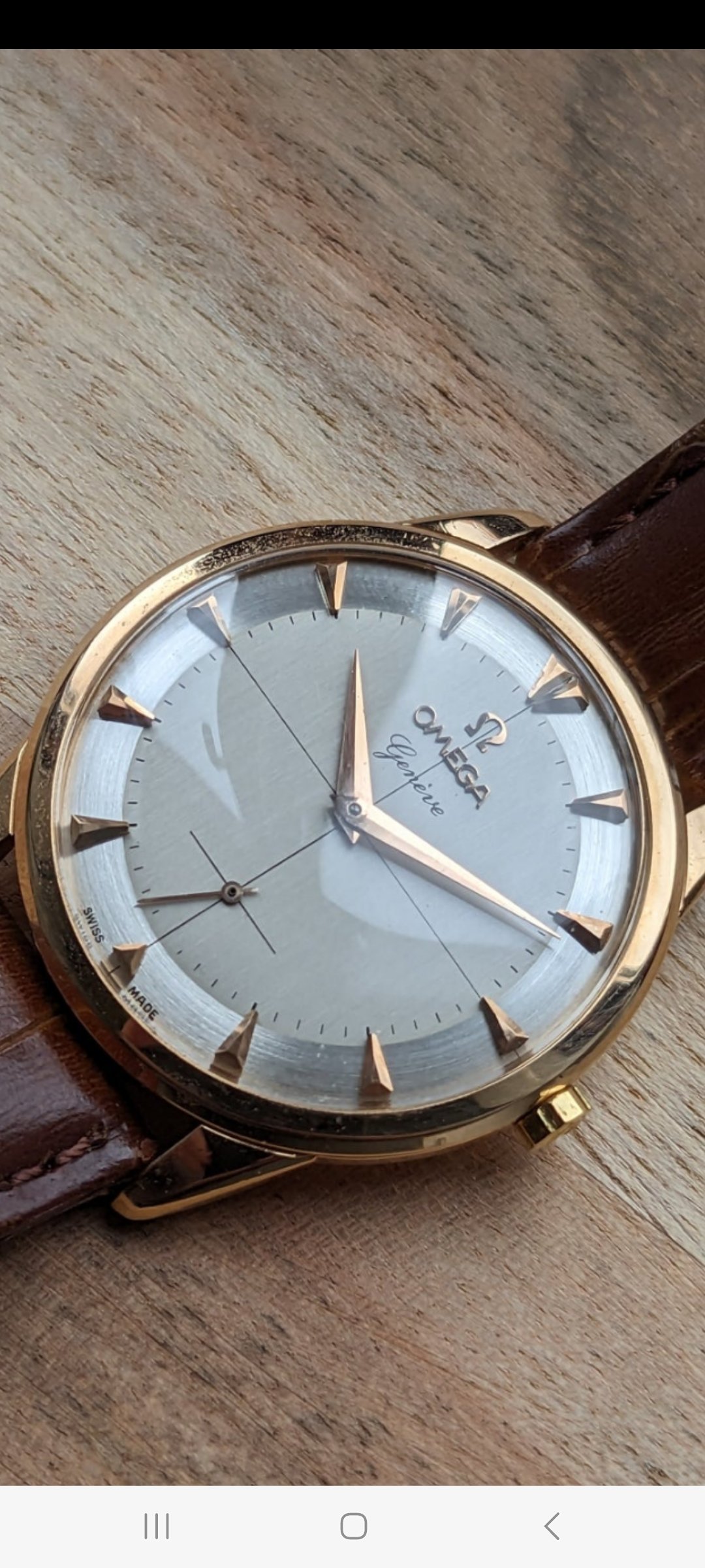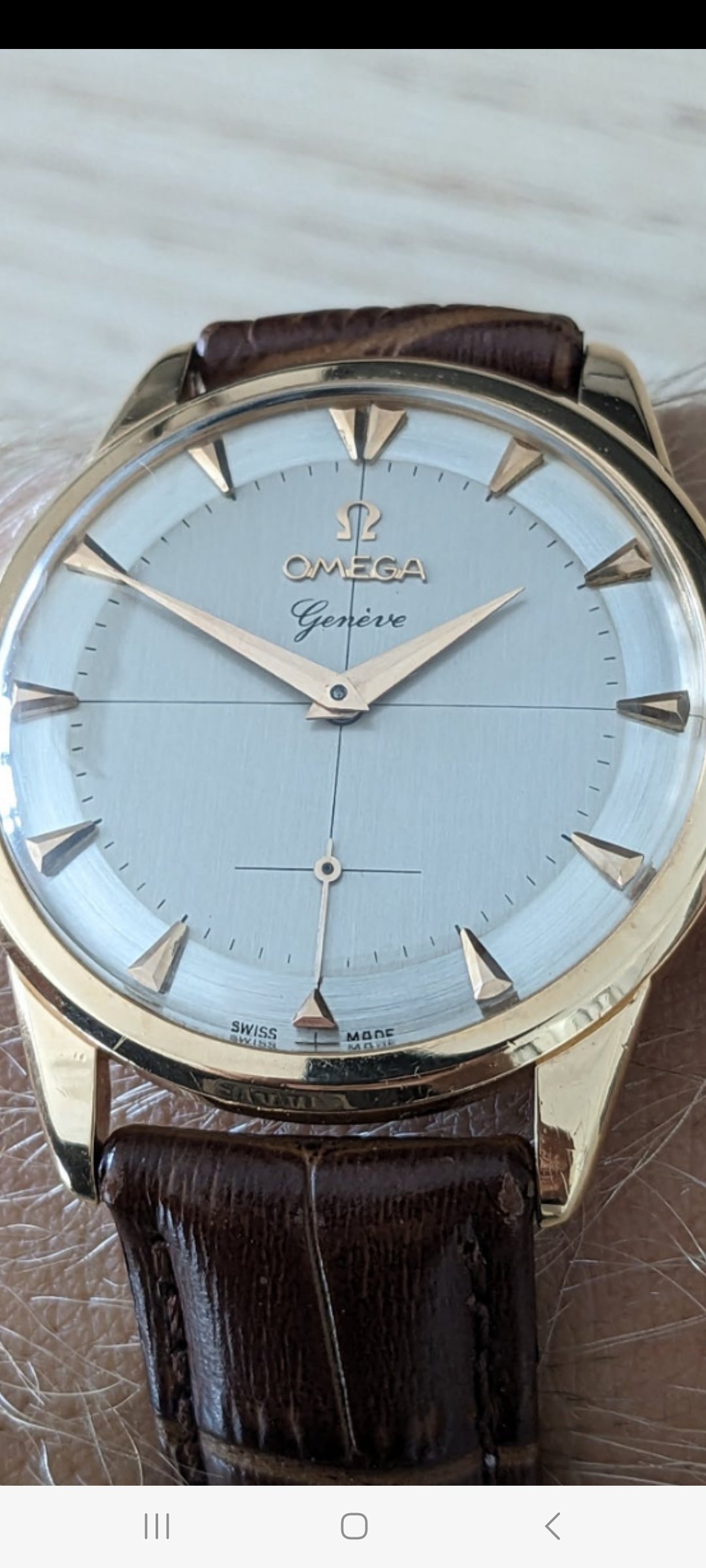 I am negociating to buy this lovely vintage omega geneve, but looking at similar Models here and lther websites, I can't find one with the same style of cursive writing, nor with the "swiss made" separated line that.
