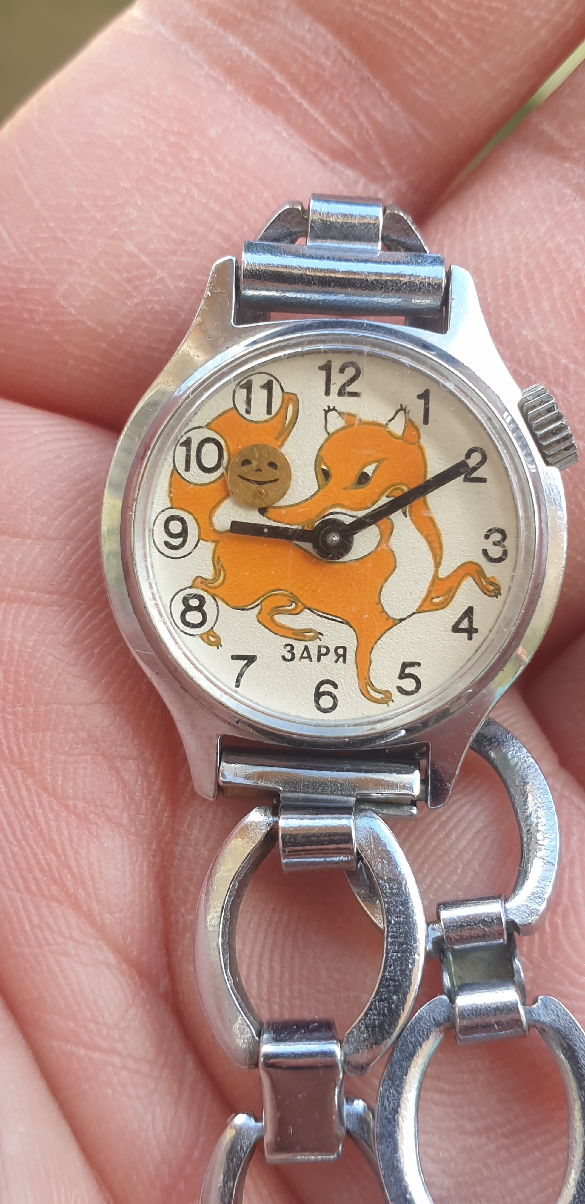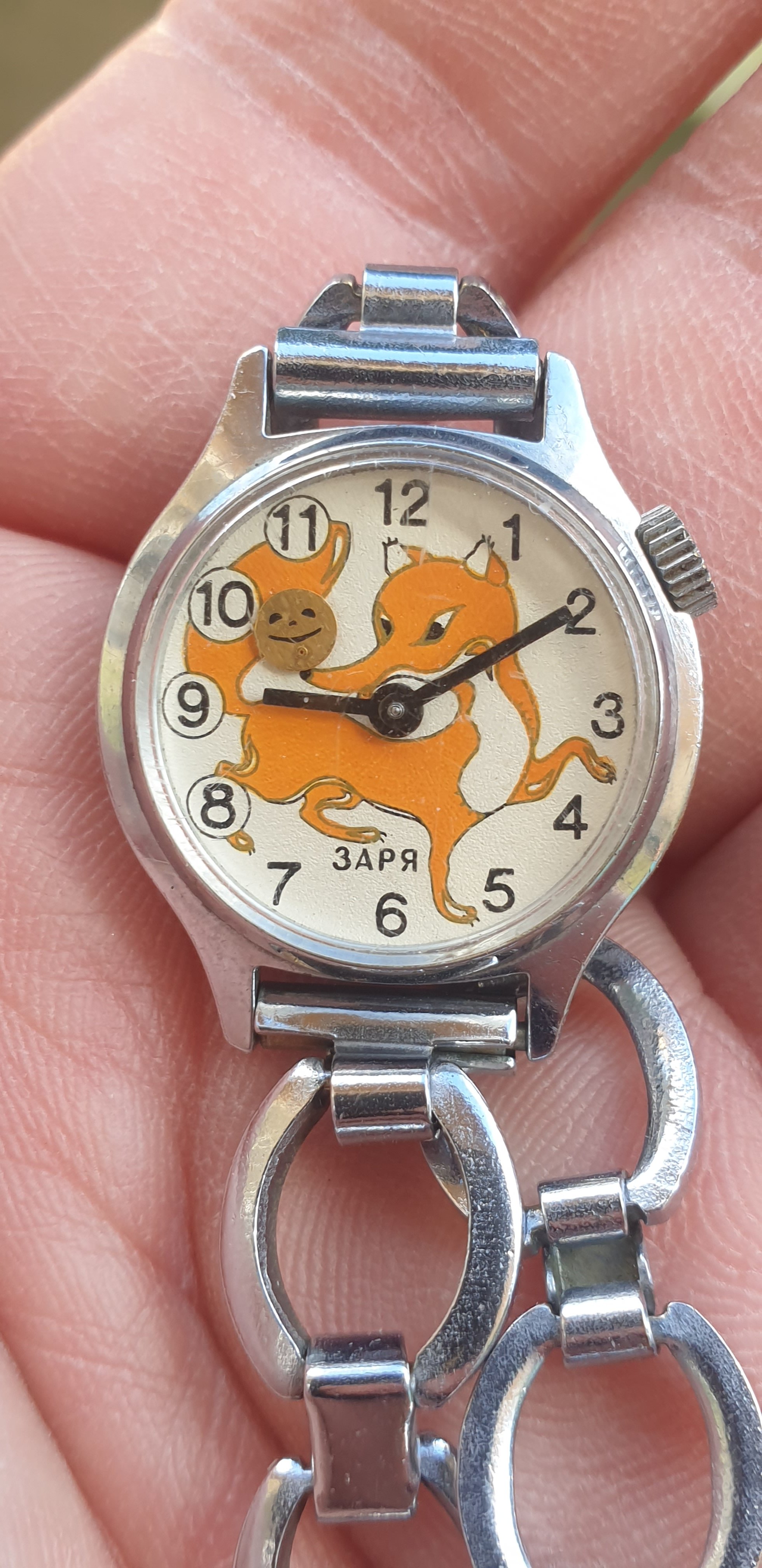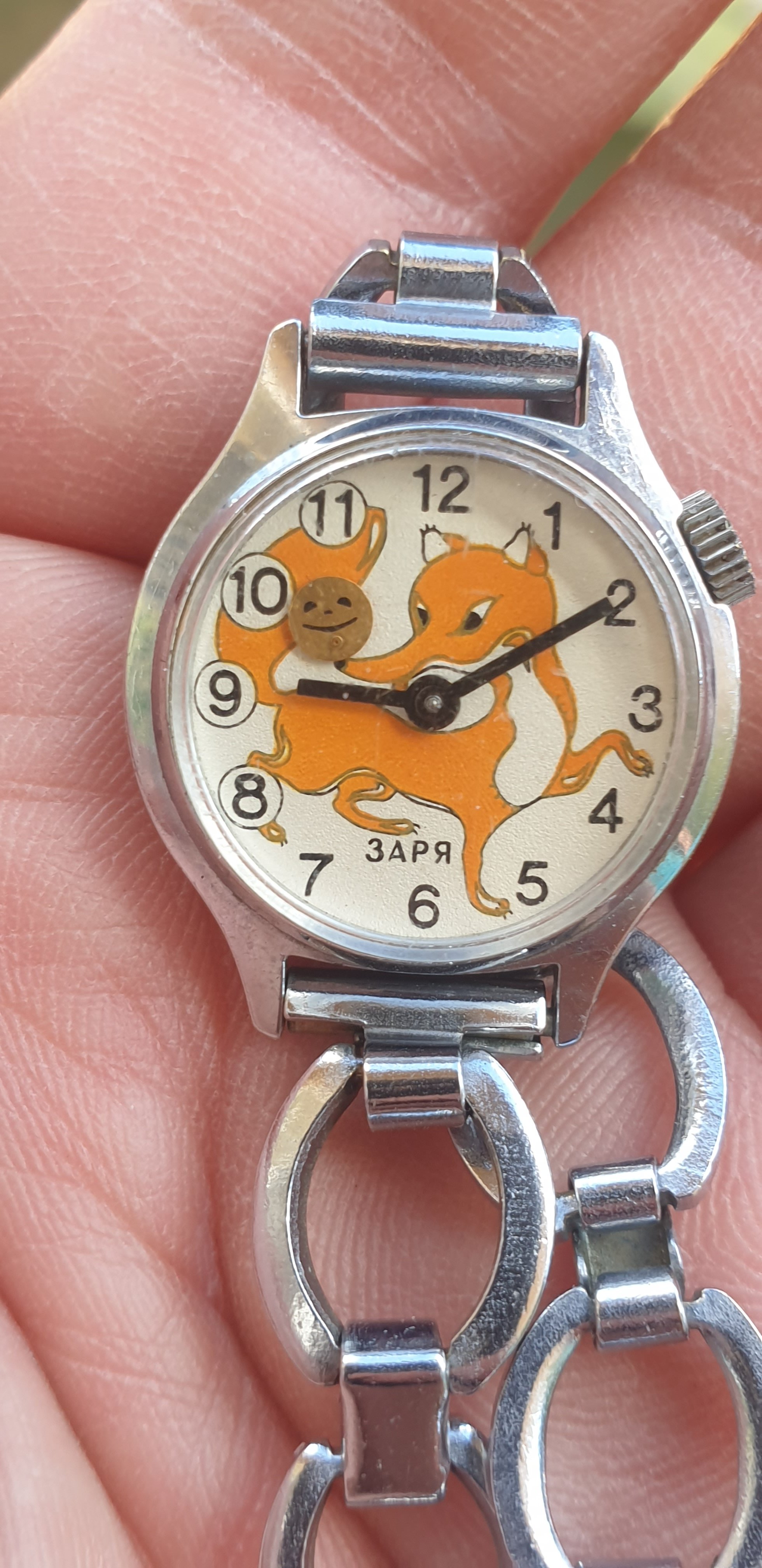 The bread on the fox's nose is the seconds hand and swings left and right