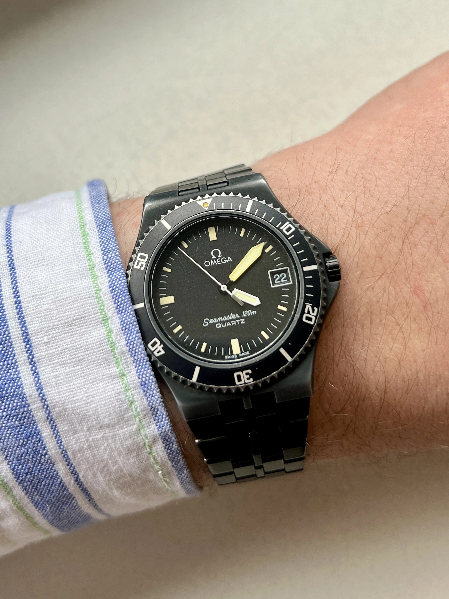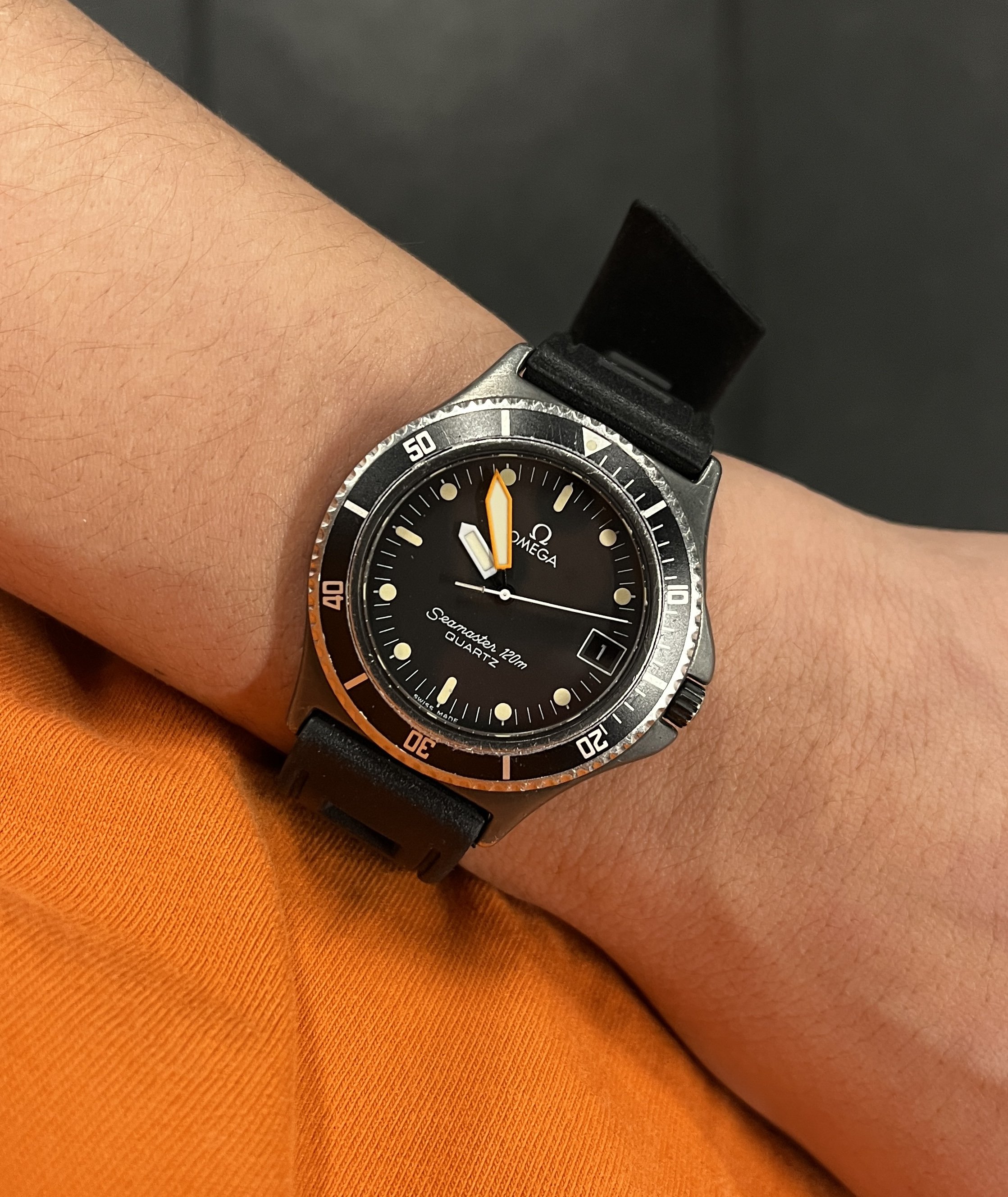 Omega Seamaster 120m Quartz 1380 Womens Diver bought recently like new. Never sold. It's the smallest and plainest of all but to find it in that impecable condition is priceless. I can't find which series is because there are no records of women watches as you know.