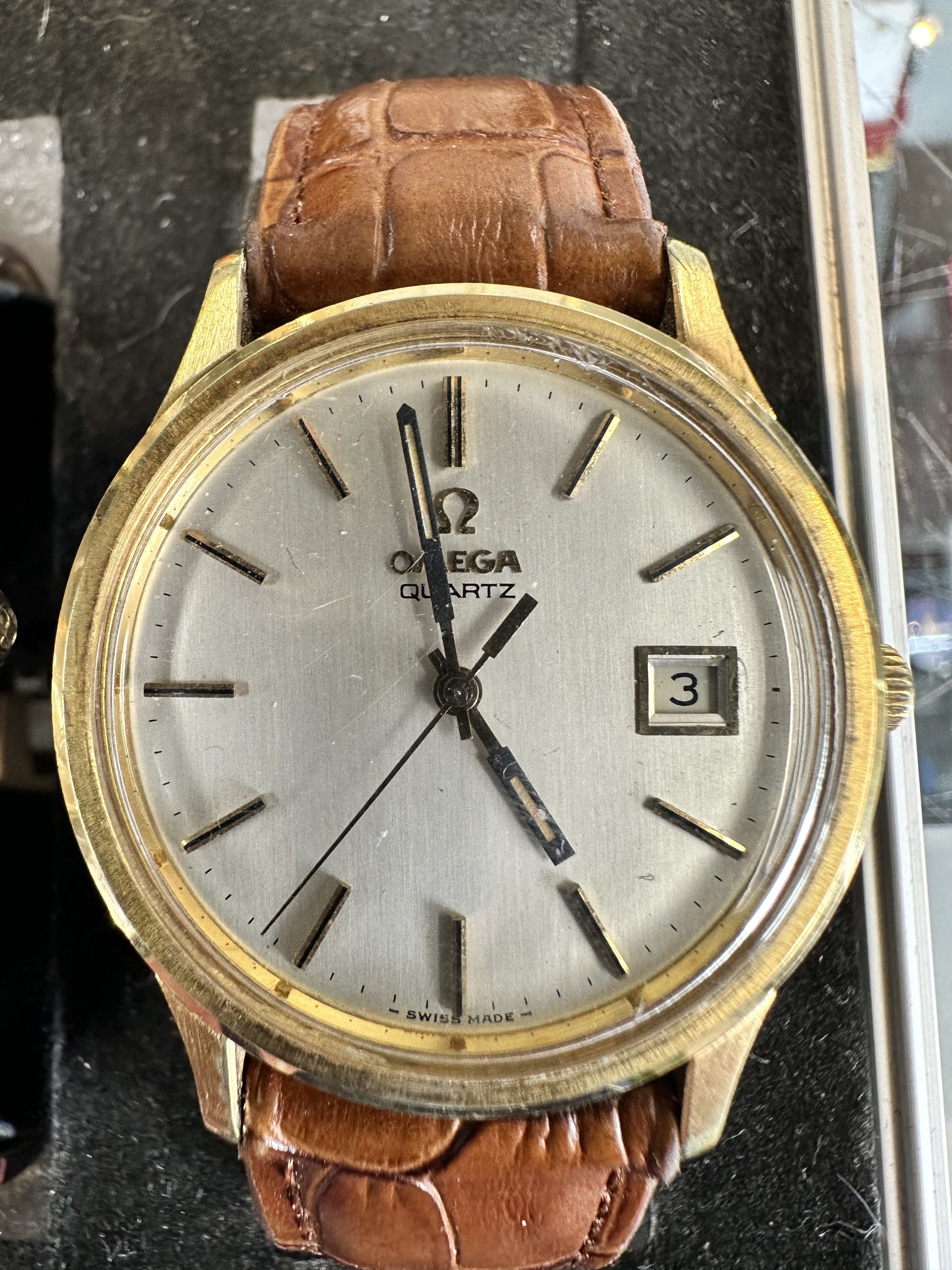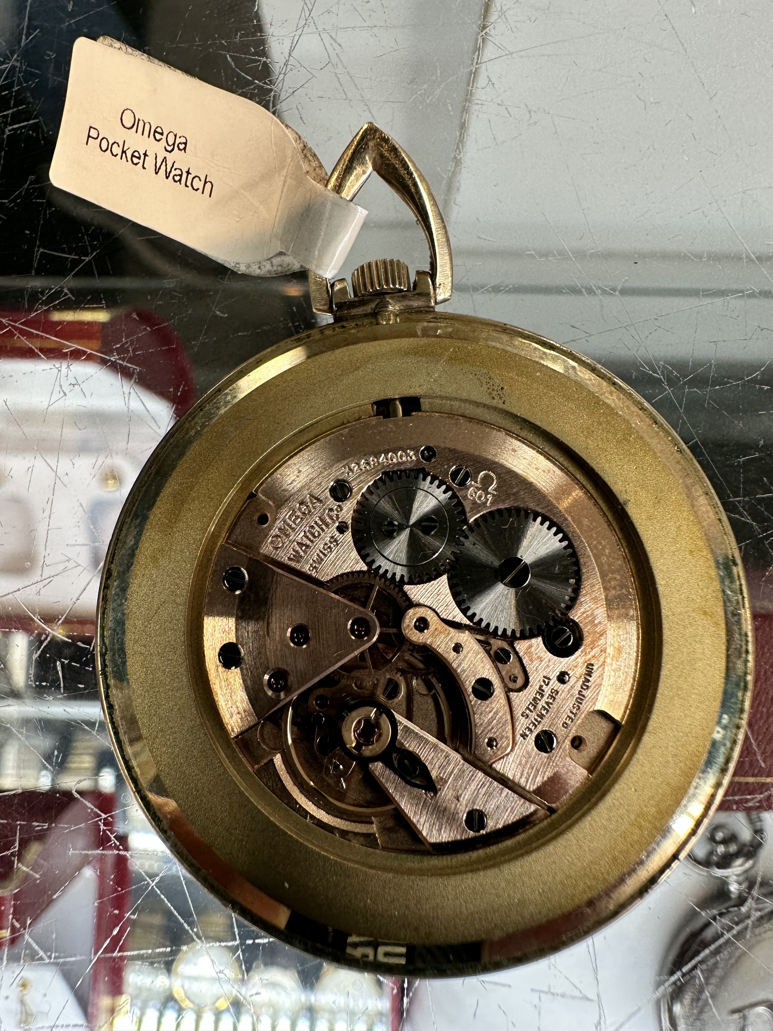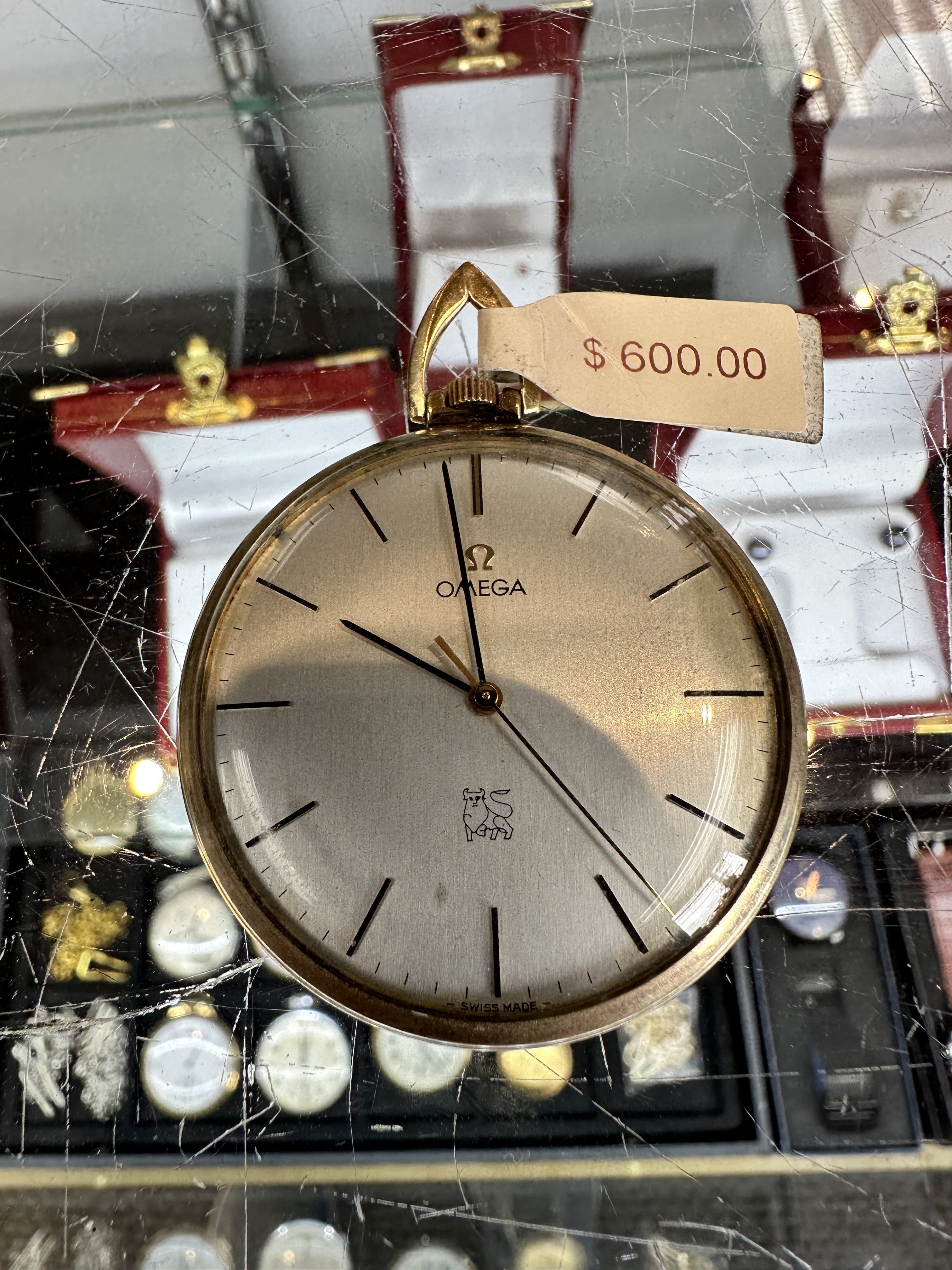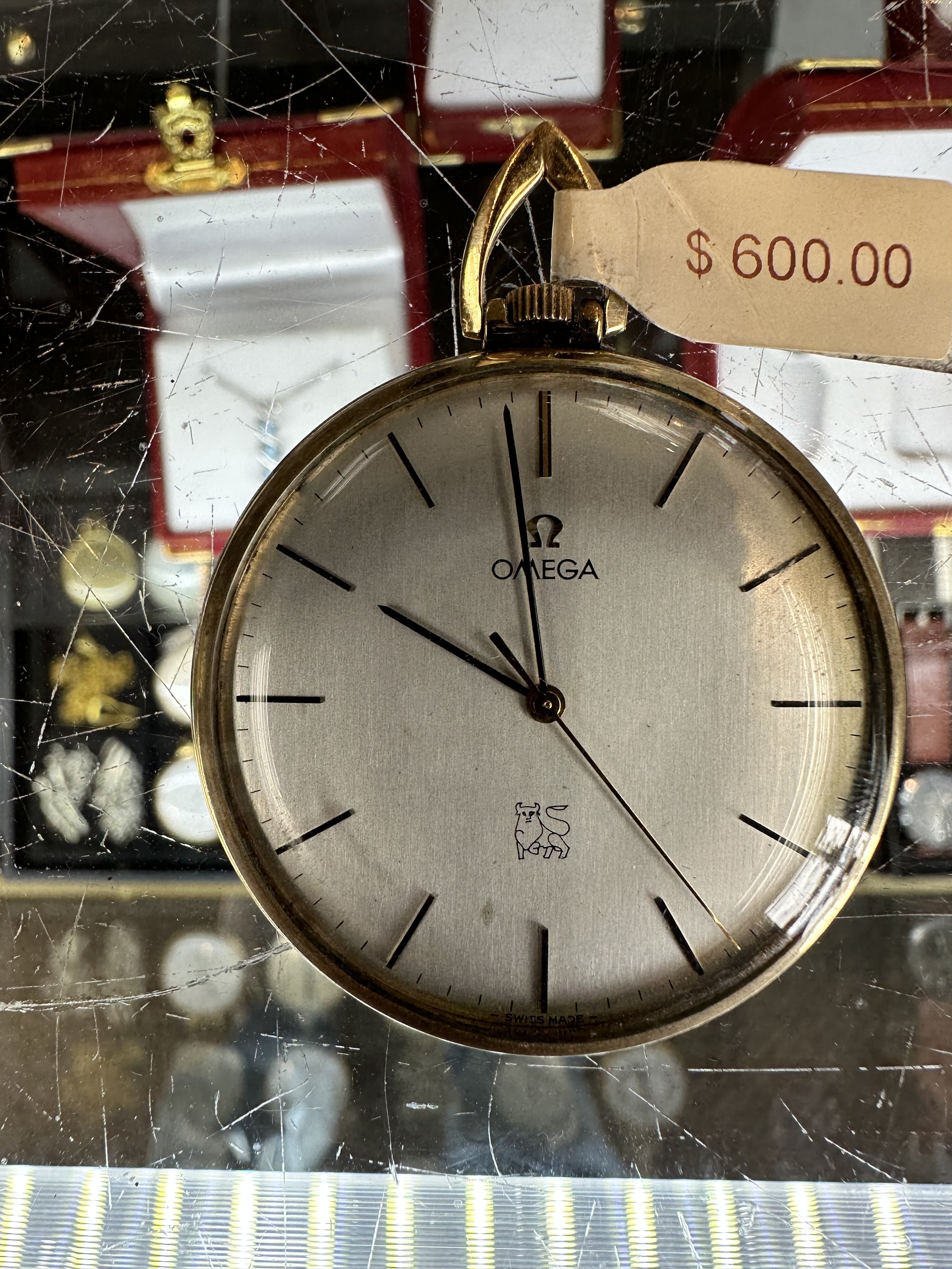 ·Took an hour or so today and scavenged around a large antique store and hit a jewelry and watch repair store to see what might be hanging around. Antique store turned up nothing. The small jewelry shop had a few interesting items. I’ll post the other non-Omega watches in another forum. I was able to find a quartz Omega and an Omega pocket watch. Pics below. Best I can tell, they were overpriced. 600.00 was the initial asking price each. I’m not really interested in buying them, but the hunt was fun.