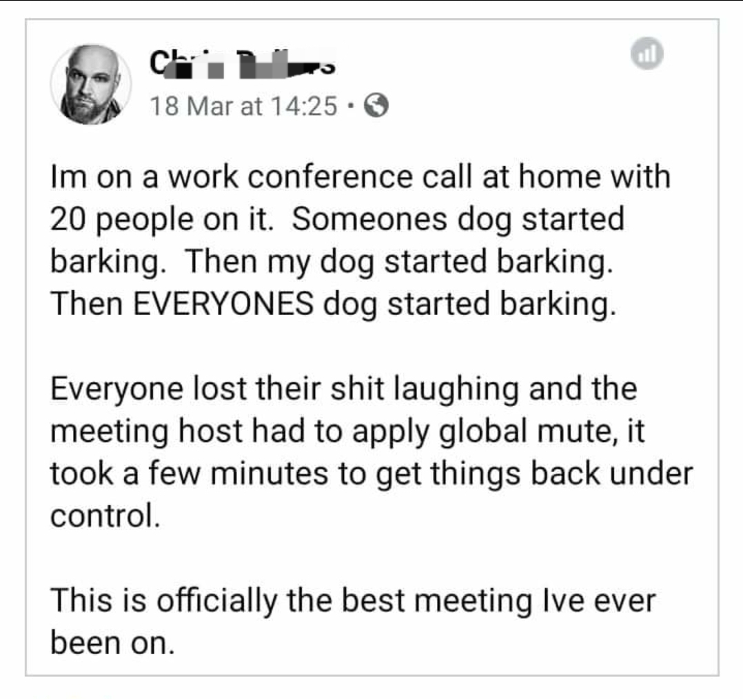 Working on the internet which includes video conferencing, talking with colleagues for hours on end, blah blah blah...