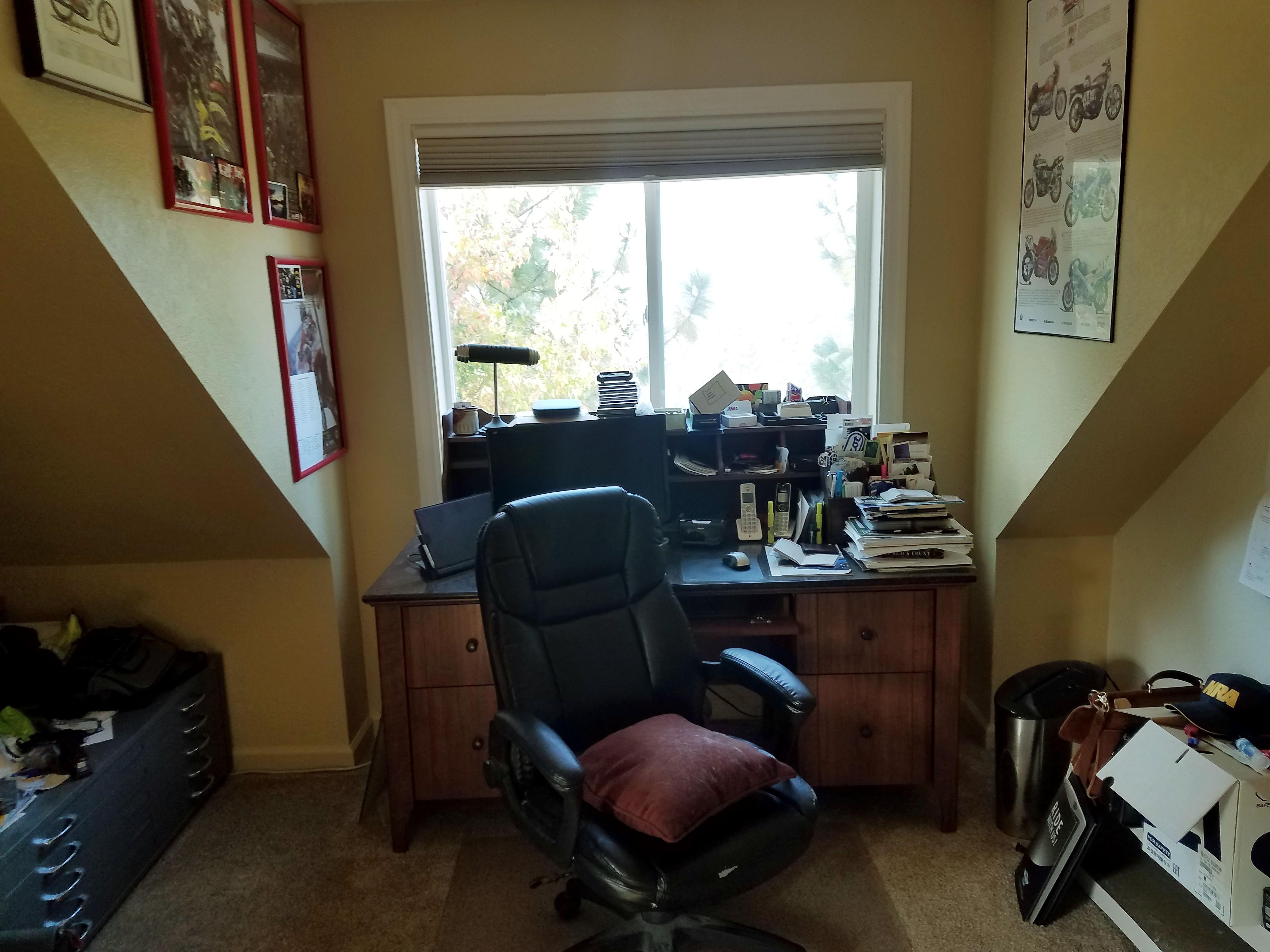 There is a large office up stairs ( hers ) but it looks like someone threw a hand grenade in the office & closed the door.