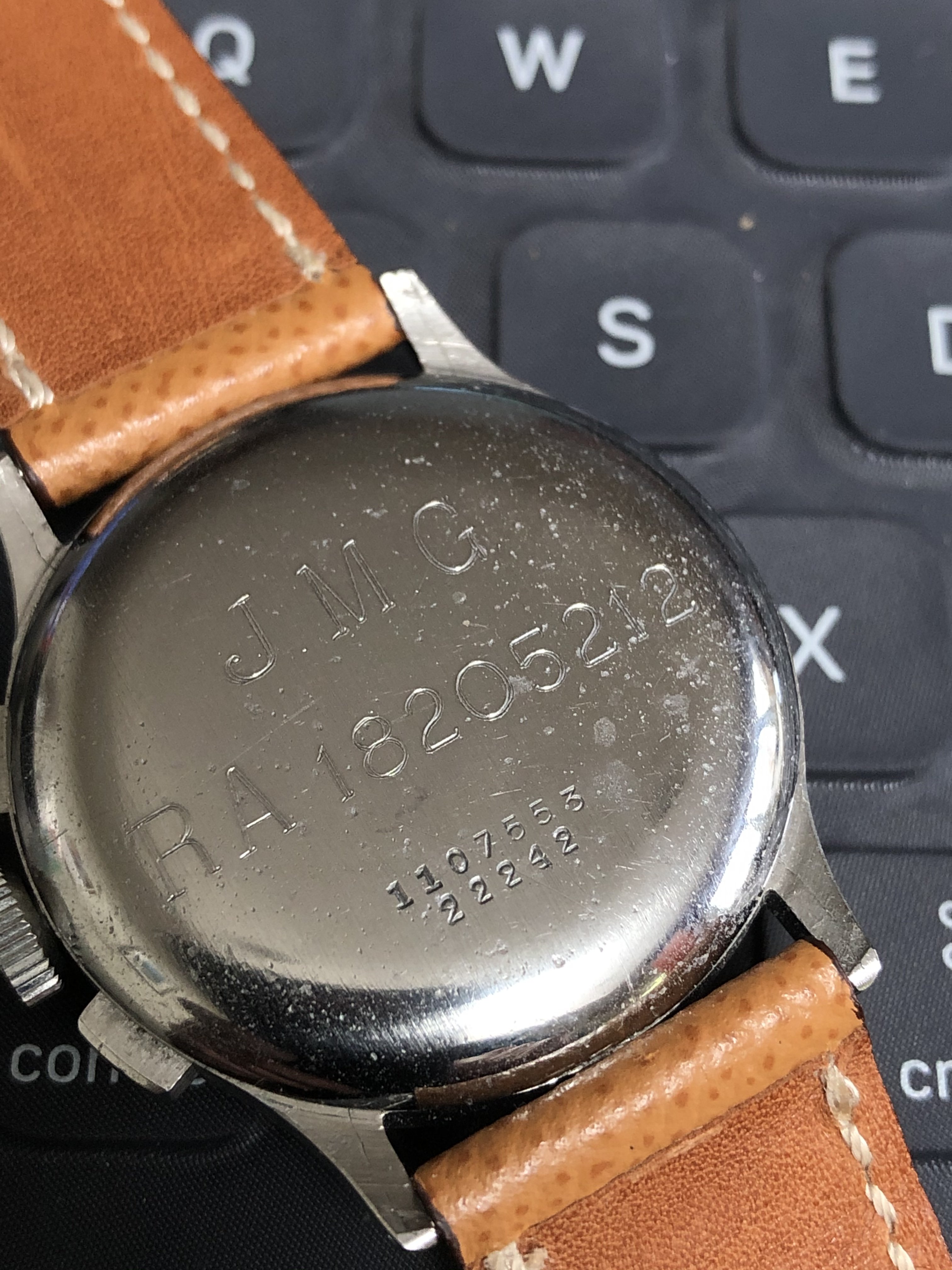 I found an interesting watch on eBay and it has some engravings on the case back. The watch is from WW2 era and the seller says it was worn during the battles so I assume the markings are military related.