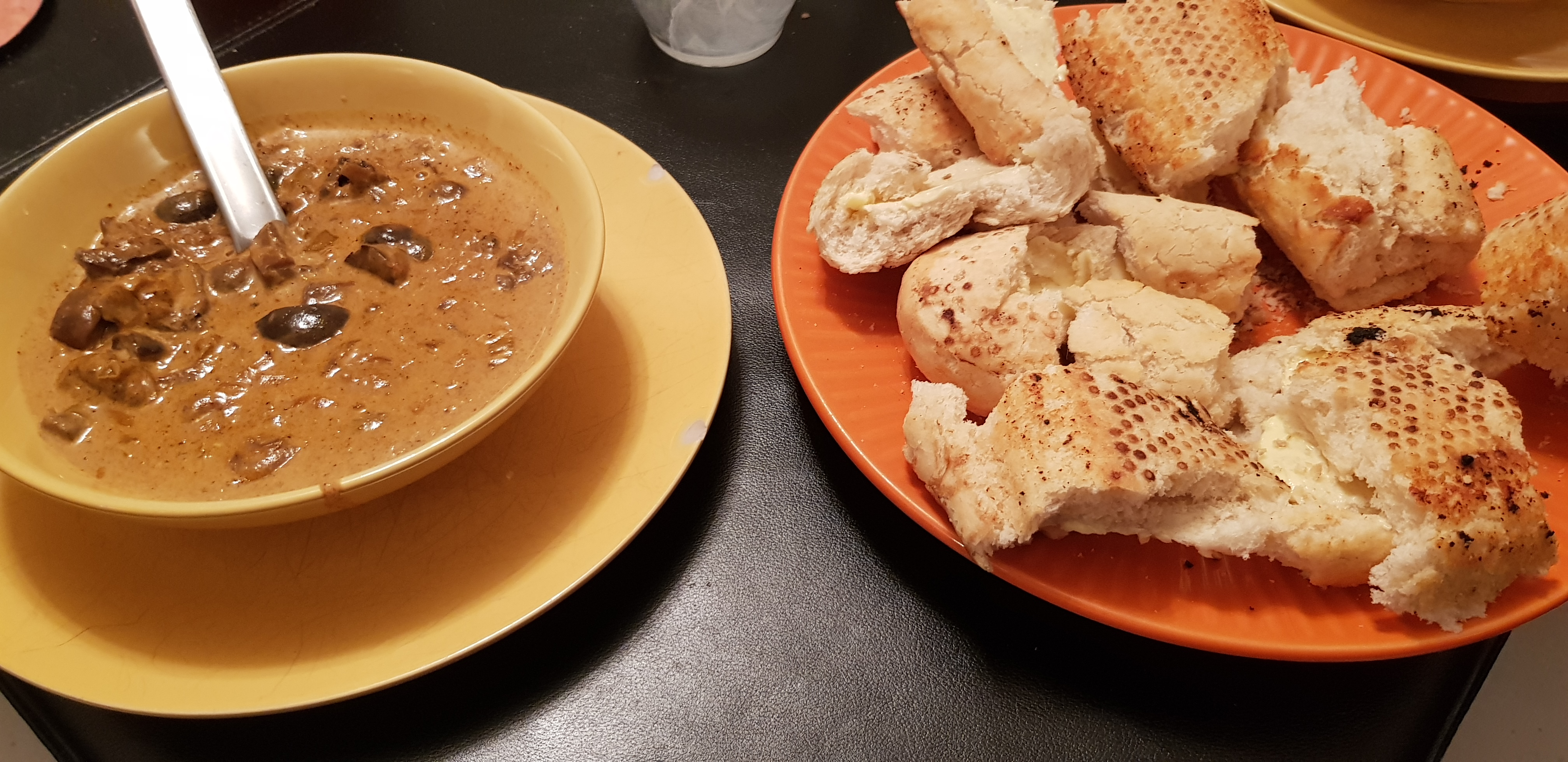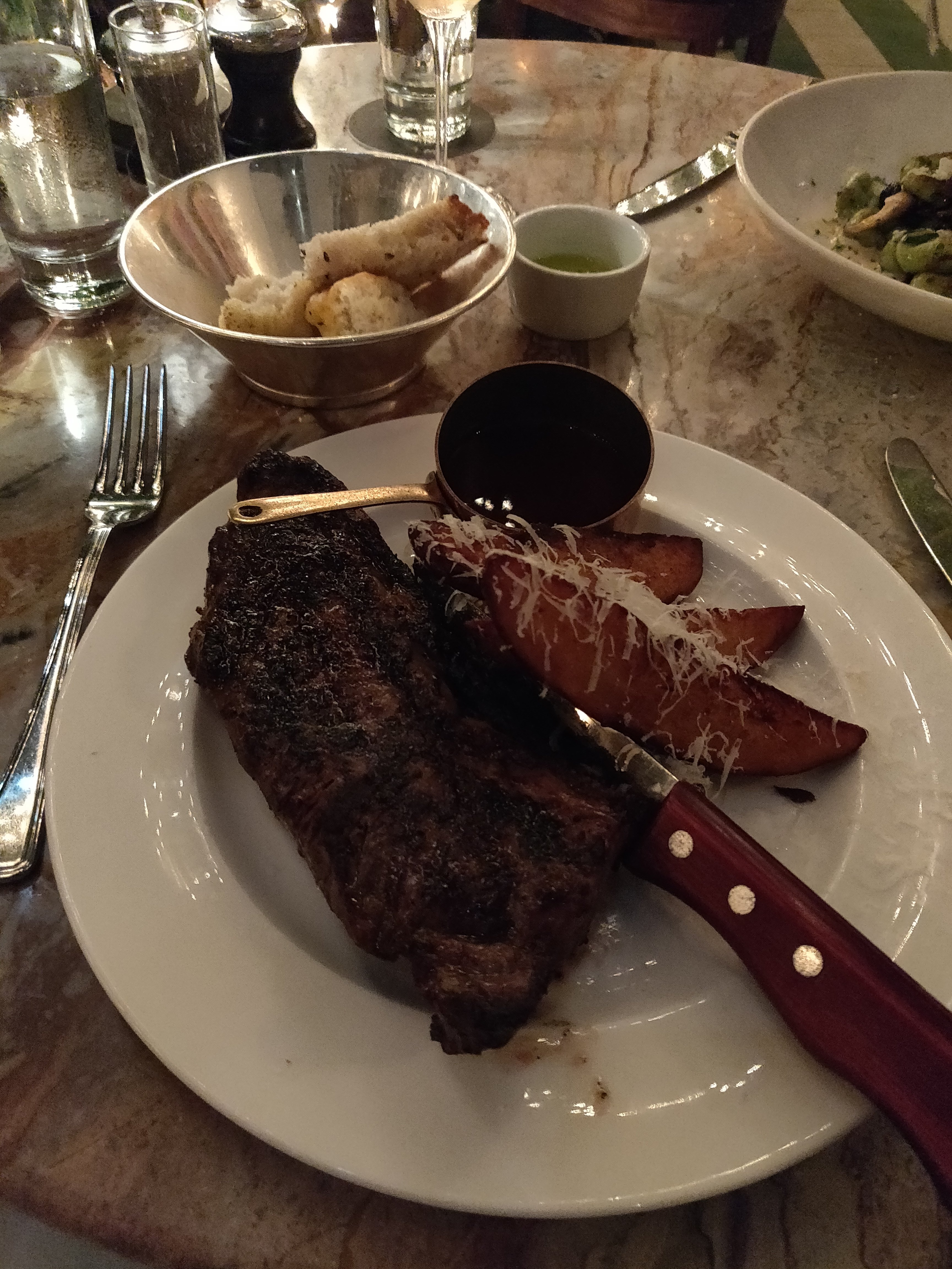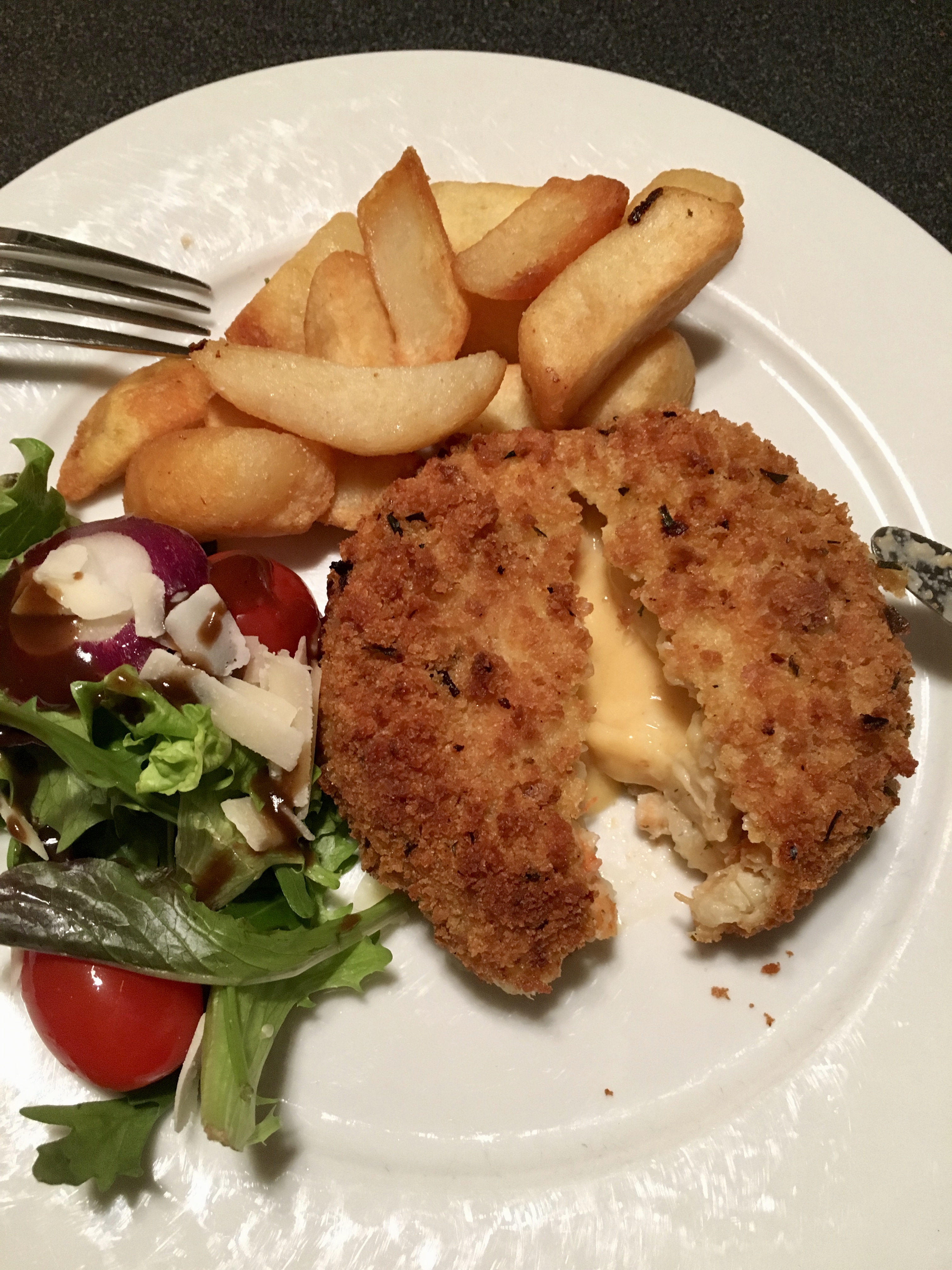 Last night's dinner: fillet steak with chips, peas, mushrooms, tomatoes, onions and red peppers washed down with champagne, followed by Christmas cake and St. Agur cheese on crackers. We slept well last night!