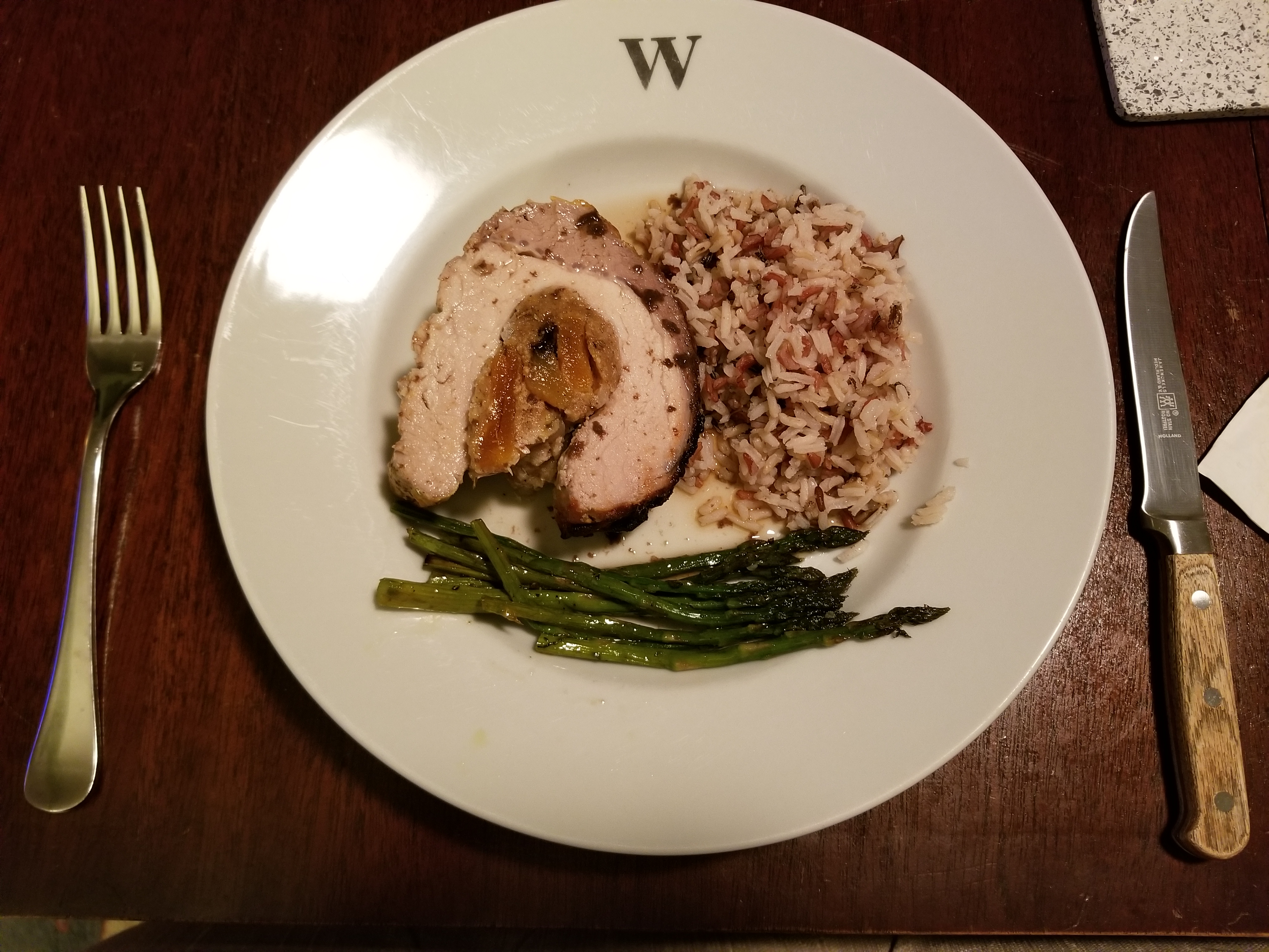 Served with wild rice and roasted asparagus.