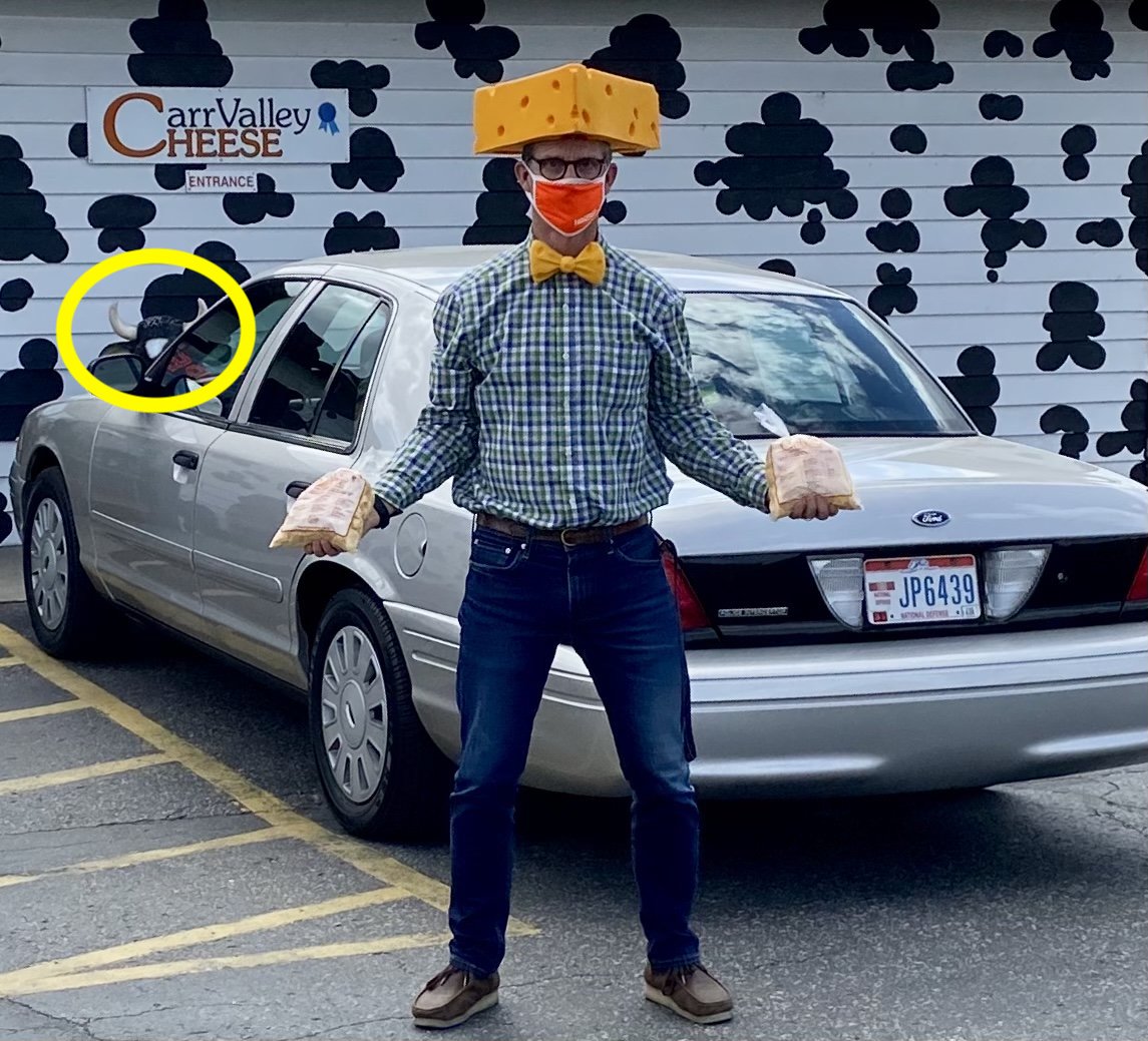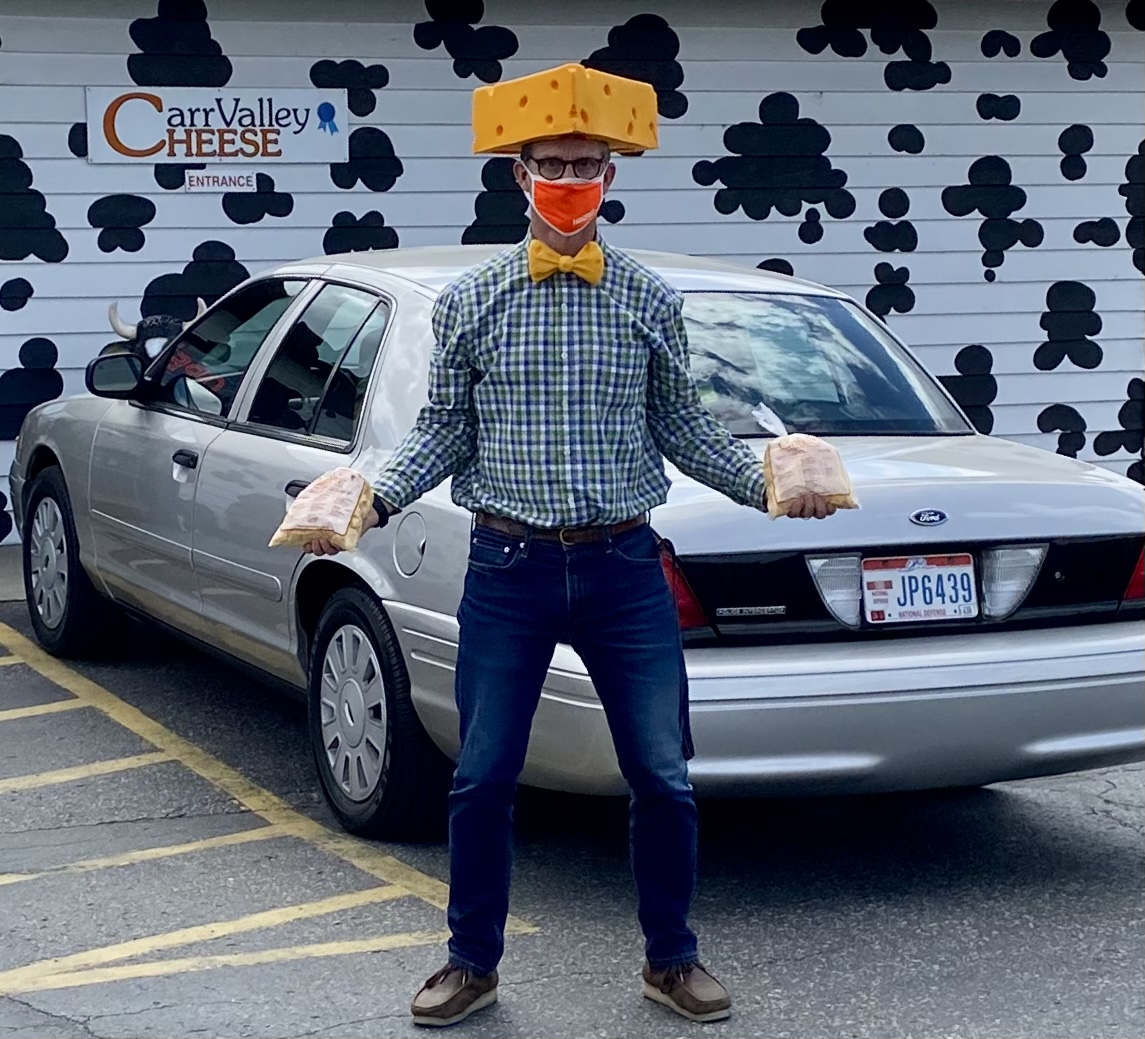 Dinner tonight consisted of Wisconsin cheese curds...I’ve been in Wisconsin for the past few days...and I wanted to buy (and consume) Wisconsin cheese curds from a dedicated Wisconsin “cheese shop”...as well as purchase (and wear) Wisconsin cheese paraphernalia from the same dedicated Wisconsin “cheese shop”...
