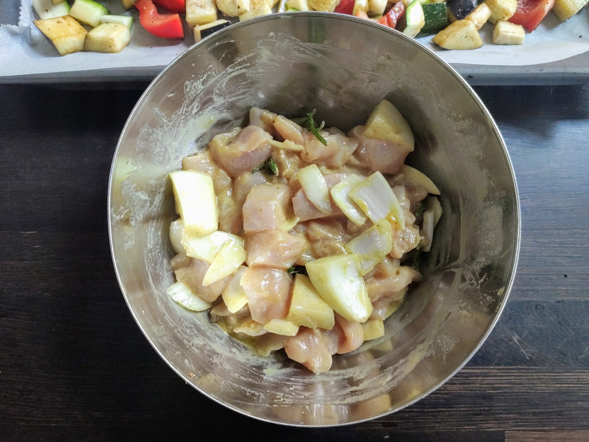Filling is the onions, mushrooms, a small amount of bacon, tarragon: