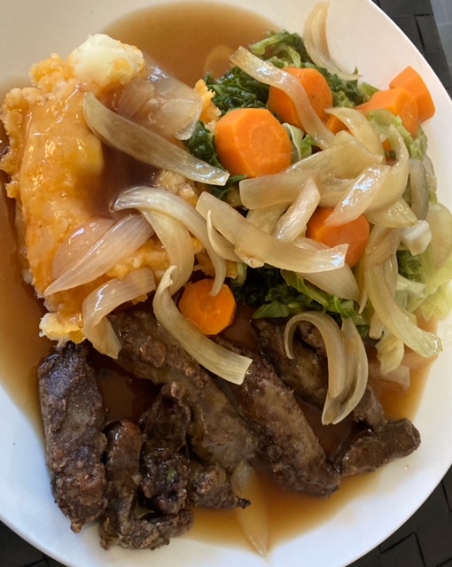 Made this last night...stuffed potato skins. Onions, potato (removed from the inside of the spuds) and some Italian sausage...