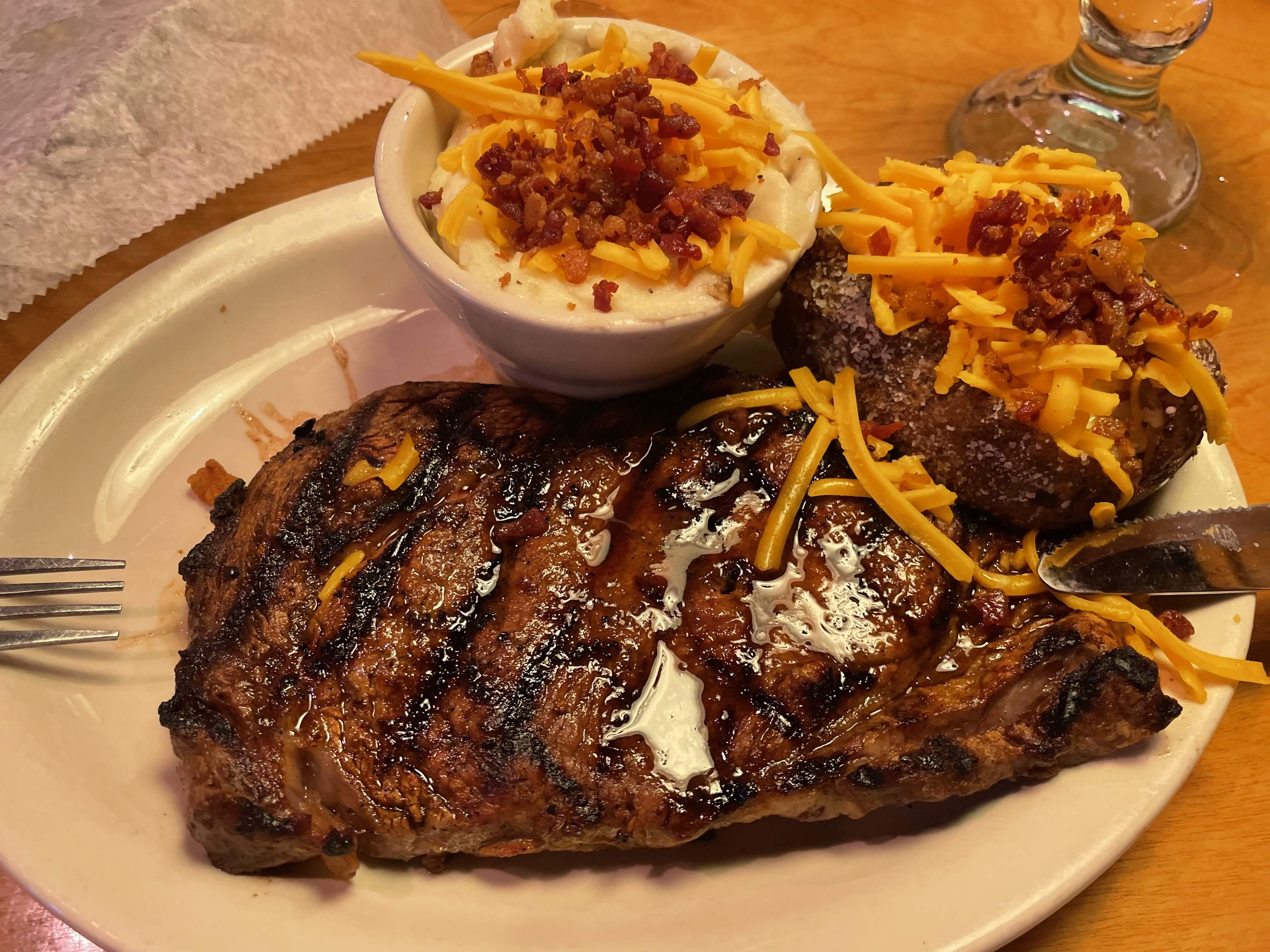 Made this last night...stuffed potato skins. Onions, potato (removed from the inside of the spuds) and some Italian sausage...