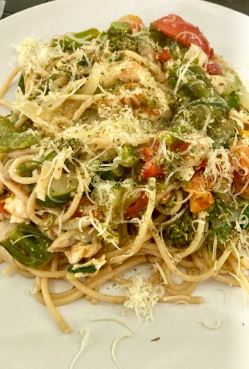 Once all that was cooked down, it was removed and cooled slightly, then some grated cheese added, plus some parsley...