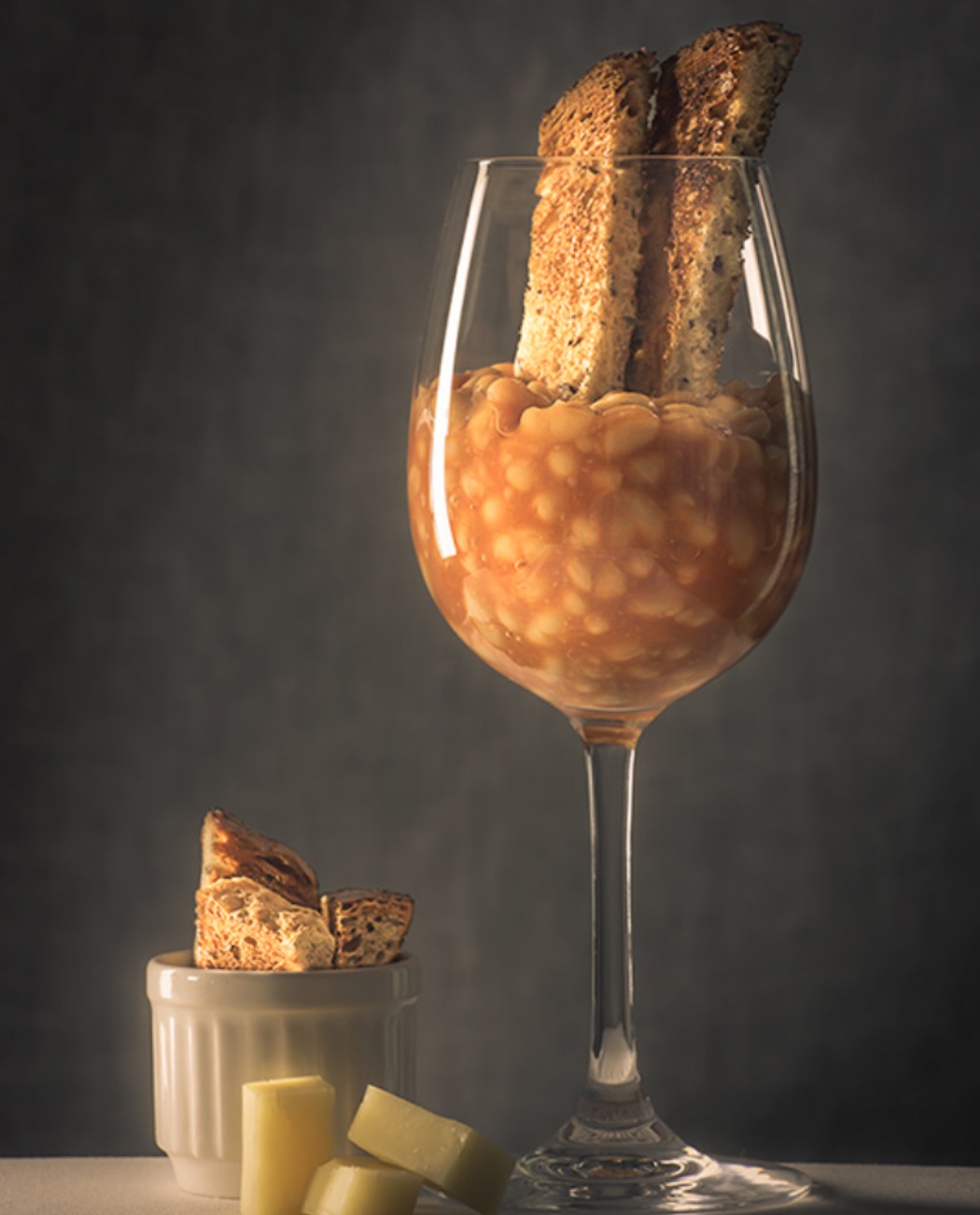 Transfer to pot with bay leaves, peppercorns, garlic, red wine, and water...