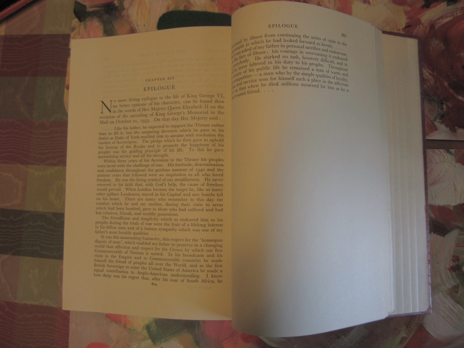In my lifetime quest to read biographies of each British monarch since William the Conqueror I am reading this biography on George VI. I am impressed with this narrative. At 805 pages it is a fairly weighty tome, a detailed account of his life and includes the background whirlwind of history of the first half of the 20th century. He was an admirable person, a royal "spare" who retained dignity and character and worked himself into an early grave. I am impressed with him.