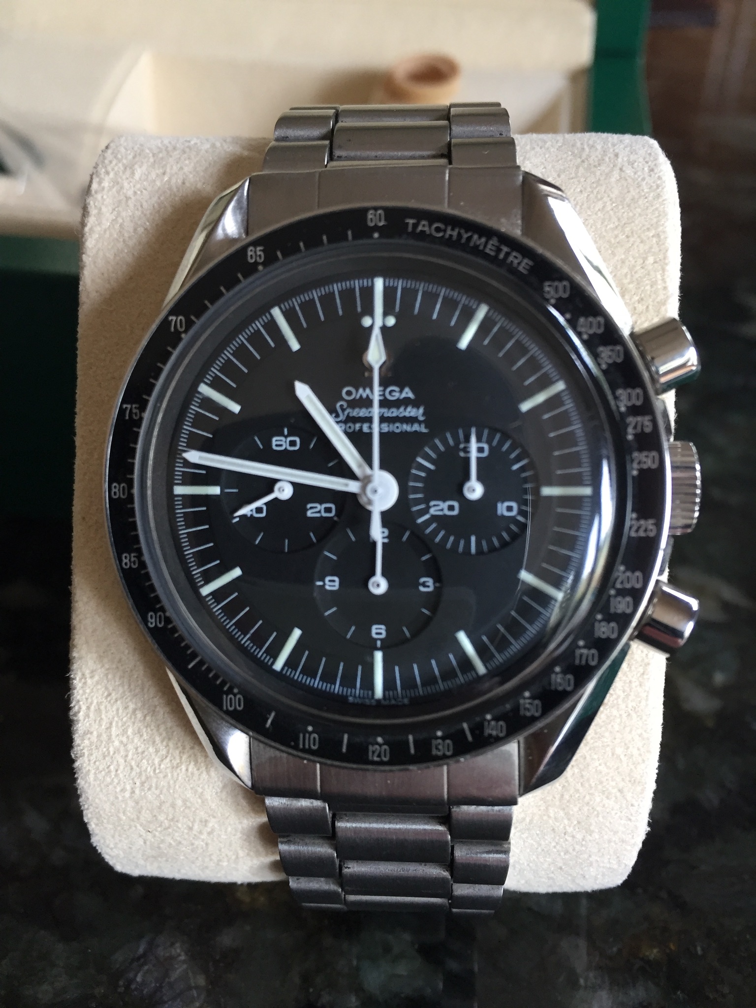 Sorry, as I am new here and late to this discussion. I have a 1965 speedmaster professional, 321 caliber. Wore it since i was about 15 (when big watches were not common - at least from what I saw). After 30 years of wear it was pretty beat up. Eventually it stopped working because moisture got in. Sent it to Omega in Biel-Bienne. for about $1200 they restored it. All replacement parts were returned to me. (Face, case, back, hands, springs, some gears...). I could have refused some of the repairs, but I thought I would like to have the watch restored to look as new and flawless as possible. As time has gone on I wondered if I made a mistake on not keeping it as original as possible in the event I wanted to sell it.