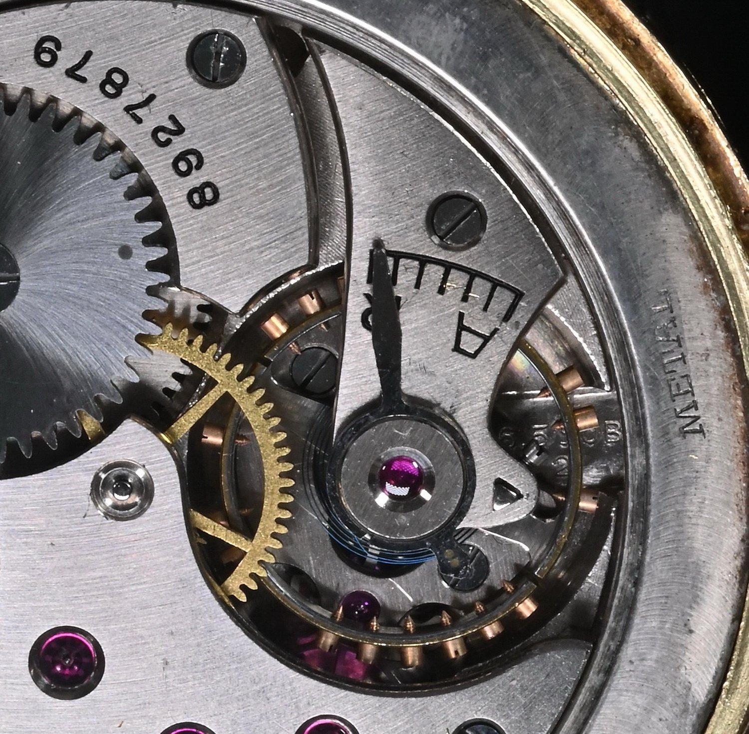You can see that the case serial number is 9791009 and the movement serial number is 8927879. Any idea which movement this is? Notice some additional numbers under the balance wheel, but I am unable to see all of them.