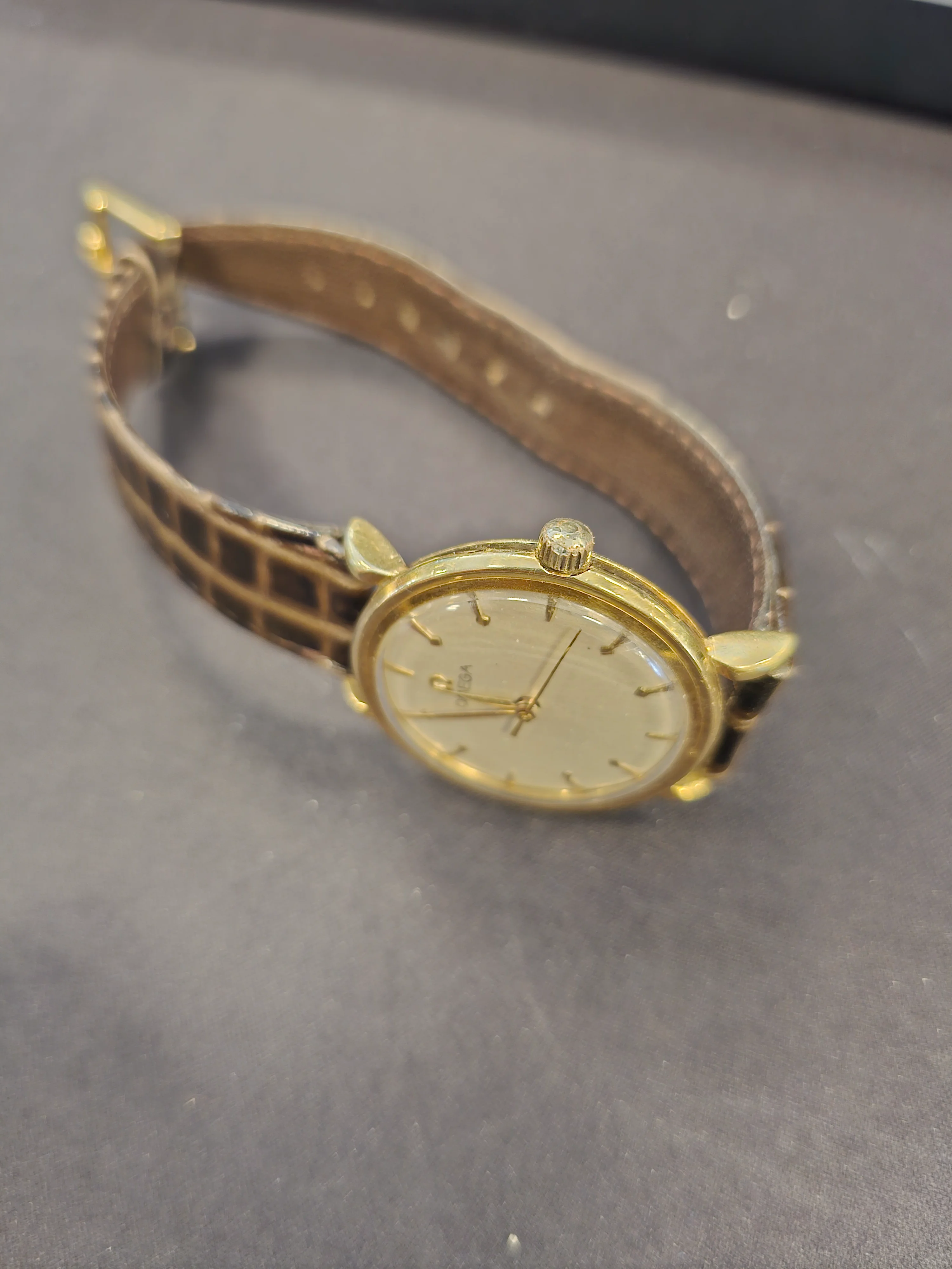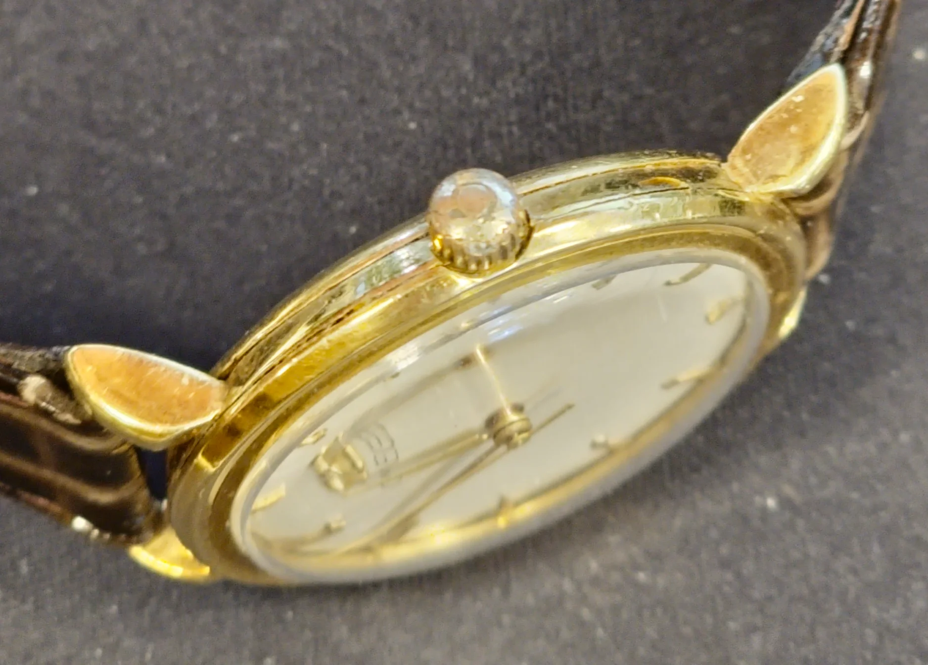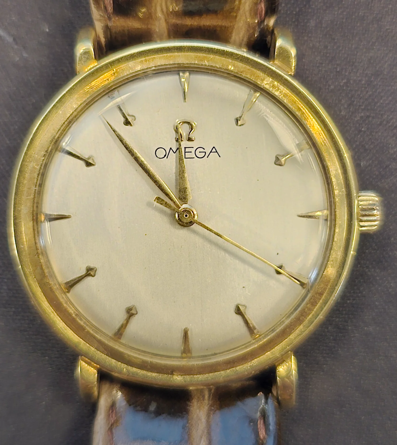 Got this one from my uncle, he got it from his father. So from my grandfather. I already know the dial is not original or at least has been restored, but the rest of the watch seems to be original. Apart from the stap. Hasn't been serviced in over 40 years! Also the dial "restoration" was done before that. At the moment it's being serviced, but I was able to get some pictures from the inside. According to internet, this should be a watch from around 1949. Looks to be gold, at least the cover on the inside has markings and so does 1 of the lugs. I'm curious if some of you know more about this watch! How rare is it? What do you think about the state it's in?
