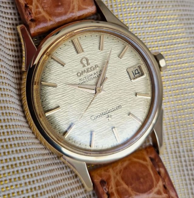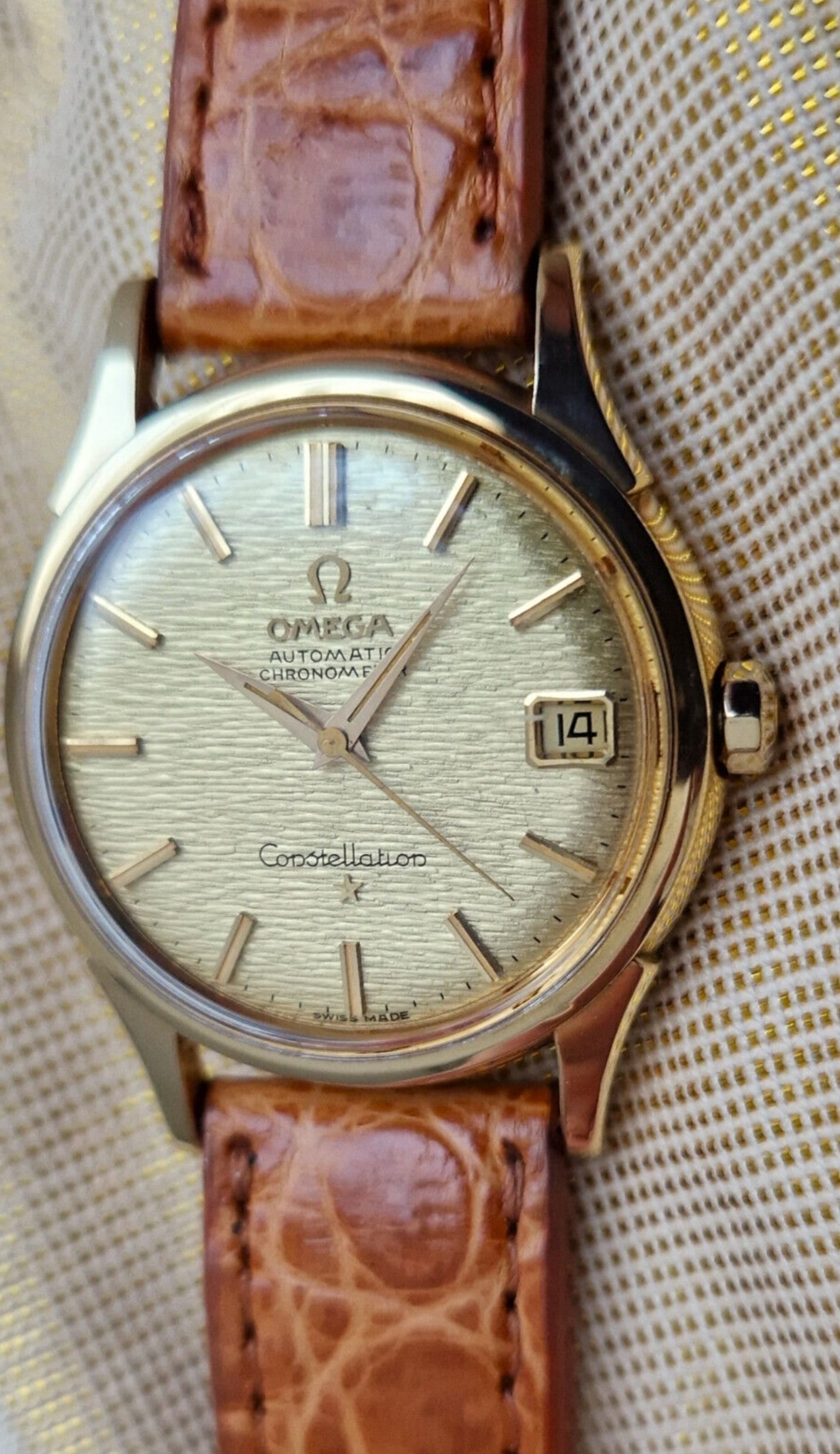 Original Omega-signed golden 'tree bark' style dial in excellent condition overall; few faint signs of aging.