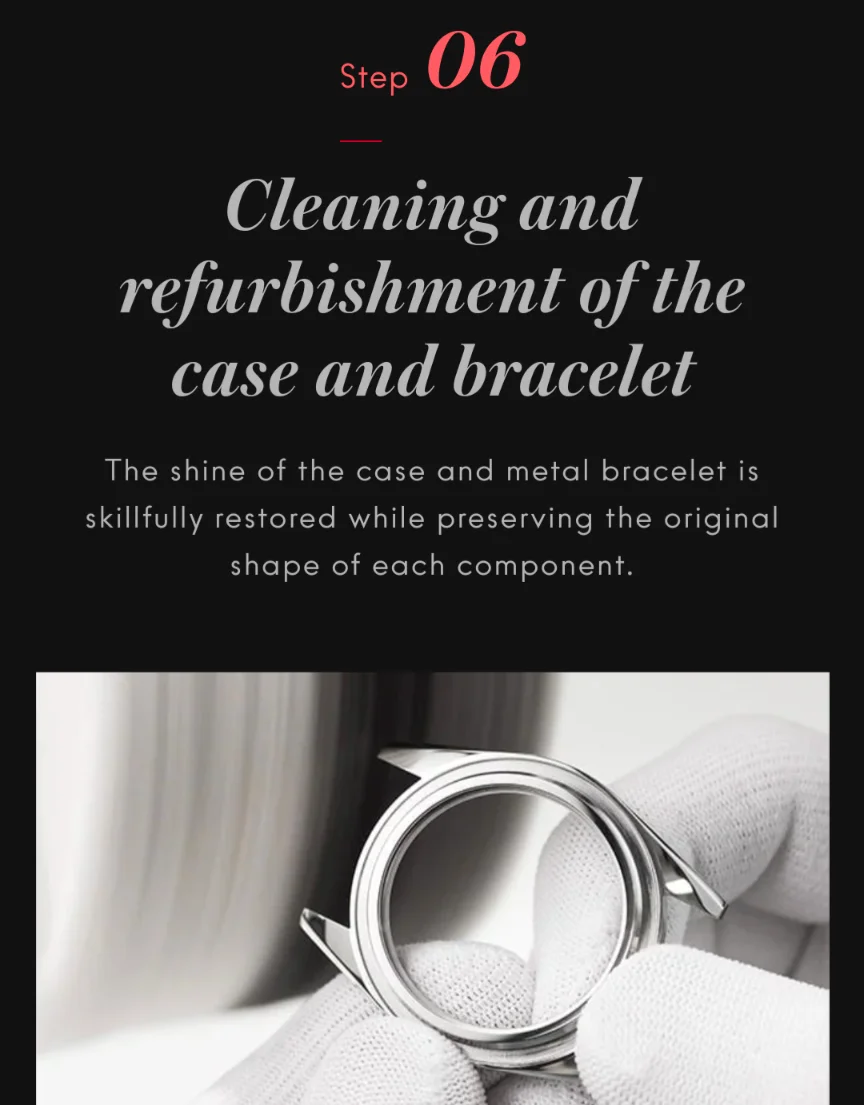 As obvious as it seems, the watch first underwent a full service in Biel, for which I paid 900 CHF as it was from the year 2012, and the scratch near the lug (from strap change) was not polished. The watch received a full 24-month warranty afterwards, which I had to use due to water ingress, hence the second service. I understand that during this warranty service, they will not polish the watch. But they haven't polished the watch after the first service. So maybe the "step 6" applies only to heavily scratched watches.