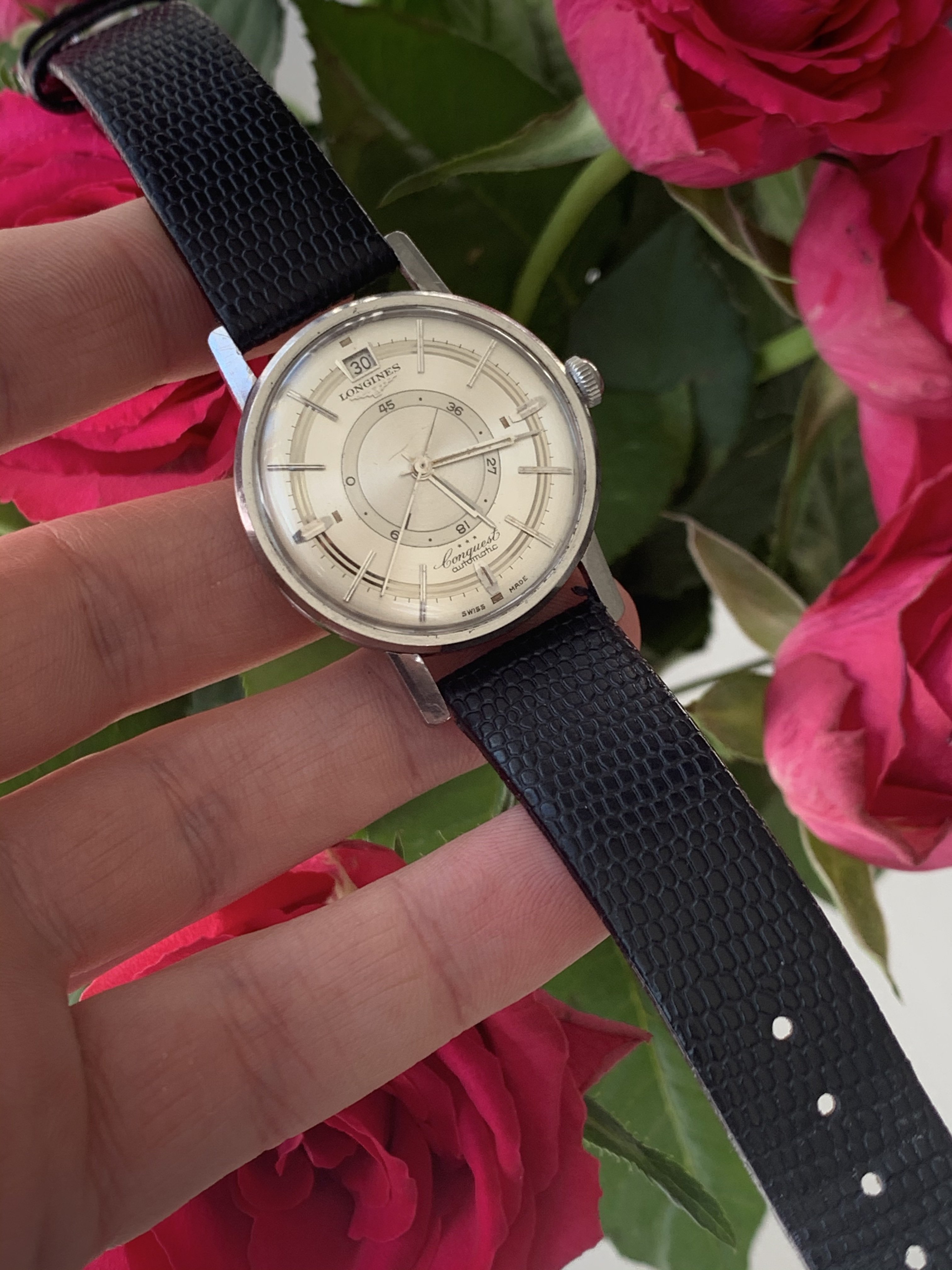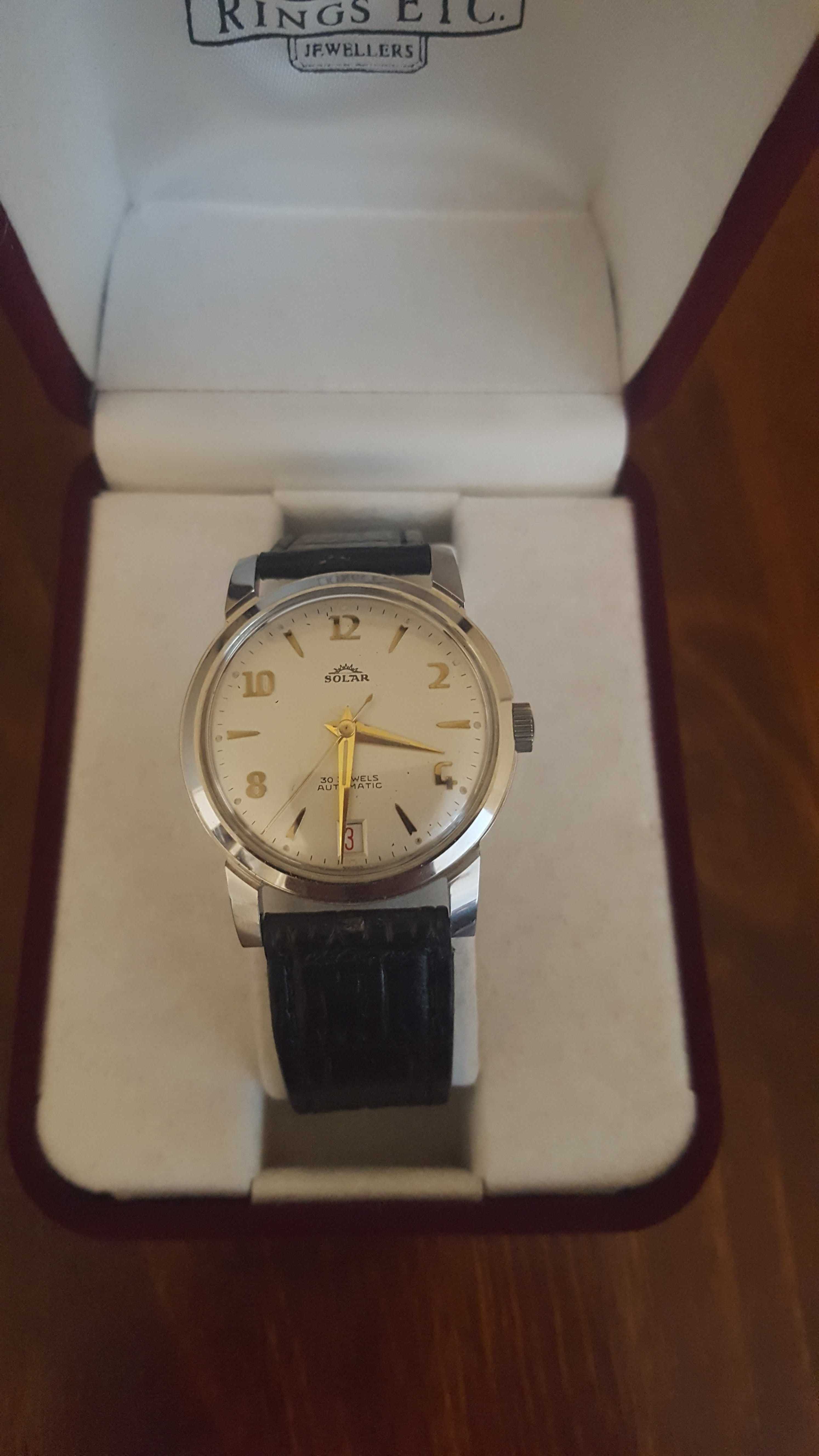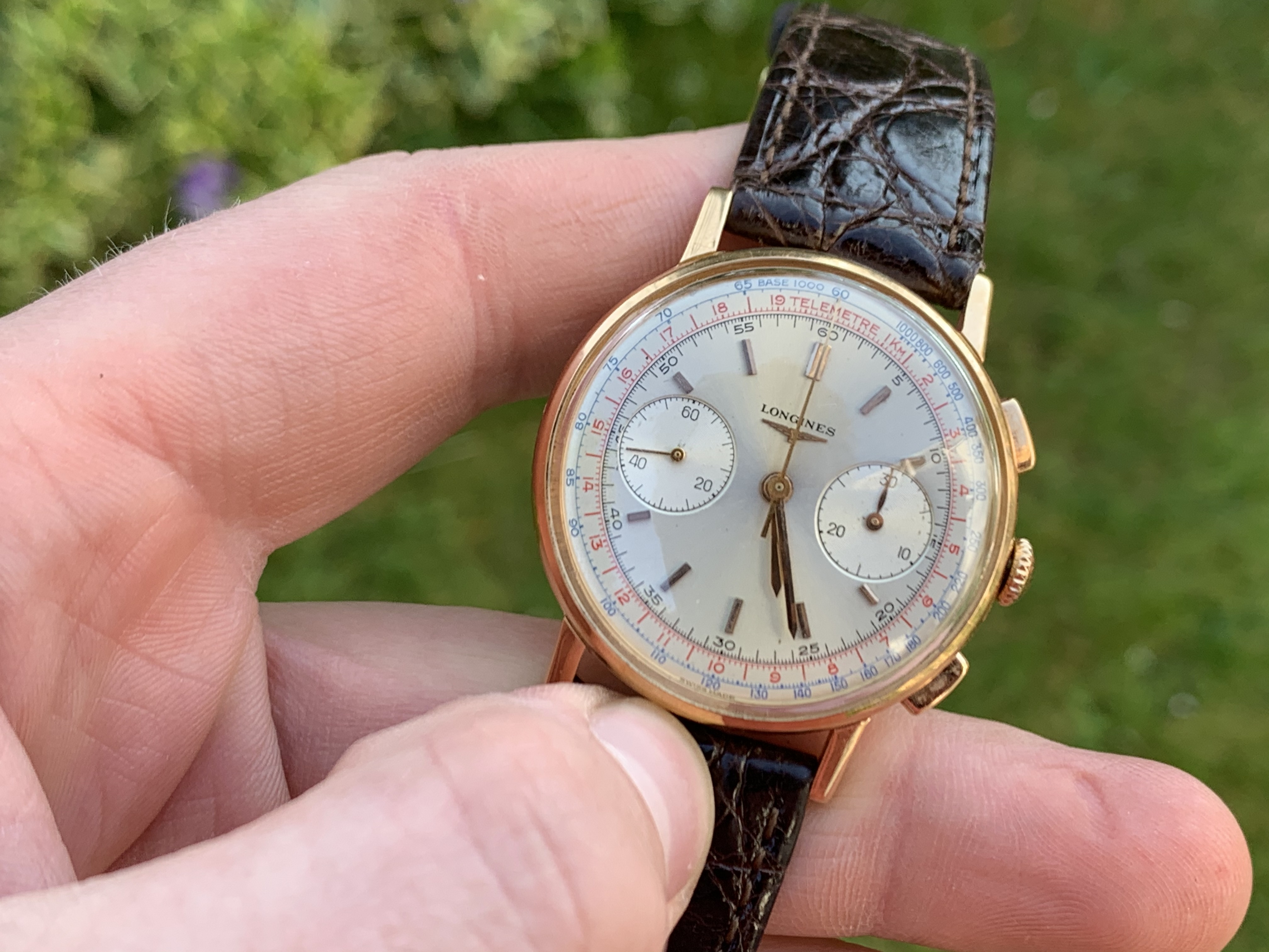Hard to imagine this used to be a white(ish) dial. Absolutely no idea what happened with it, but somehow it aged in a way that the inner circle appears either darker or lighter than the outside ring, depending on the light. I‘m mesmerized, prize was right, 35mm is a nice size for a 50s bumper - good end to the year.