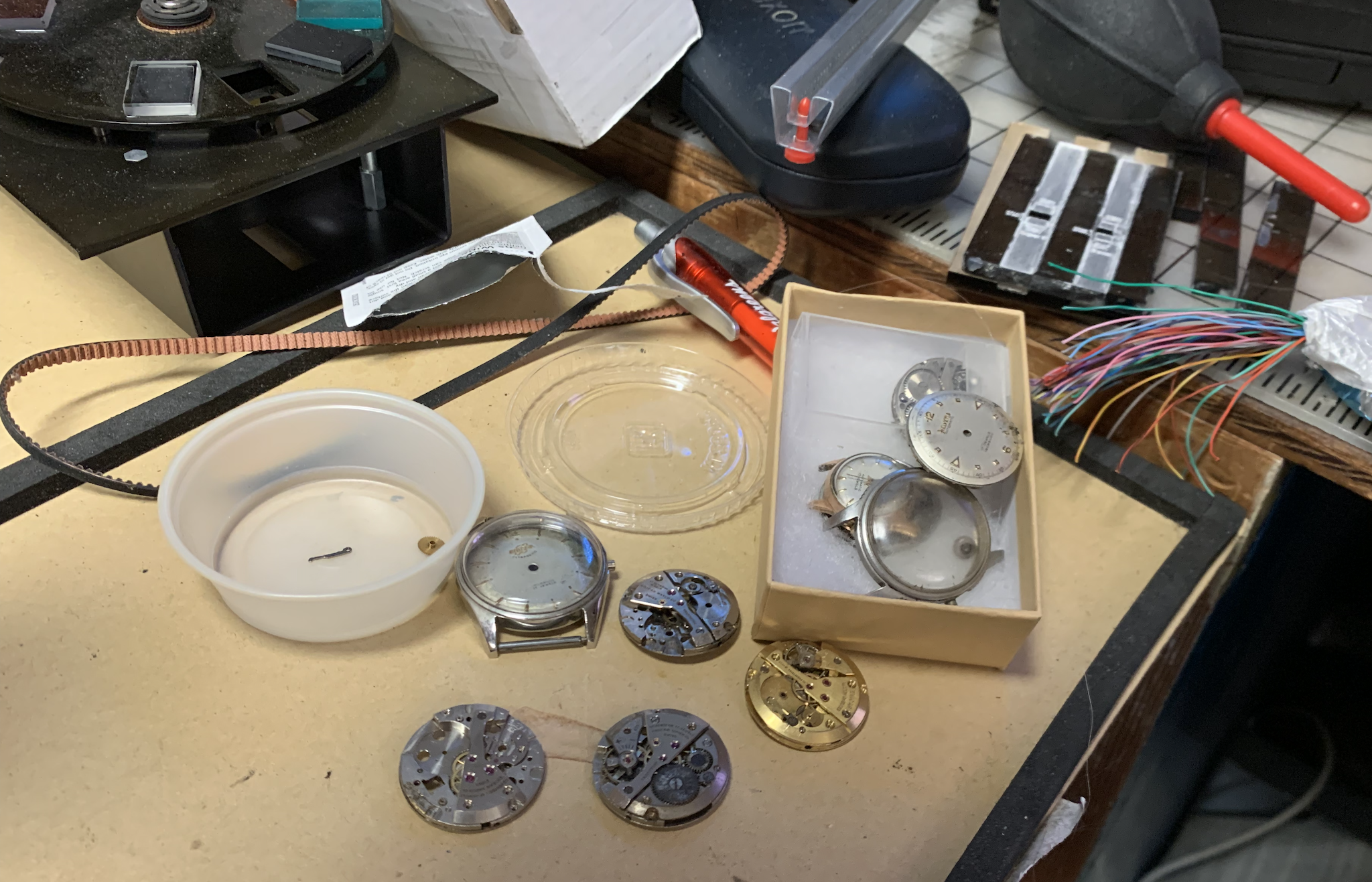 Of course the cycle is endless when it comes to parts watches. There was a better dial example with hands, So that should be arriving later in the week. Why fix one movement when one can fix two for twice the price. Two of the movements do have balance wheels, only one is incabloc. Untill I part these out will I know how much further down the rabbit hole I need to go. At least I now know the 1010 caliber fits the dial feet on the old dial.