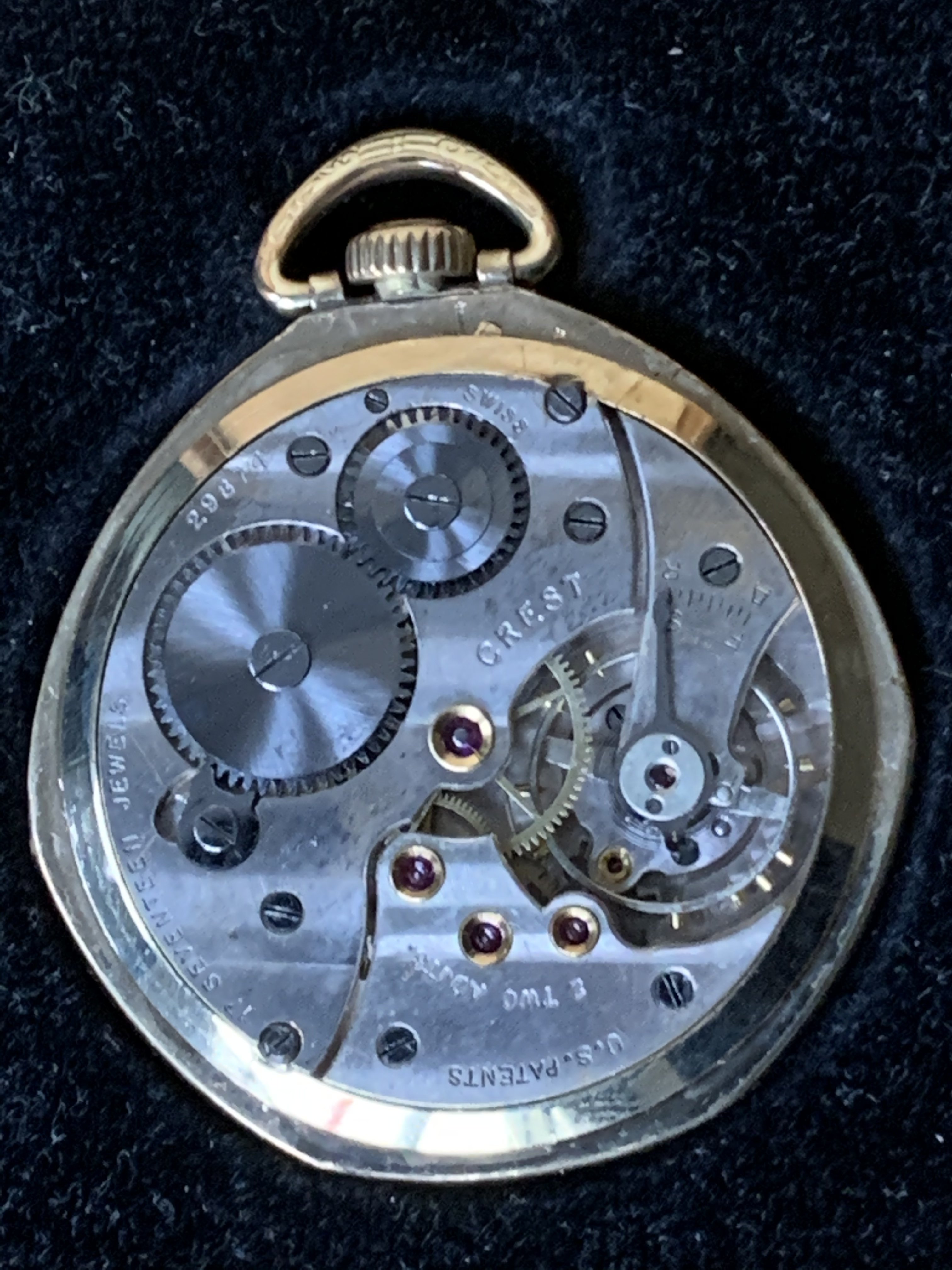 · 17 Jewel mvmt also marked “U.S. Patents”, “Swiss”, “2 TWO Adjts”, and of course, “Crest”