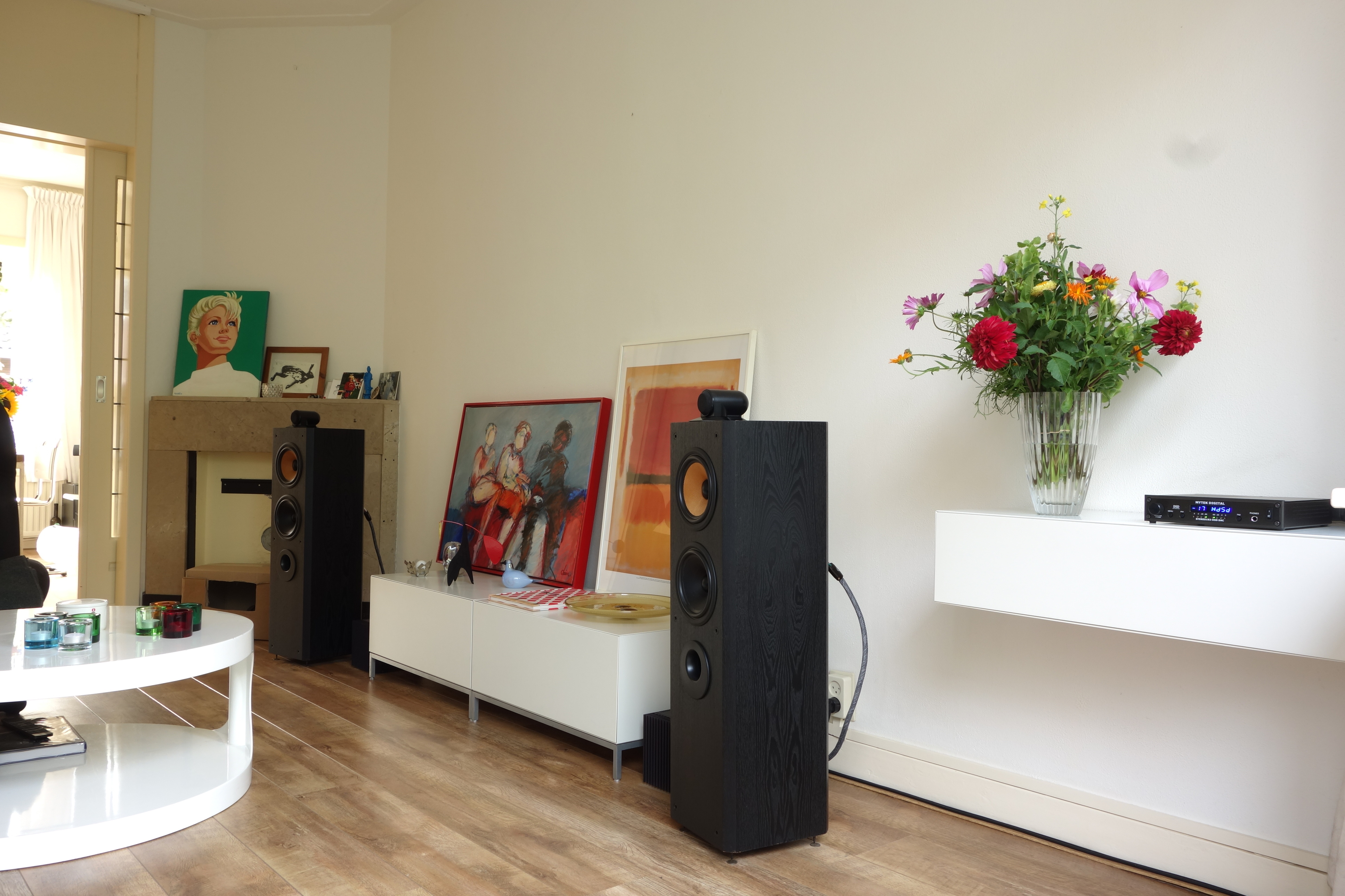 The two woofers were driven by an integrated 250 watt amp built into each speaker - they weighed 92 pounds each, so not lightweight. The idea was to use direct and reflected sound off the back wall to give a better reproduction of live music. The problem was that to work properly they had to be much further out from the wall than I was able to practically have them, and my wife even hated how far out they are in the photo above.