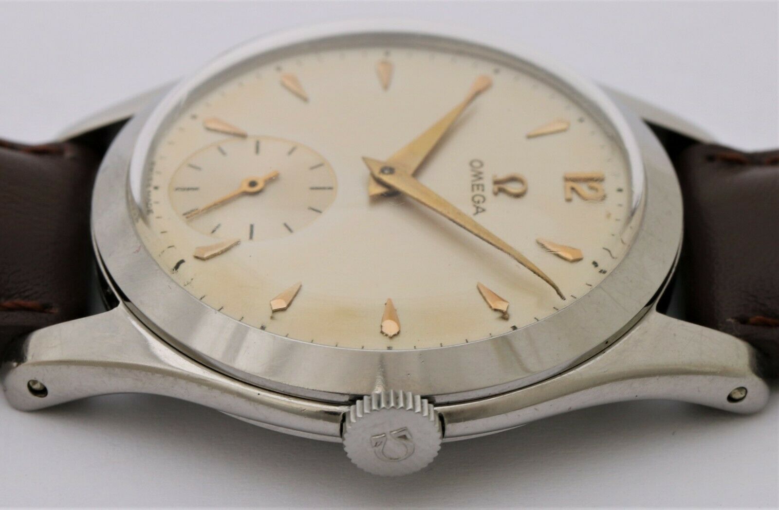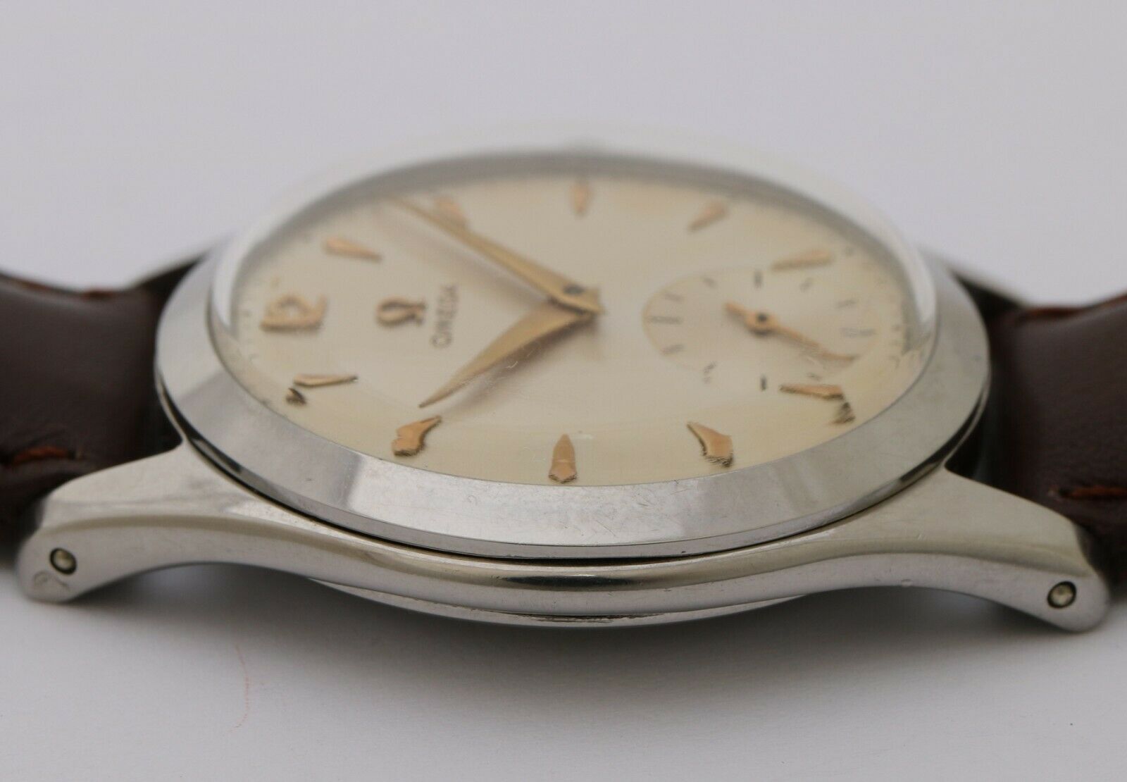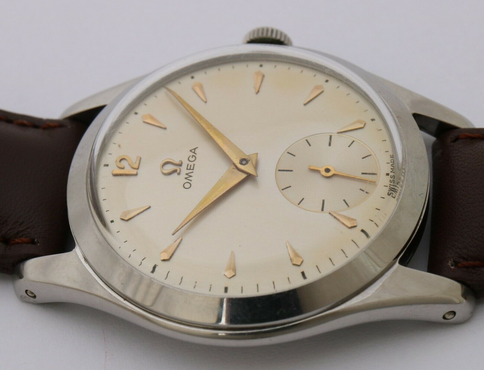 I have doubts about the dial: indexes and writings look too good to me for its age, but actually they look very well repainted, if this is the case. Moreover I don't know if the yellowish of the dial is a patina or something else, it looks very uniform to me.