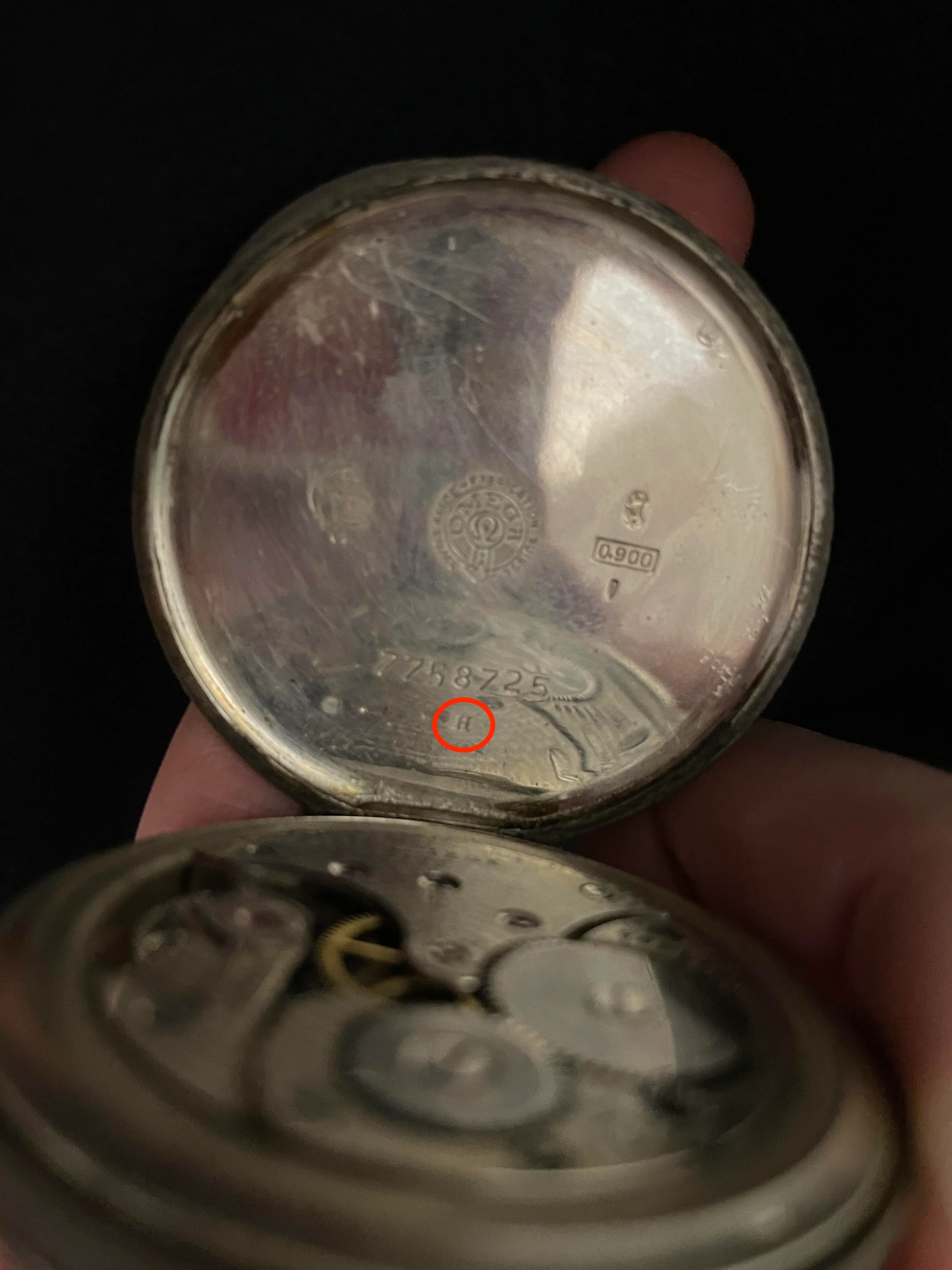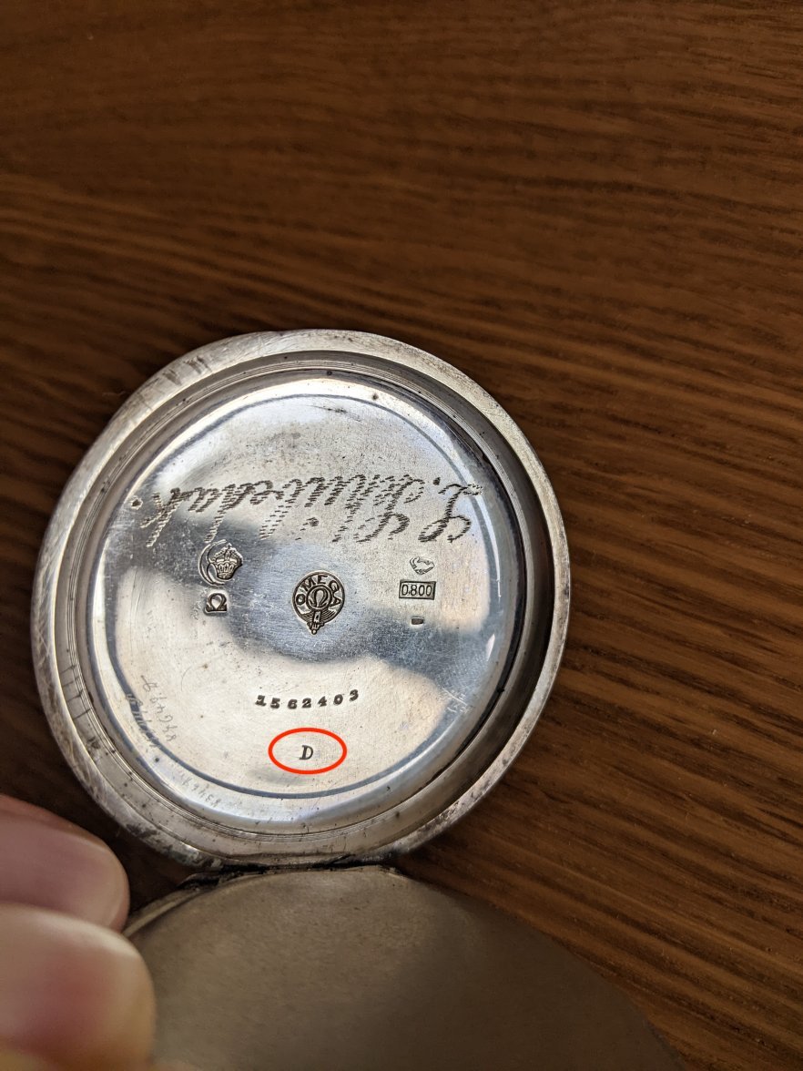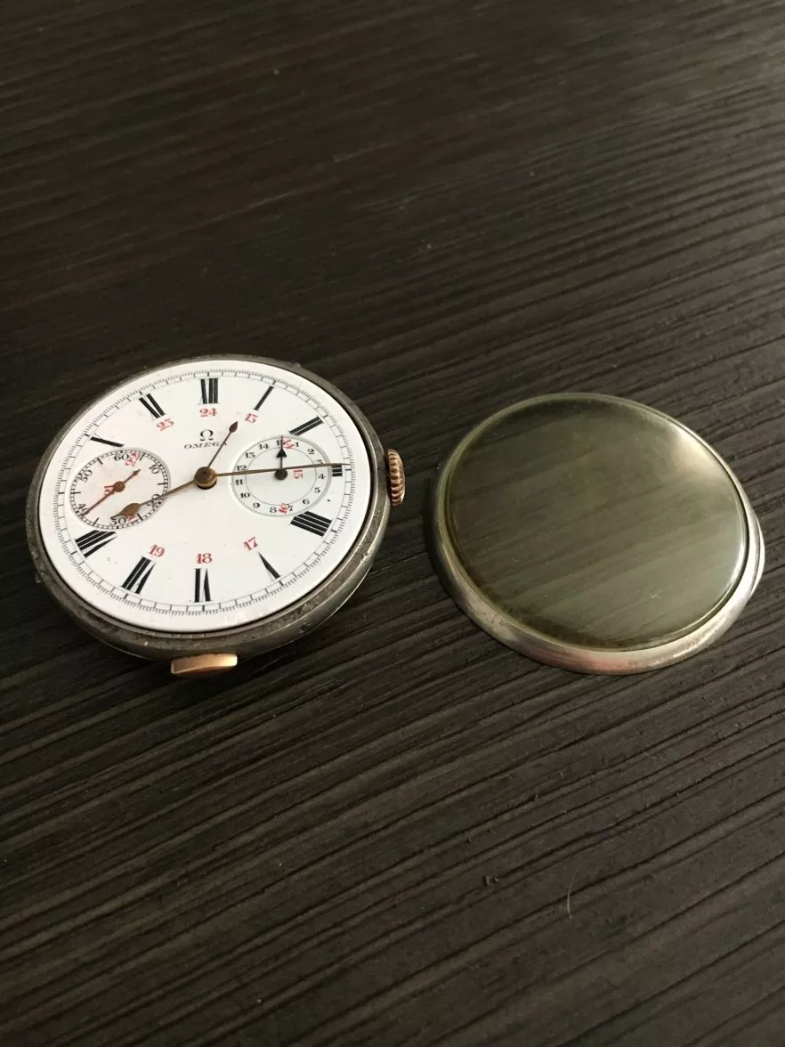 ·I've included pictures of other examples on vintage Omegas for reference. This is a c. 1915 - 1923 Omega chronograph, the same type as Lawrence of Arabia's. More info here. My best guess would be something about the metal content, or maybe service history given the watch's date of manufacture (~1917)? Does anyone know?