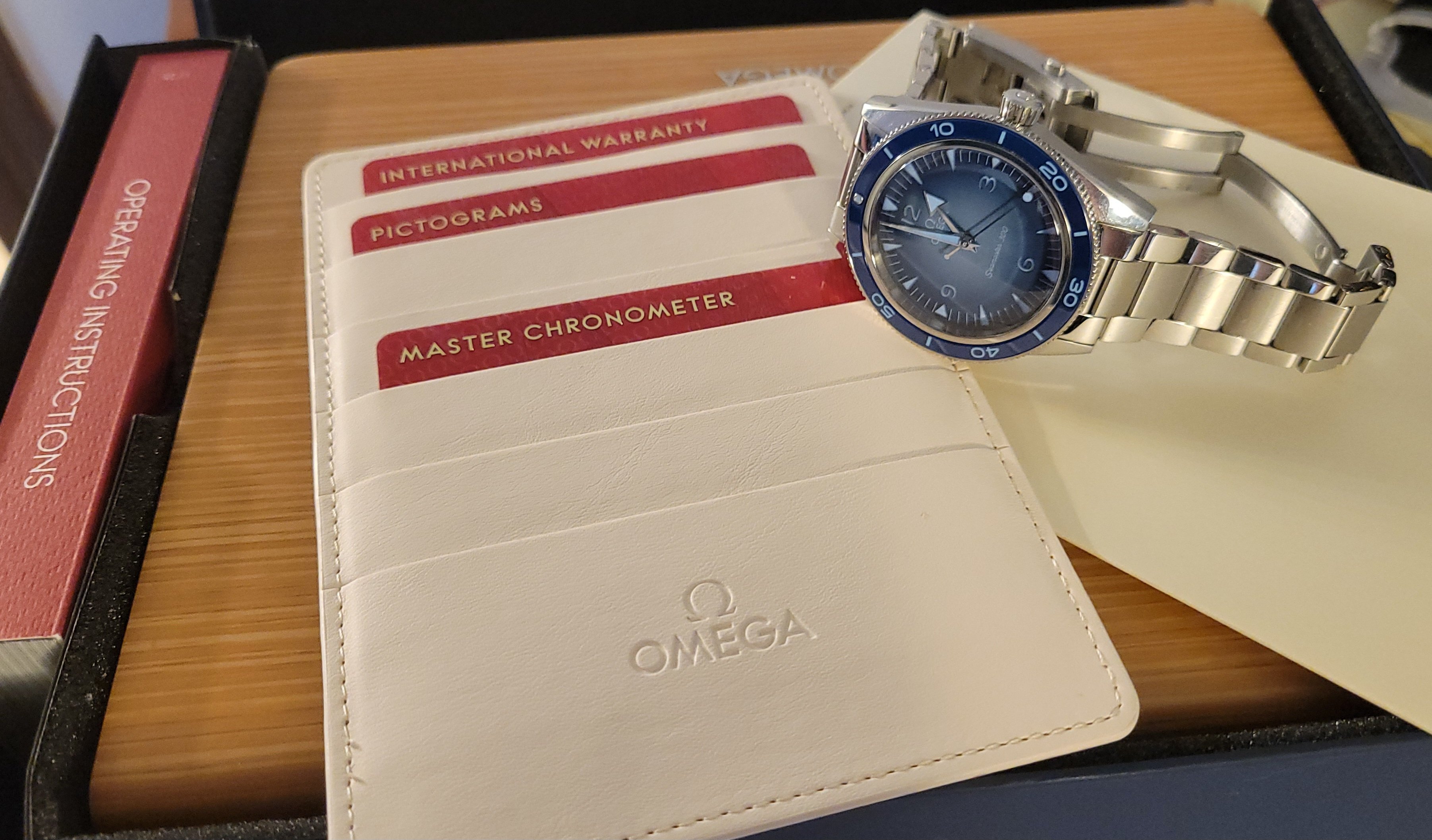 But a previous buyer wrote this in their feedback "Per Omega don't know if Red warranty card will work? Chinese dealer?" The seller is in California, not China. But what is the significance of receiving a red warranty card? And why wouldn't Omega be able to provide a clear answer about this? One of the photos shows three plastic cards that are all red. They are labelled International Warranty, Master Chronometer and Pictograms.