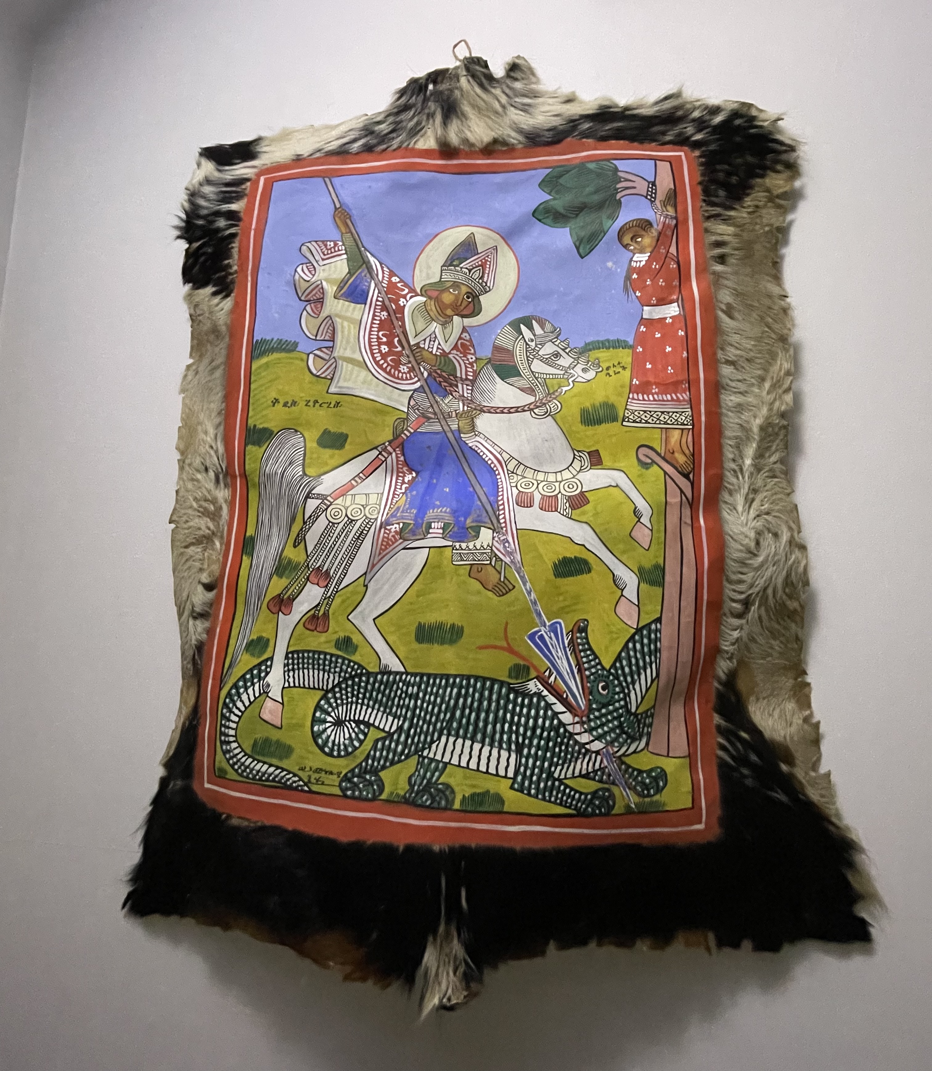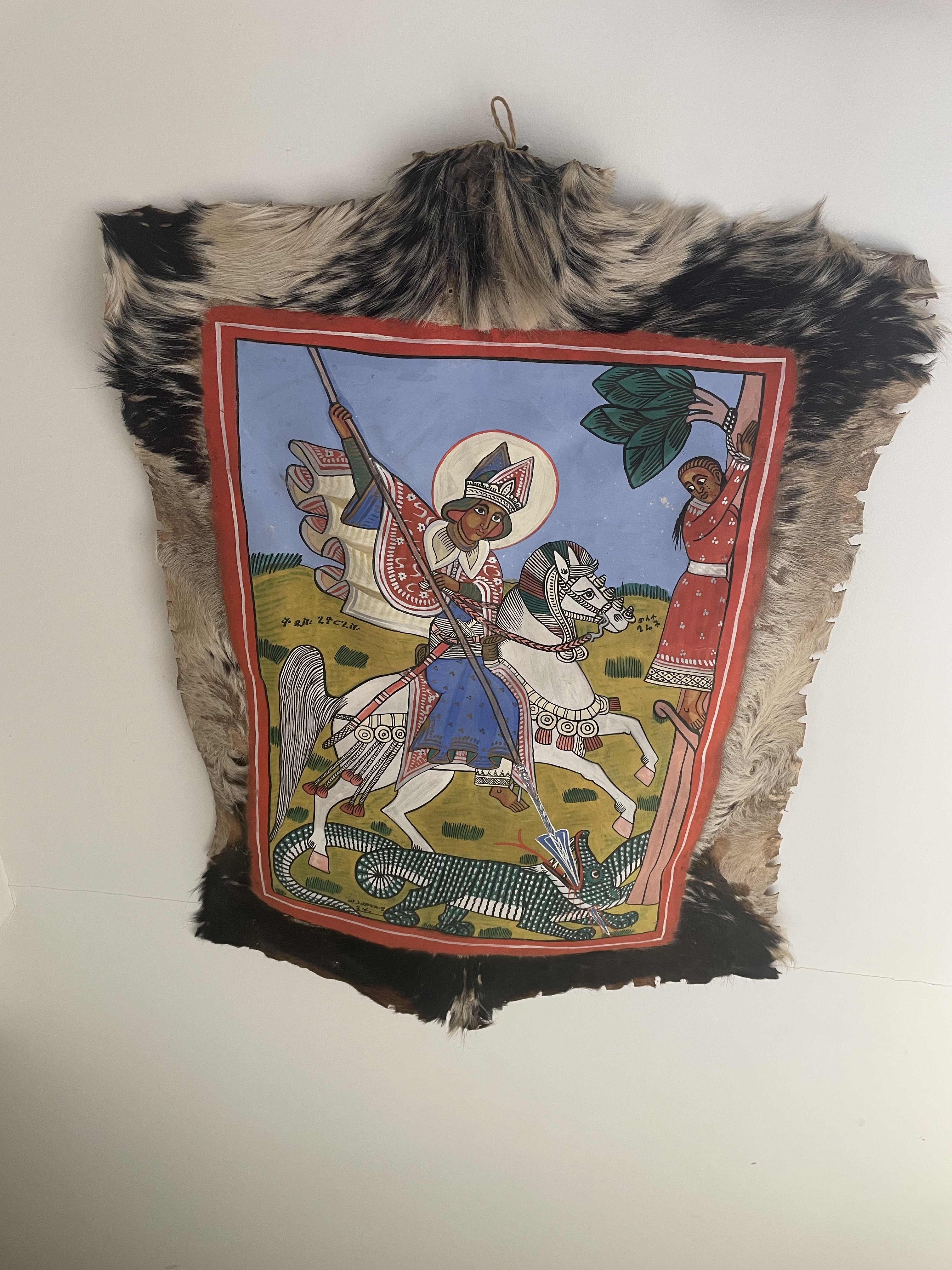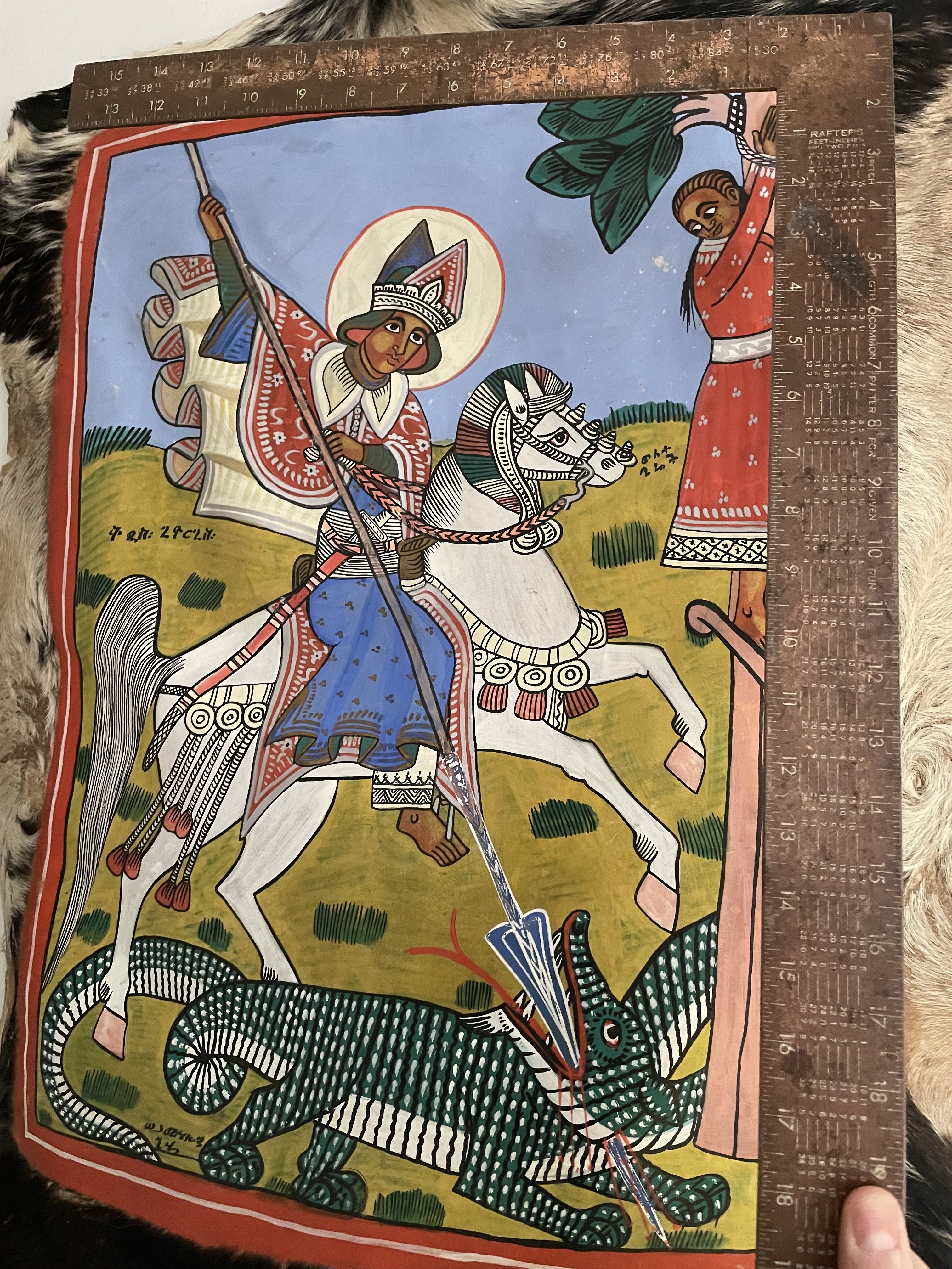St George slaying the dragon. Not hanging in the house. Sort of in semi quarantine - in the apartment above the garage.