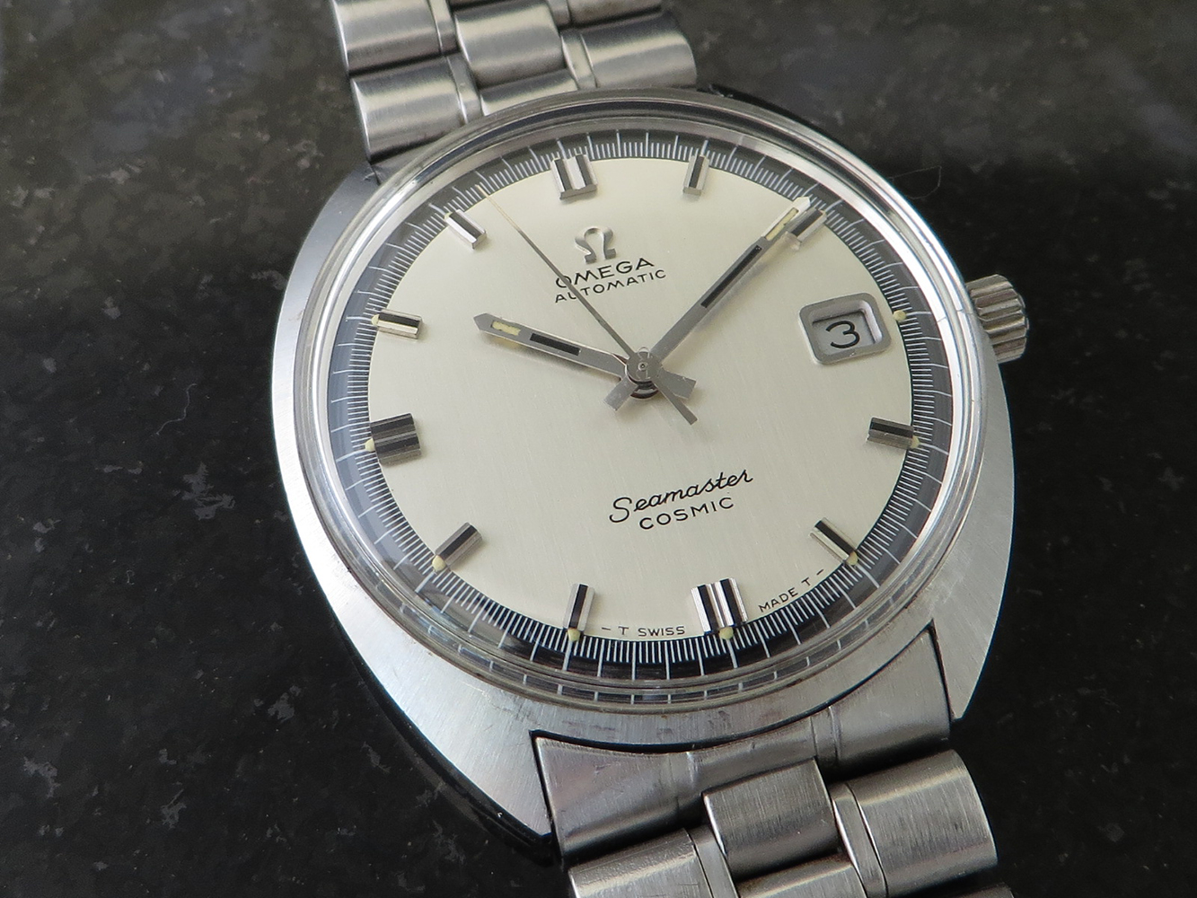 I've recently bought a couple of vintage watches both Omegas for no other reason than I liked them and intend to wear them. I stumbled across this forum yesterday and thought I'd ask this question. My 2nd purchase is this 1970 Seamaster Cosmic 166.026 which I'm lead to believe has an original dial although I'd welcome opinions. I'm guessing the hands aren't original they are white with luminous inserts and look better than they do in the photo. I wondered what it would have had originally any thoughts anyone?
