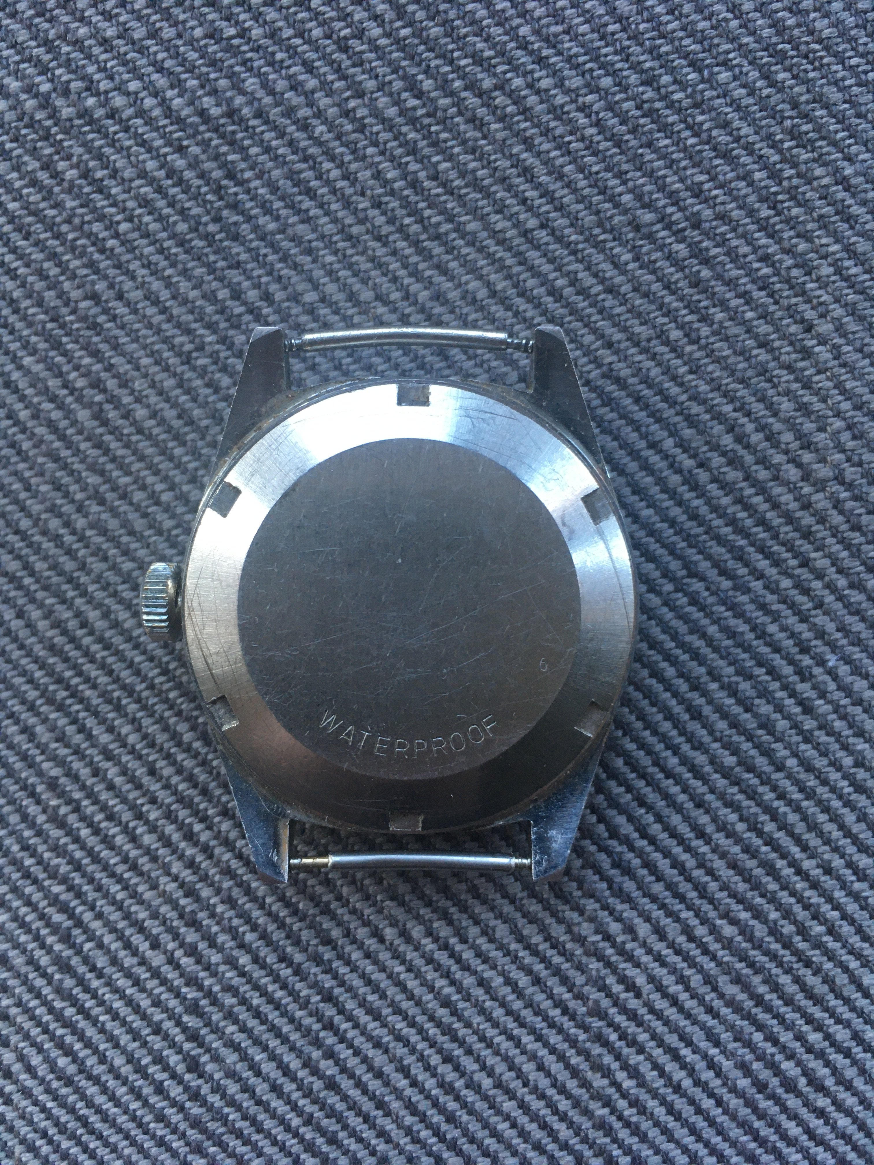 The watch is rough in general, with a 'ding' in the case, opposite the crown.